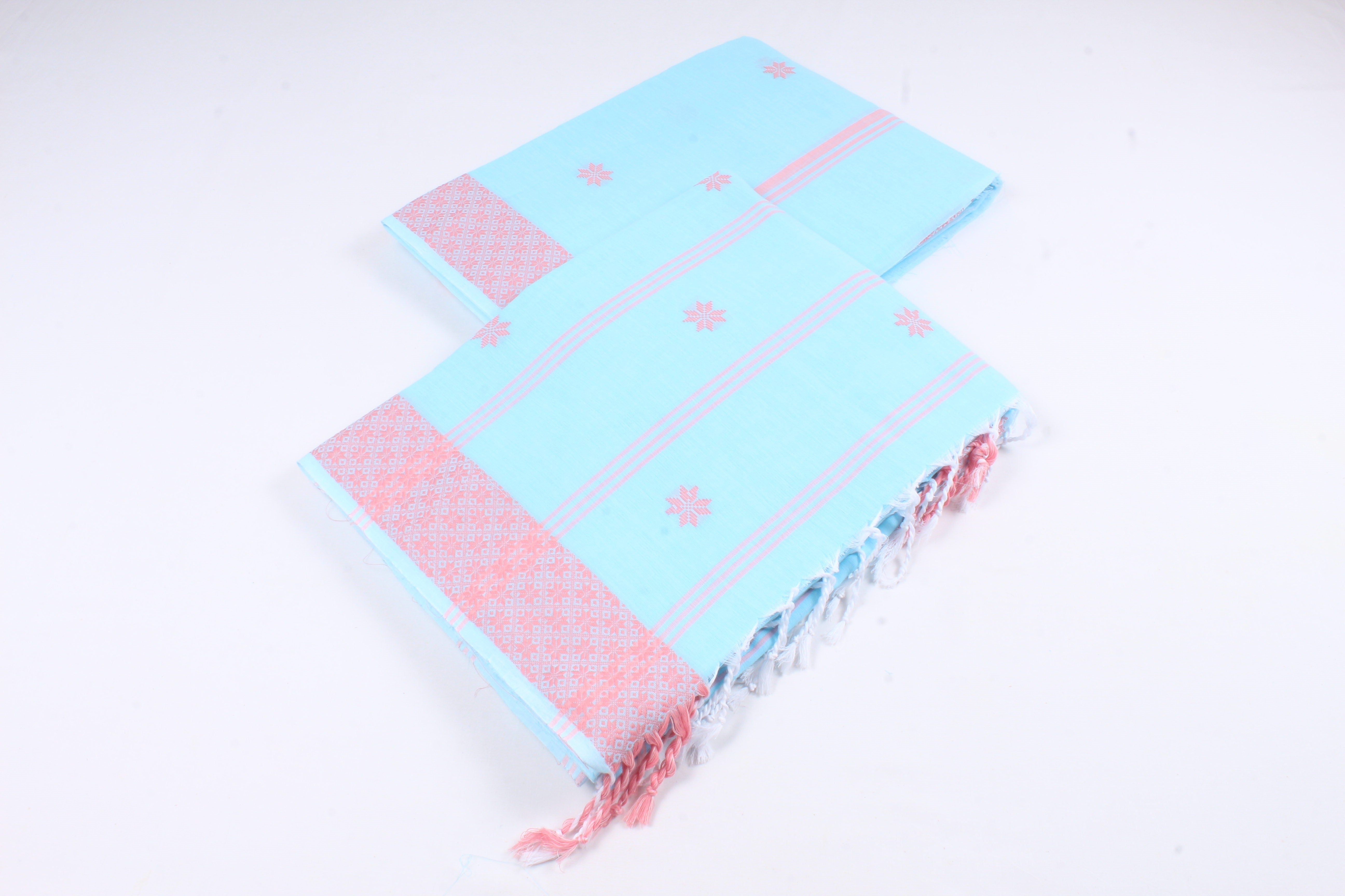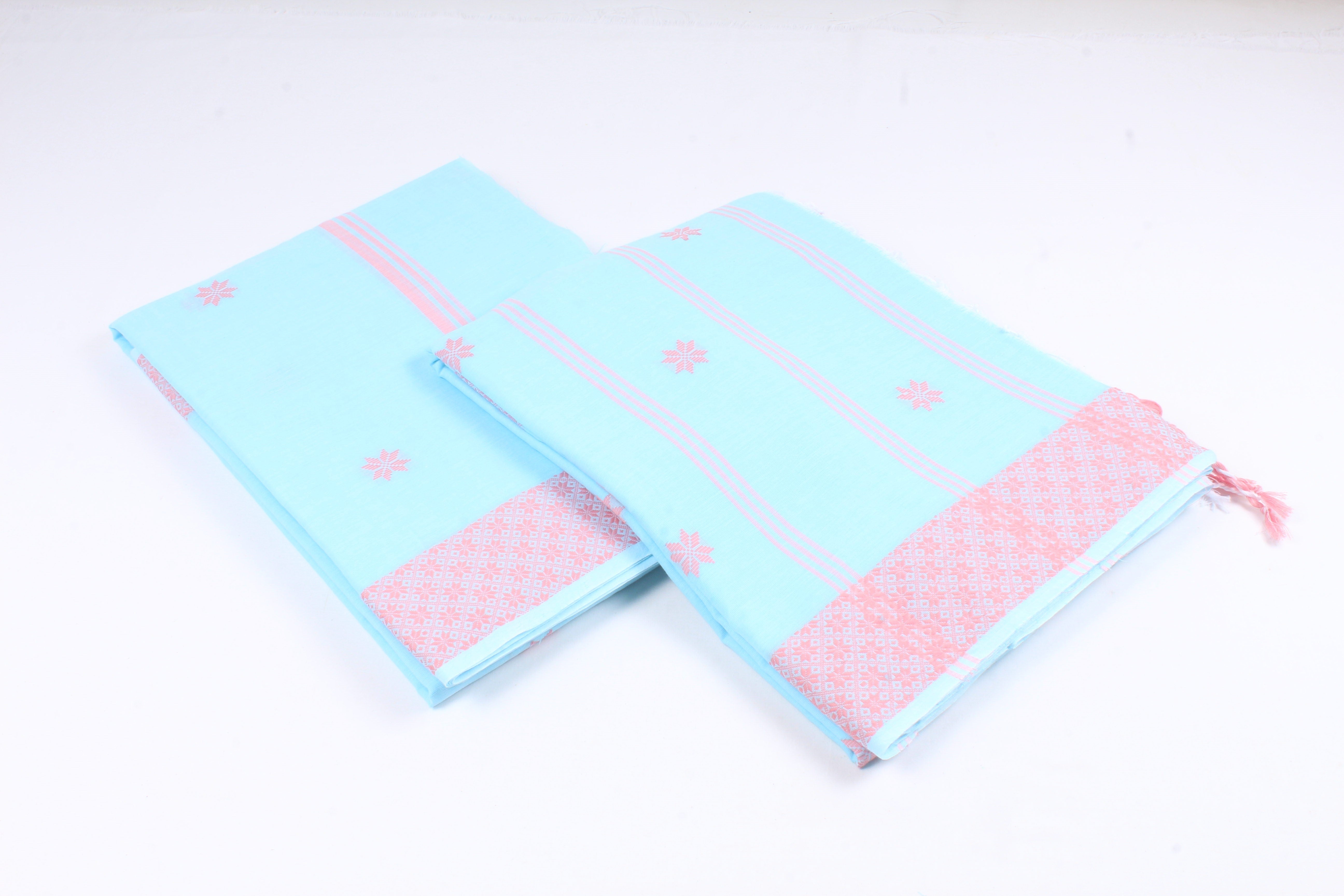 Sea Green Aahar Joda with Butis and Punch Pink Border