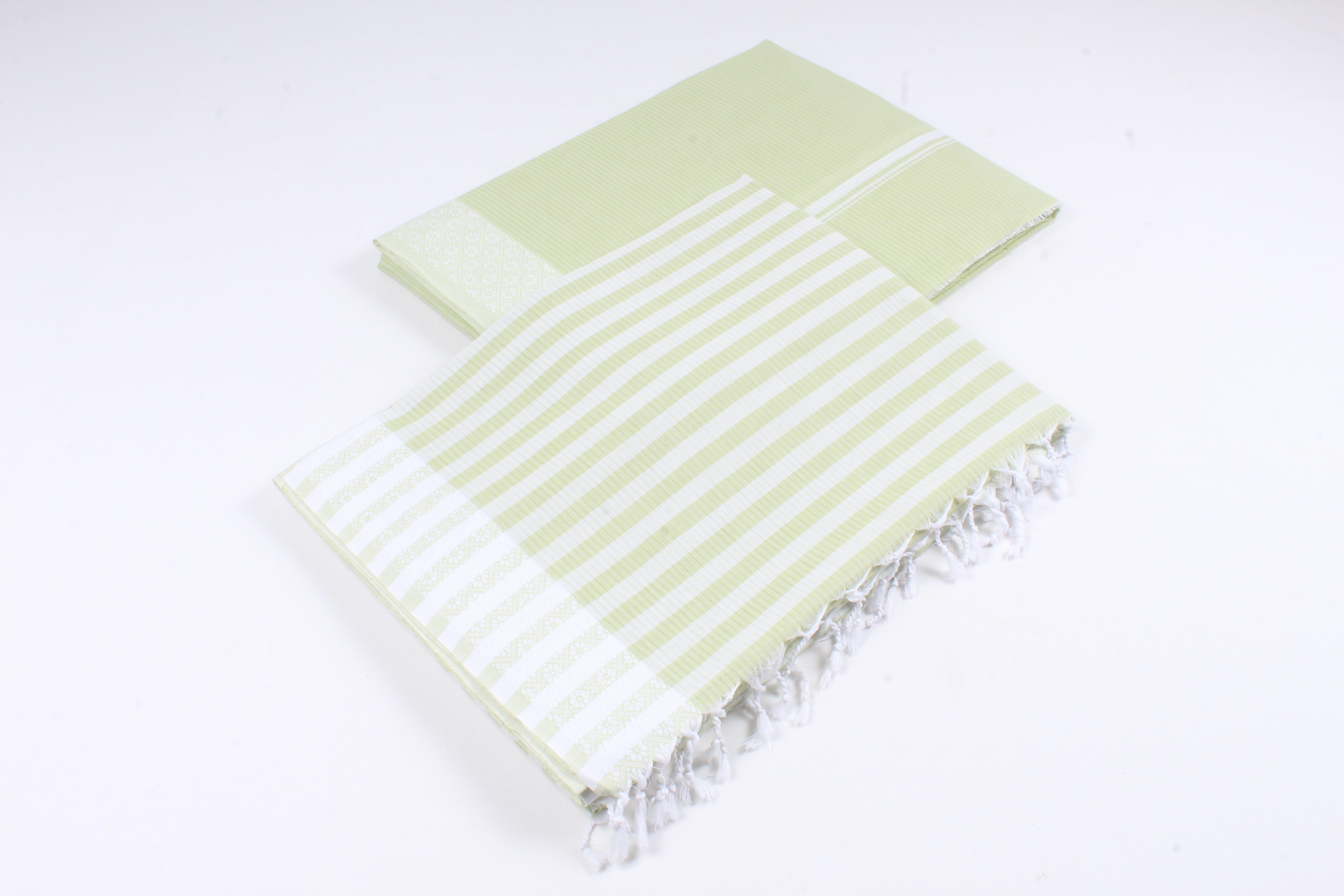 Artichoke Green Aahar Joda Self Line and White Dobby Border