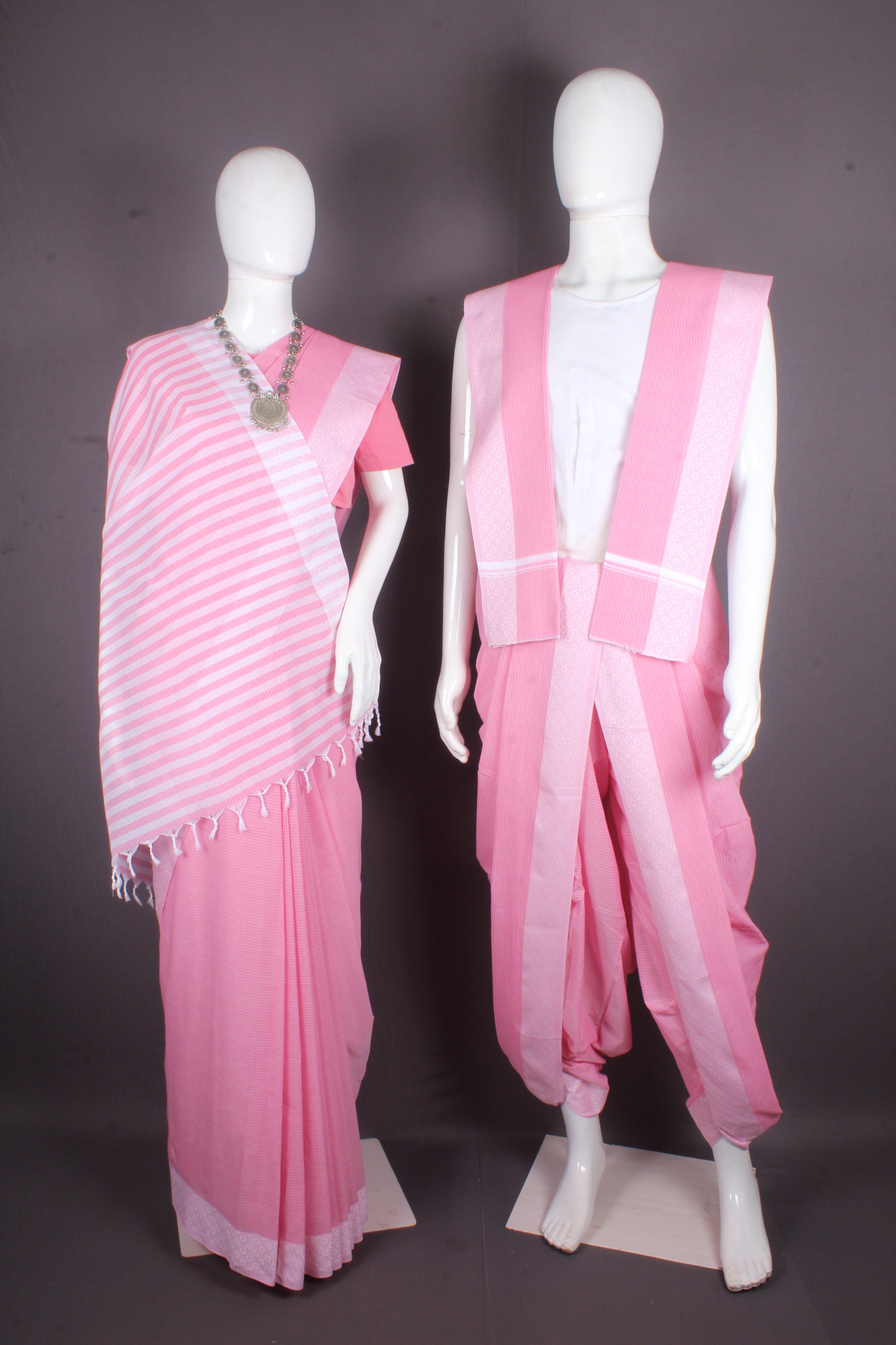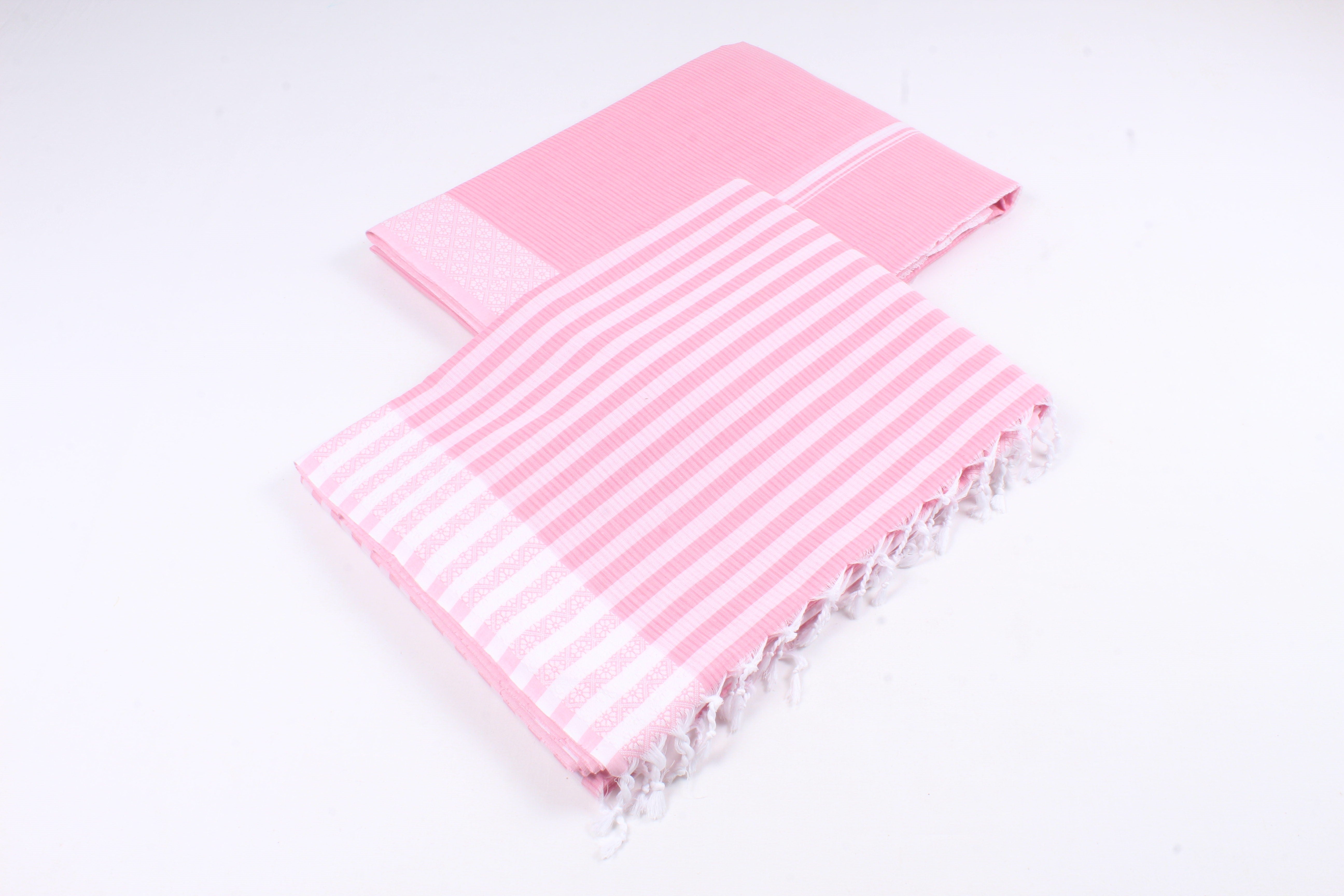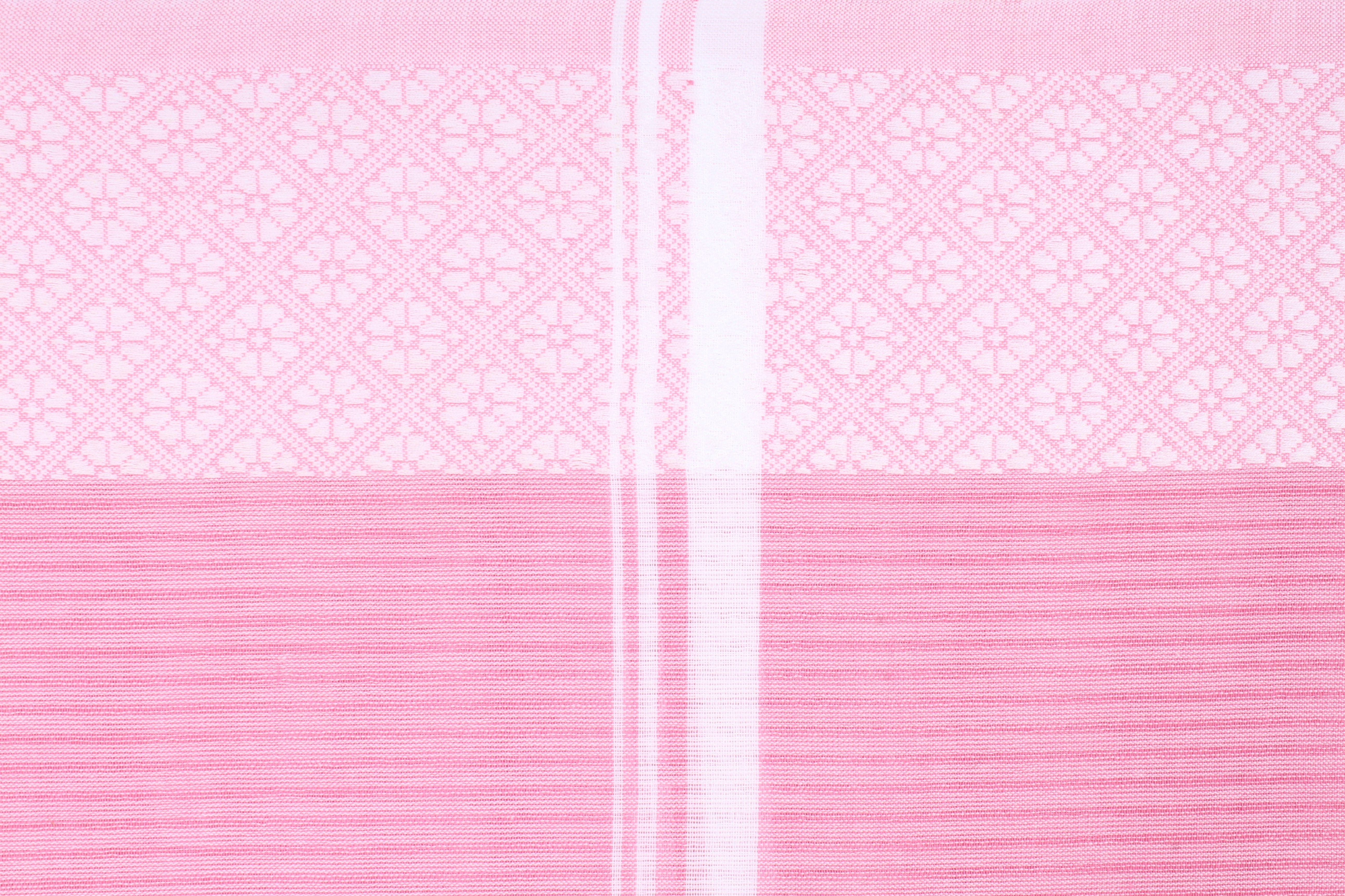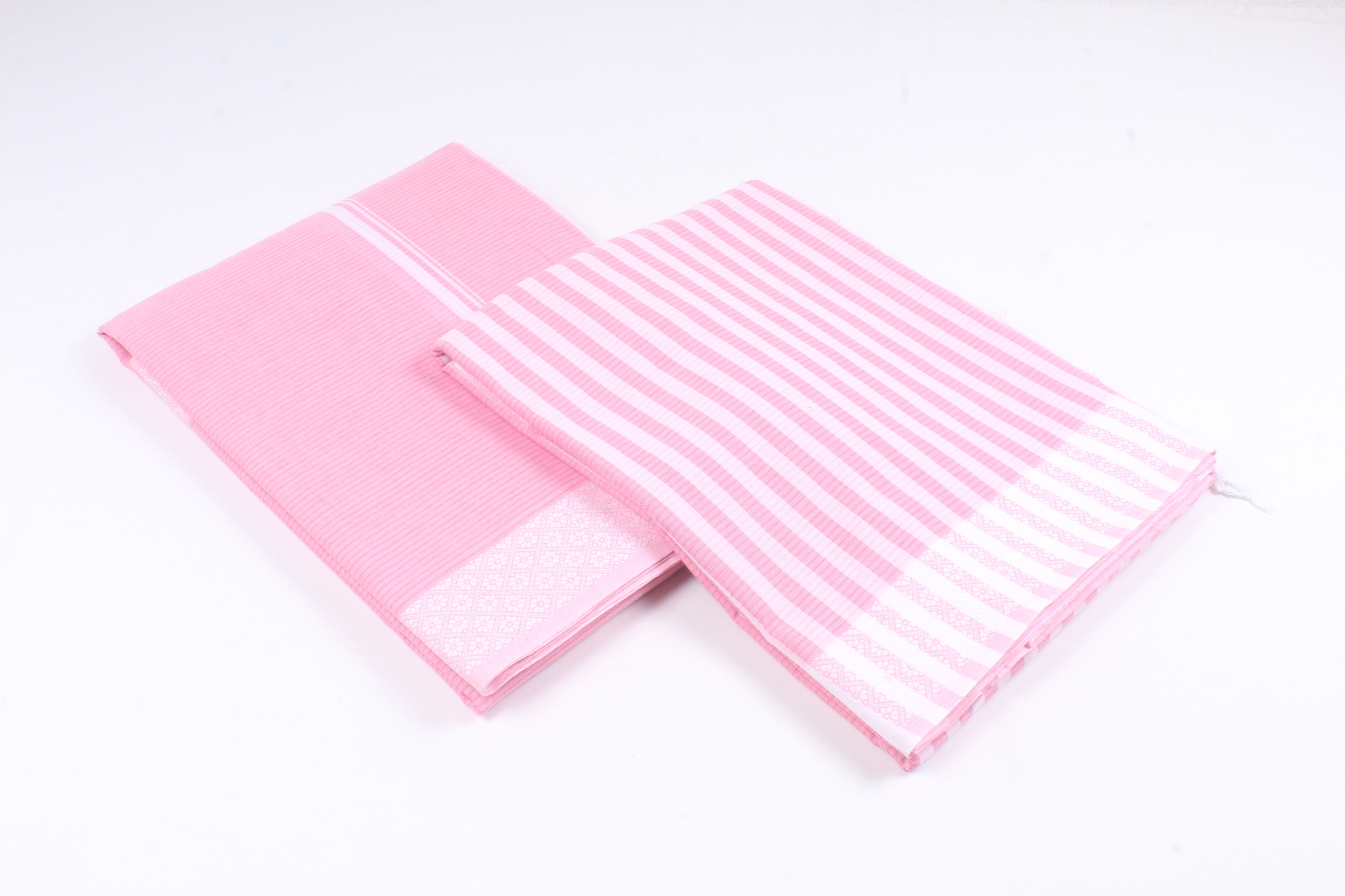 Pink Aahar Joda with Self Striprd and White Dobby Border