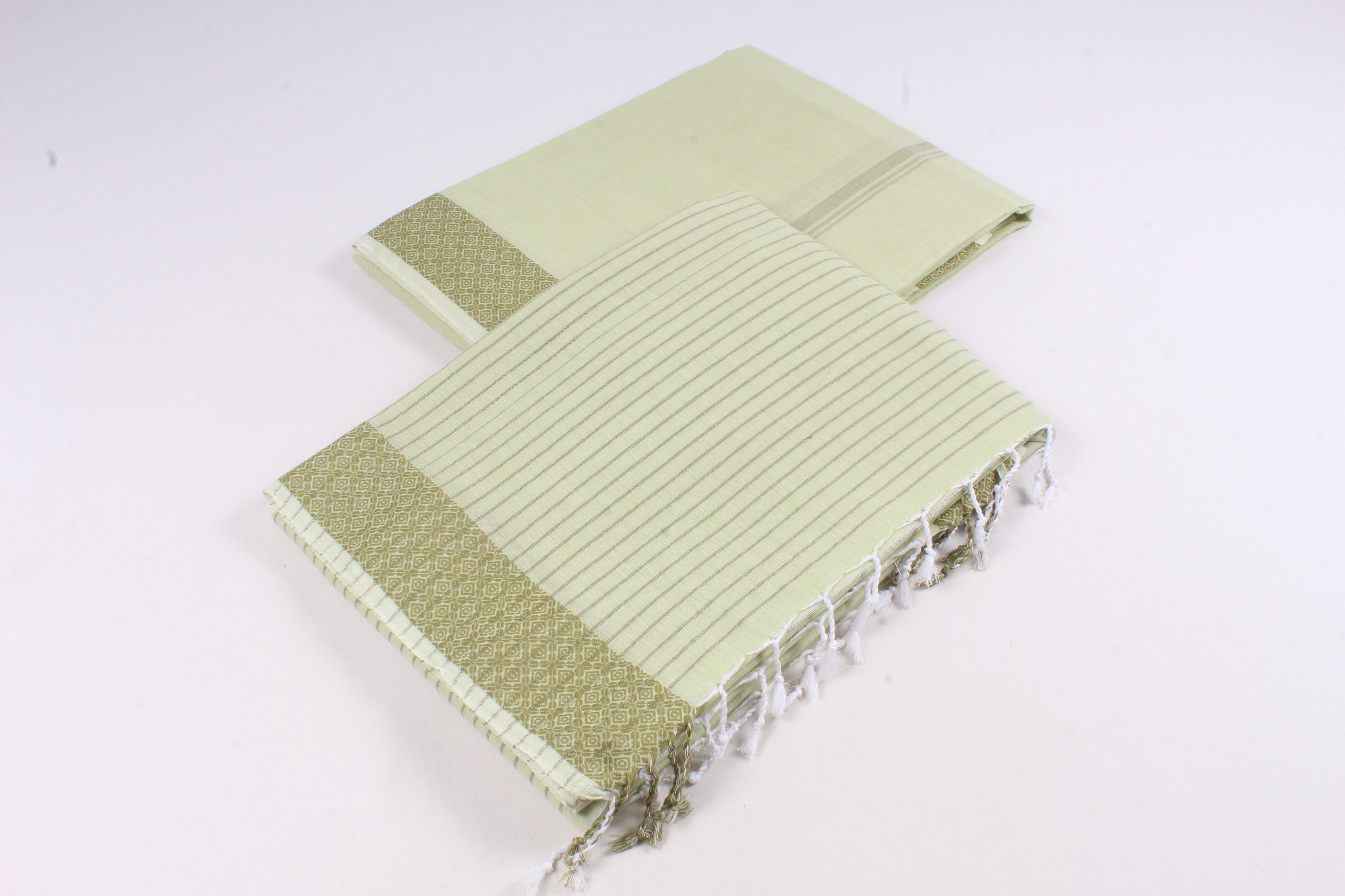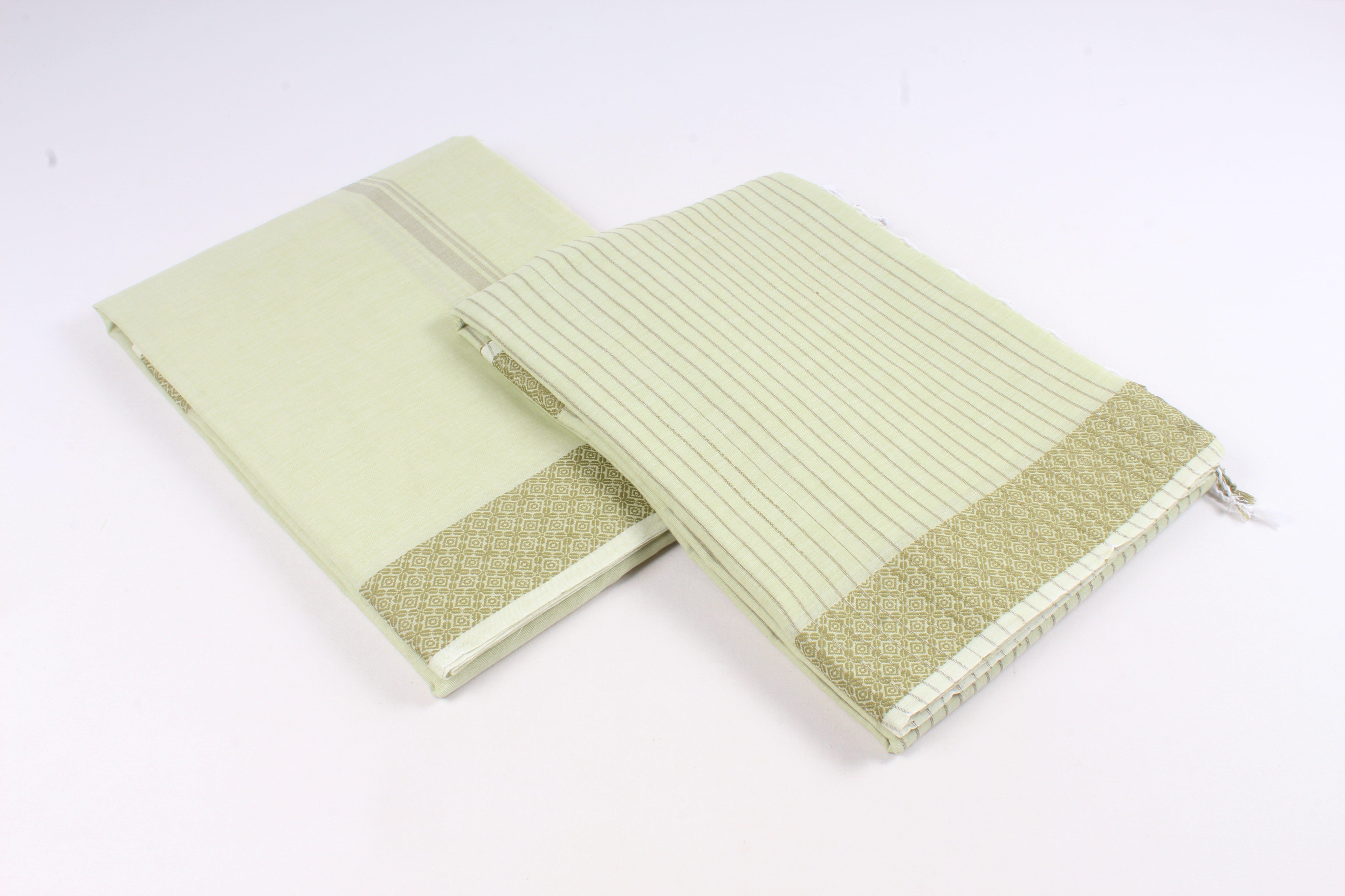 Traditional Handloom Joda Set in Lime Green with Moss Green Dobby Border