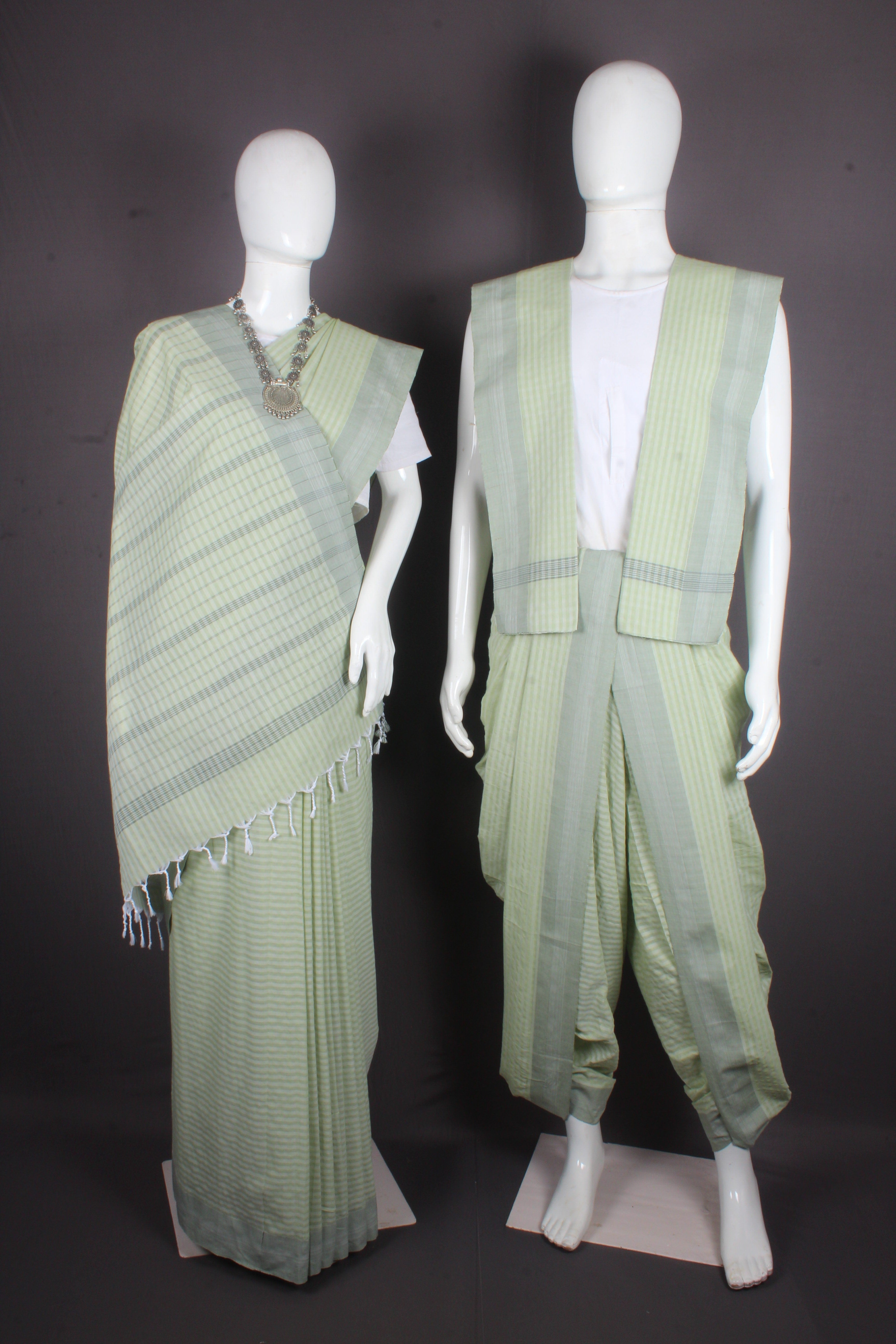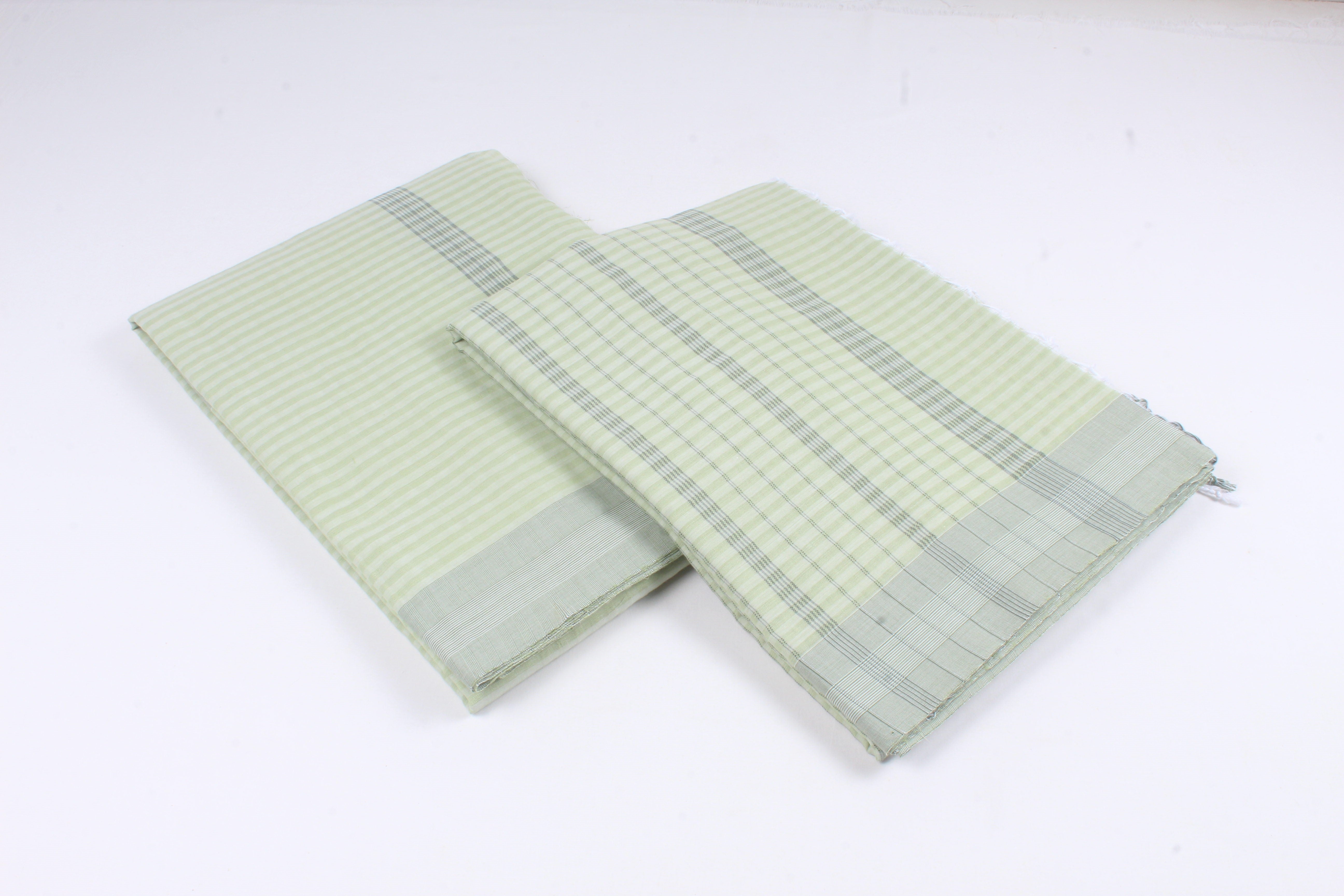 Moss Green Aahar Joda with Self Striped and Gray Border