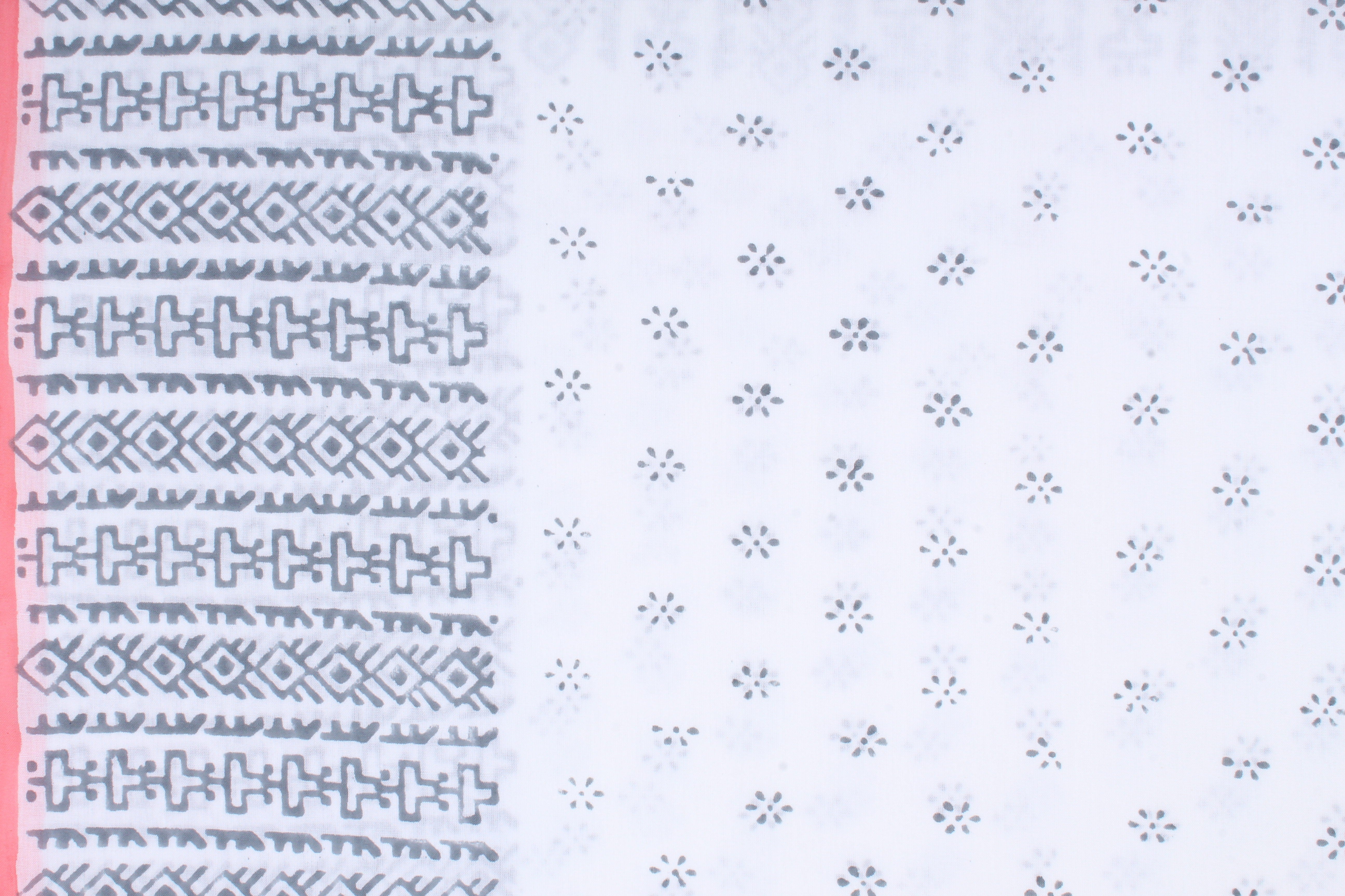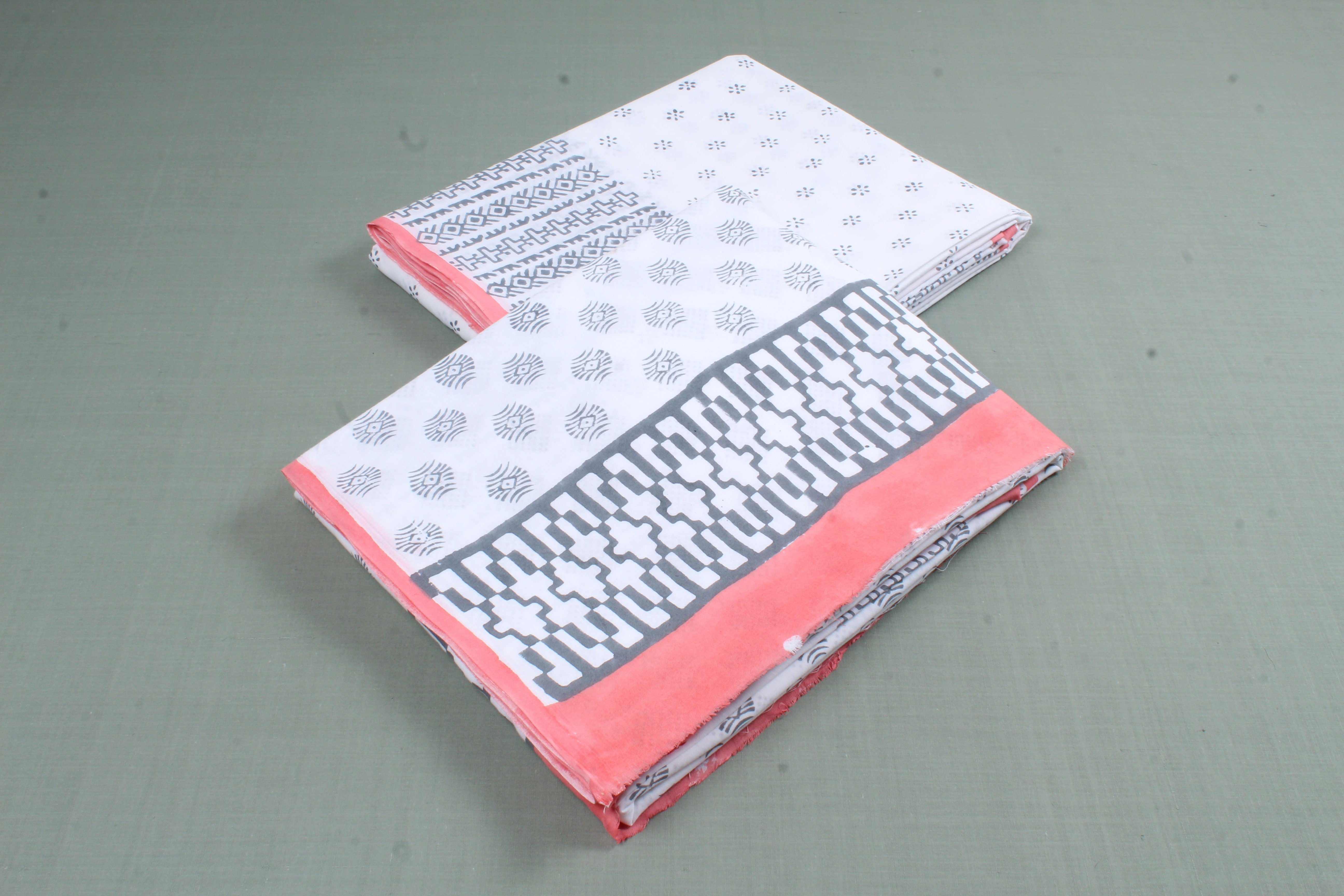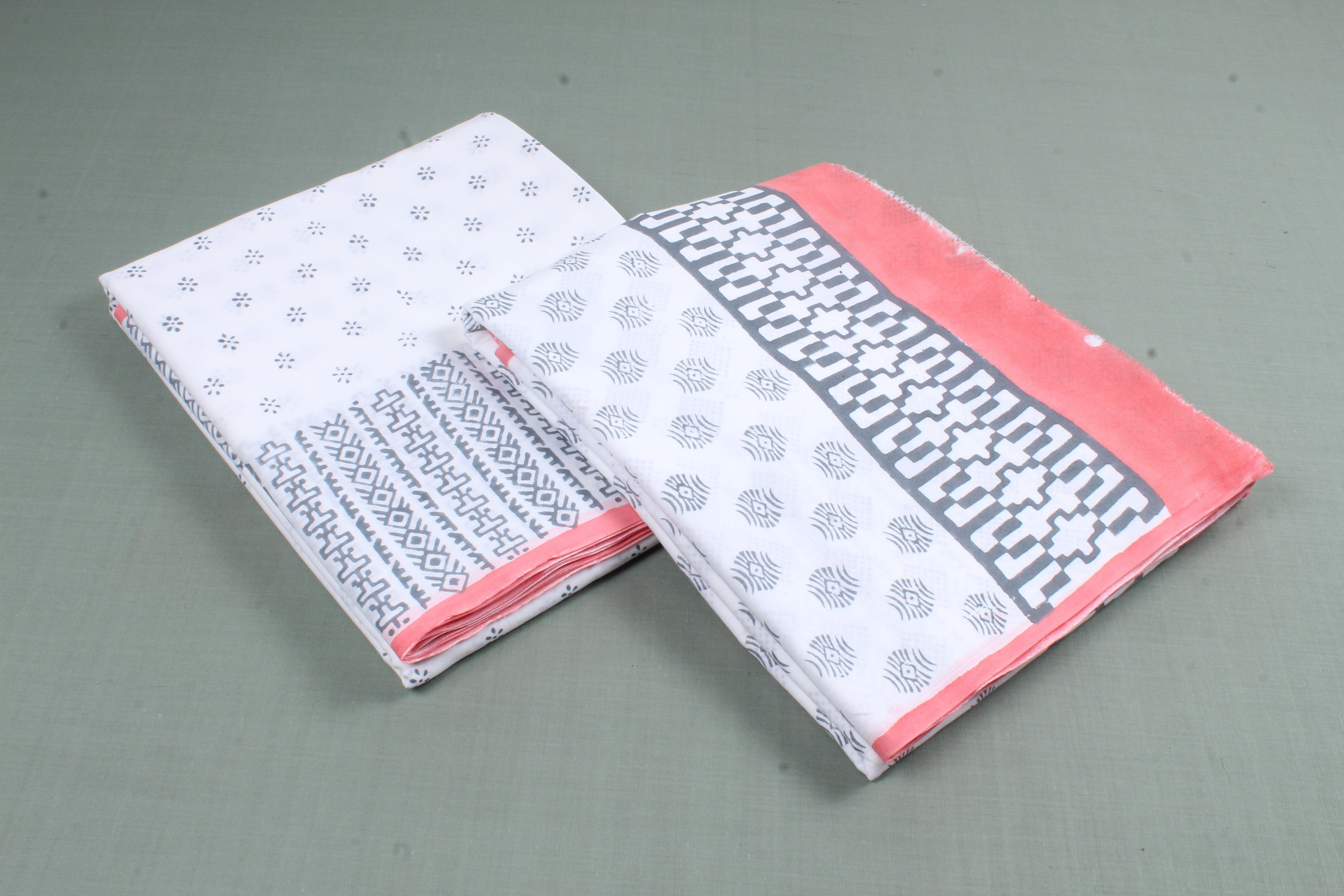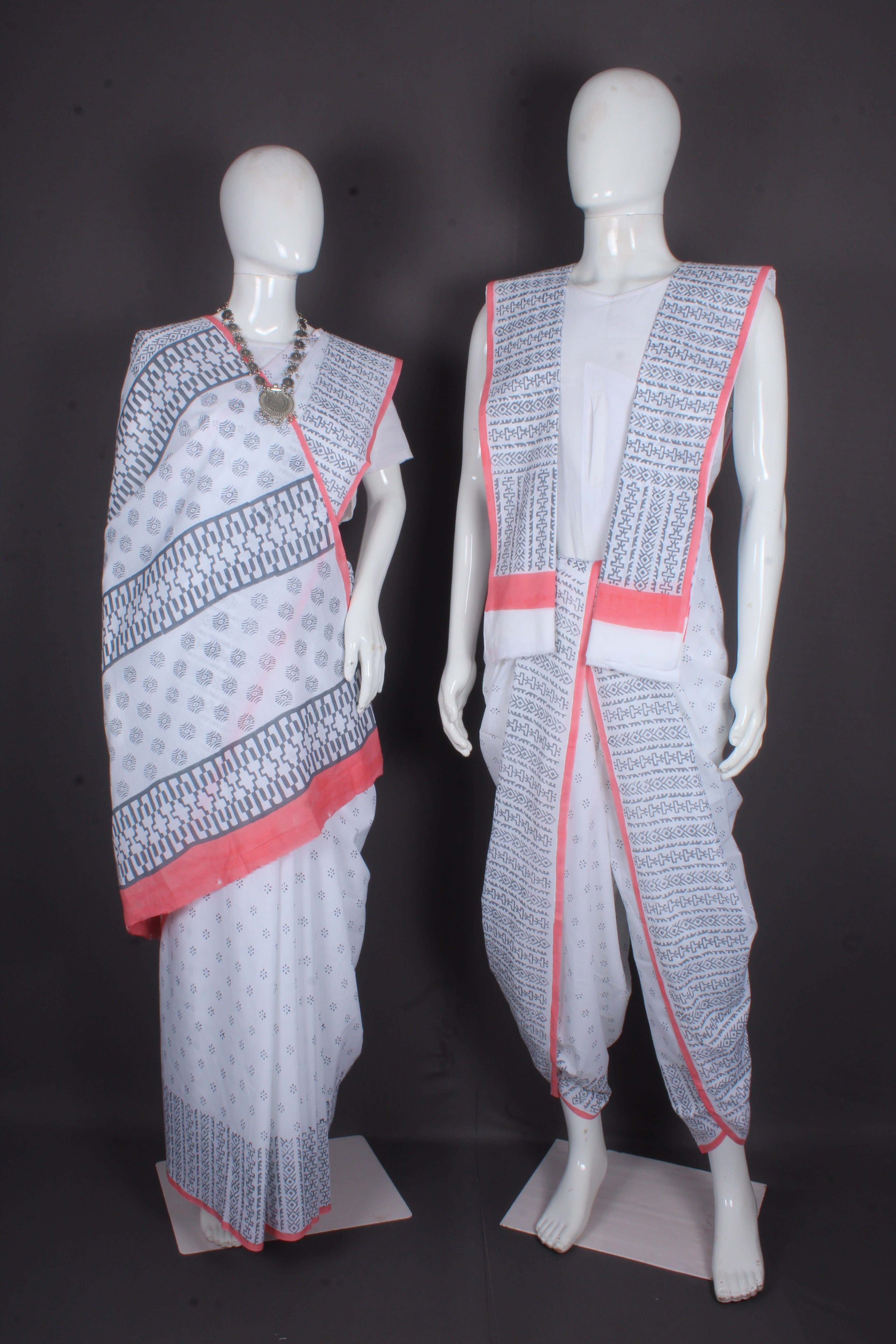Traditional Handloom Joda Set in White Saganeri Block Print