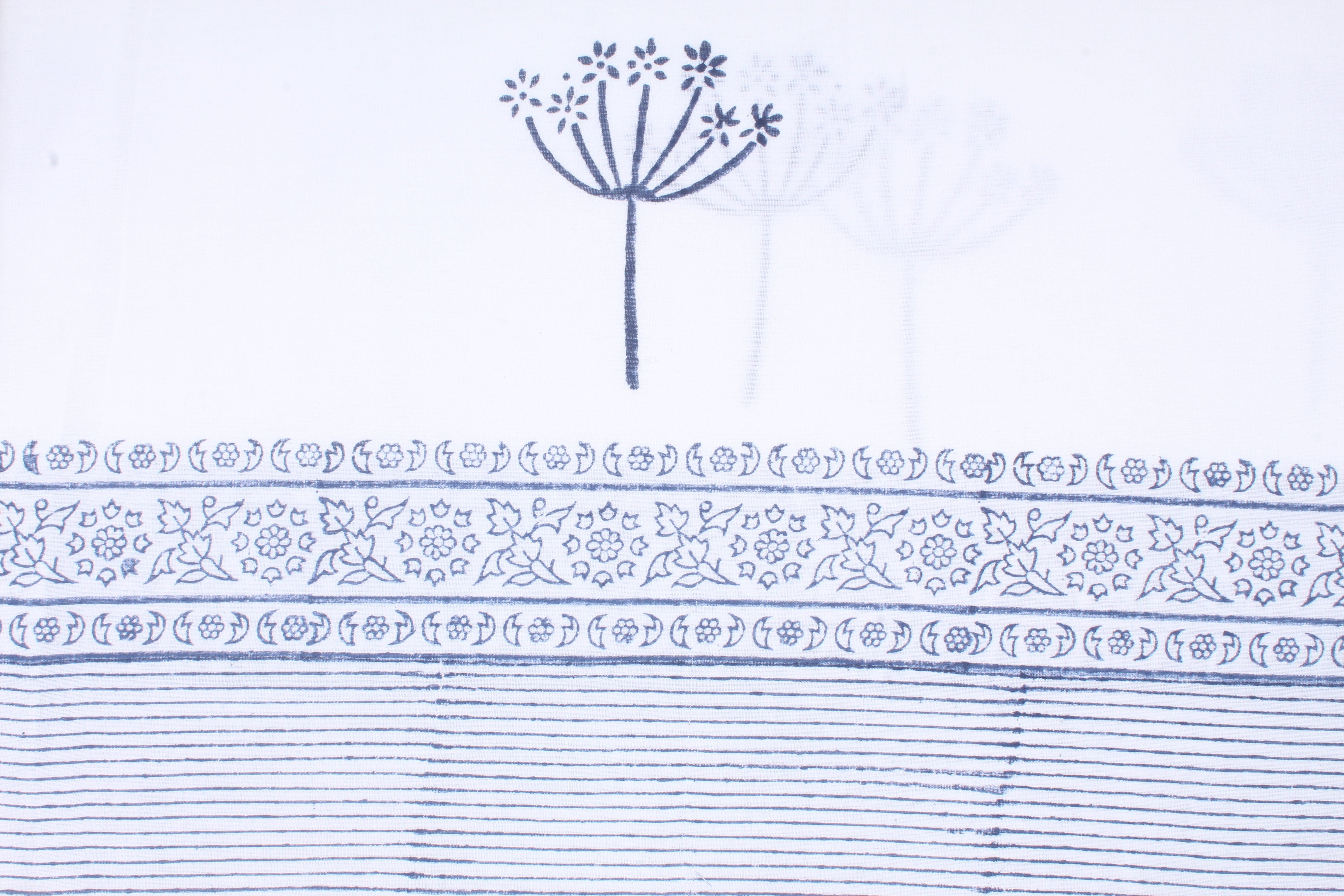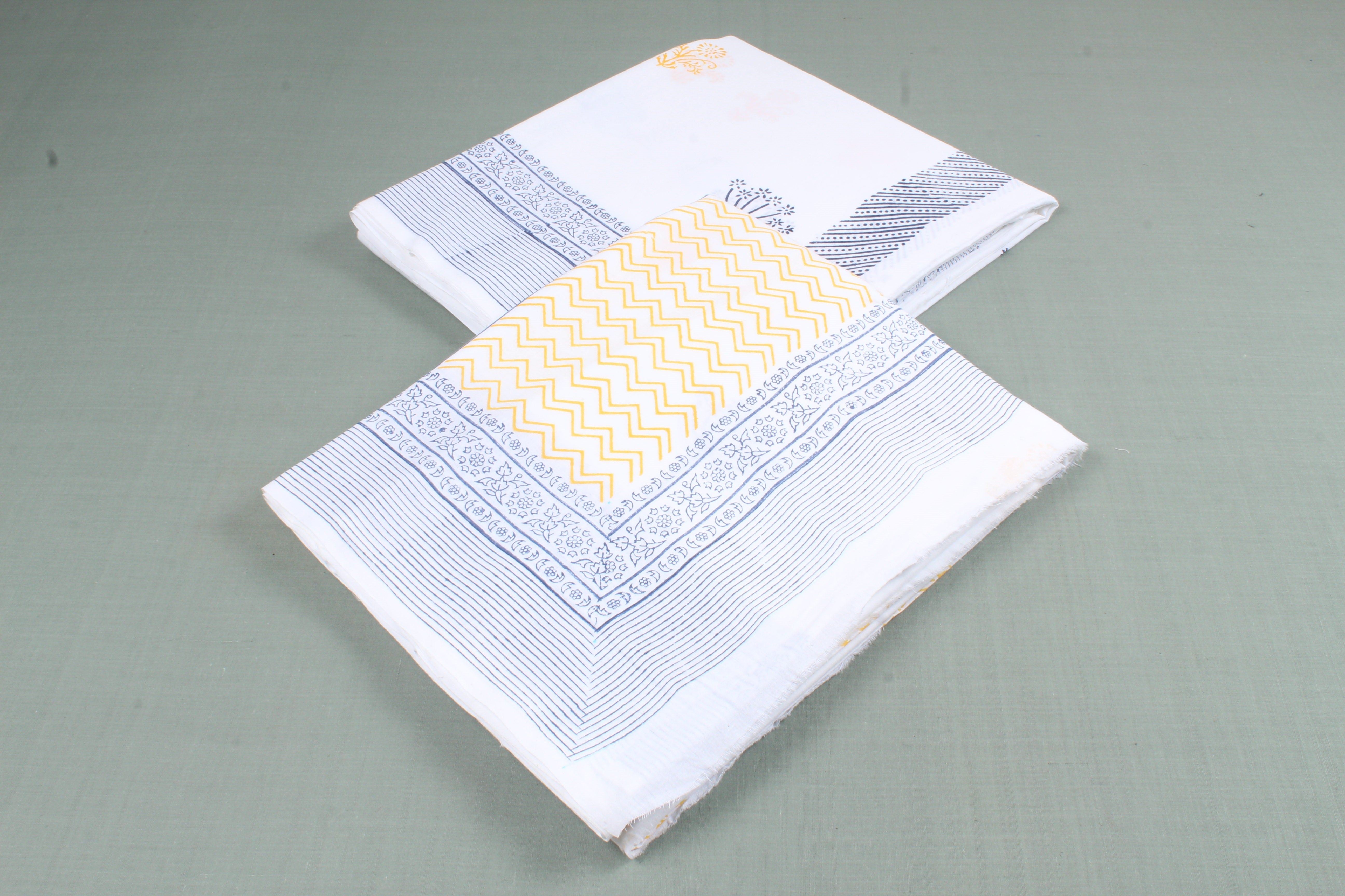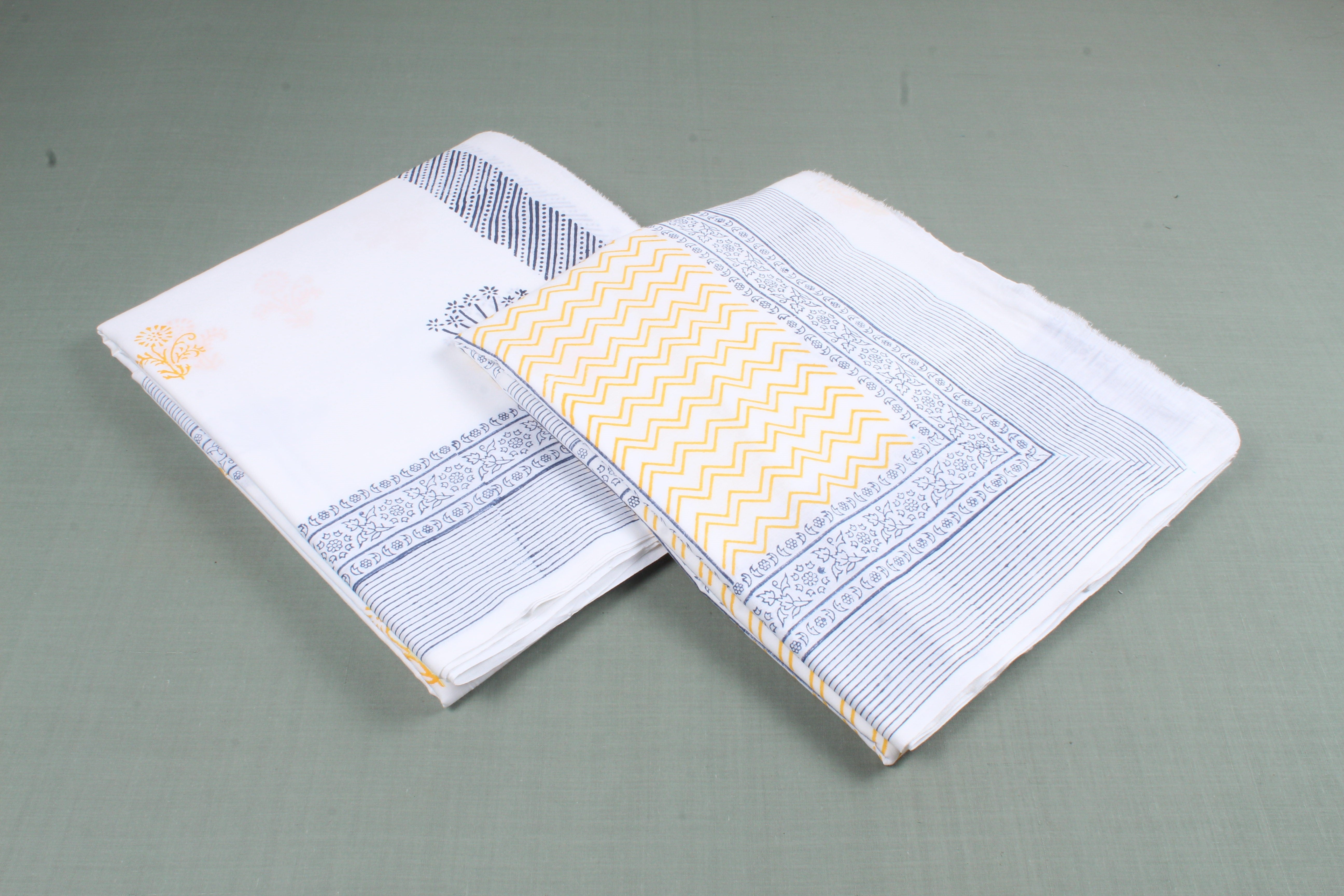 Traditional Handloom Joda Set in White Saganeri Block Print
