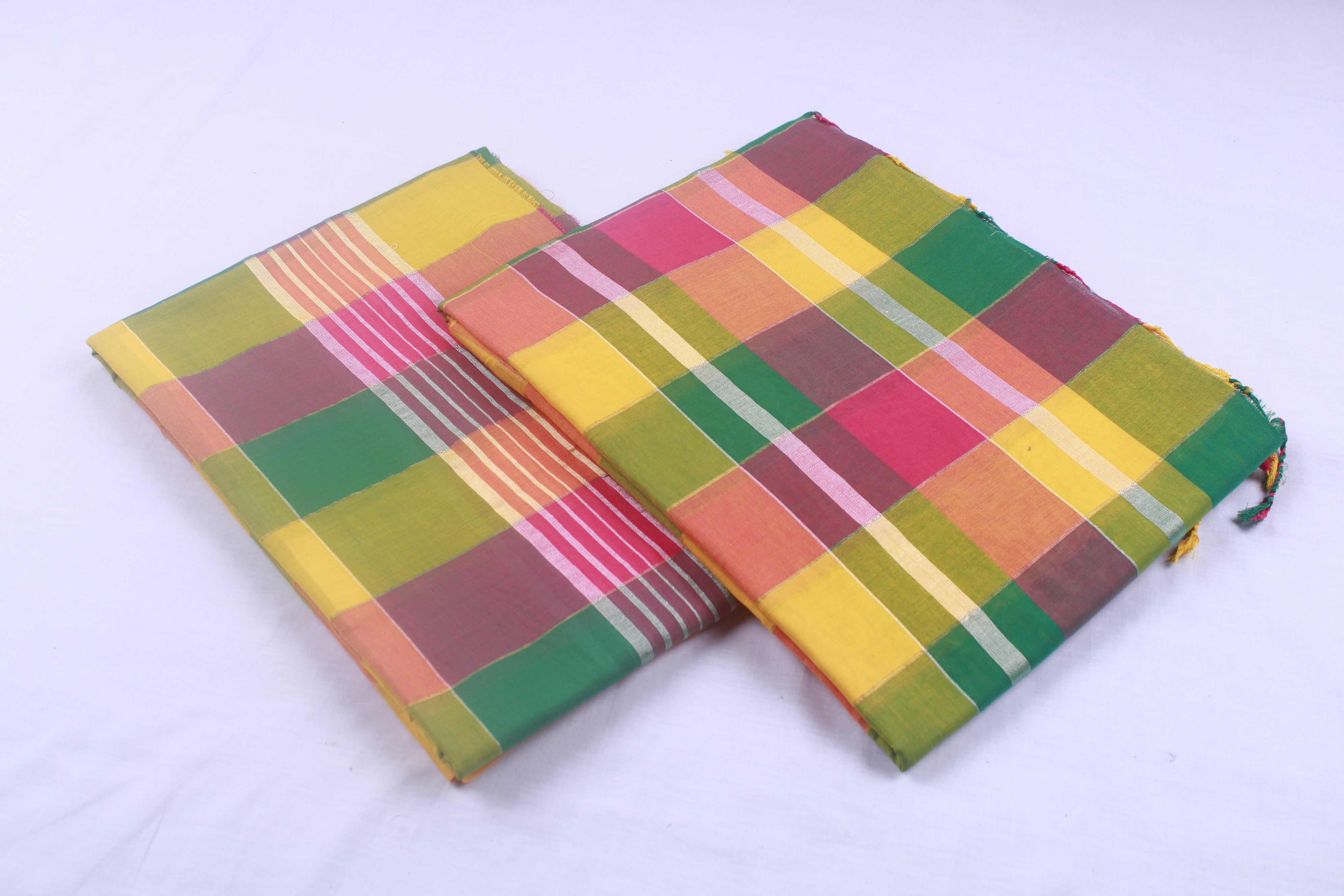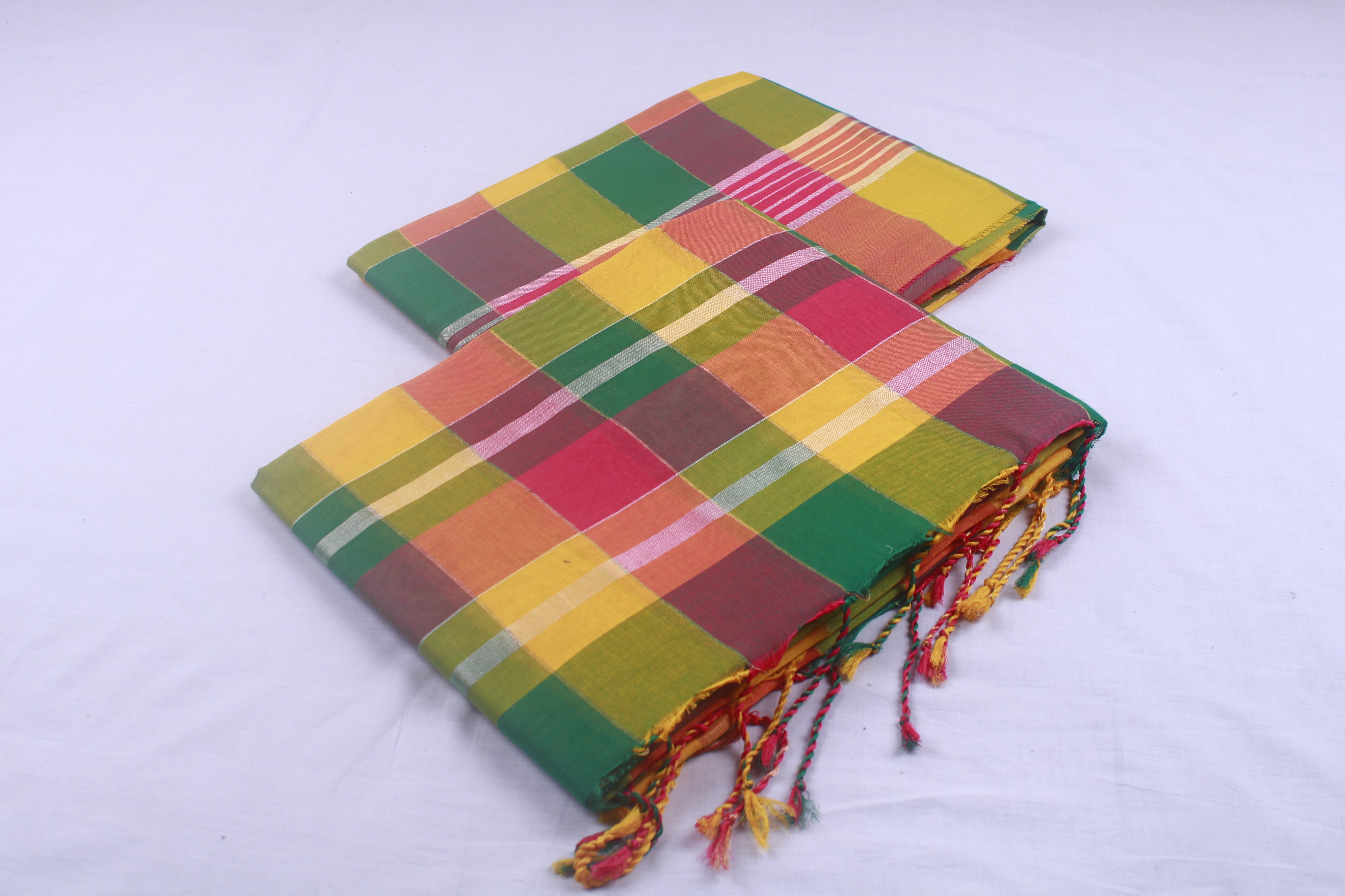 Red, Green, Yellow and Golden Zari Check Aahar Joda