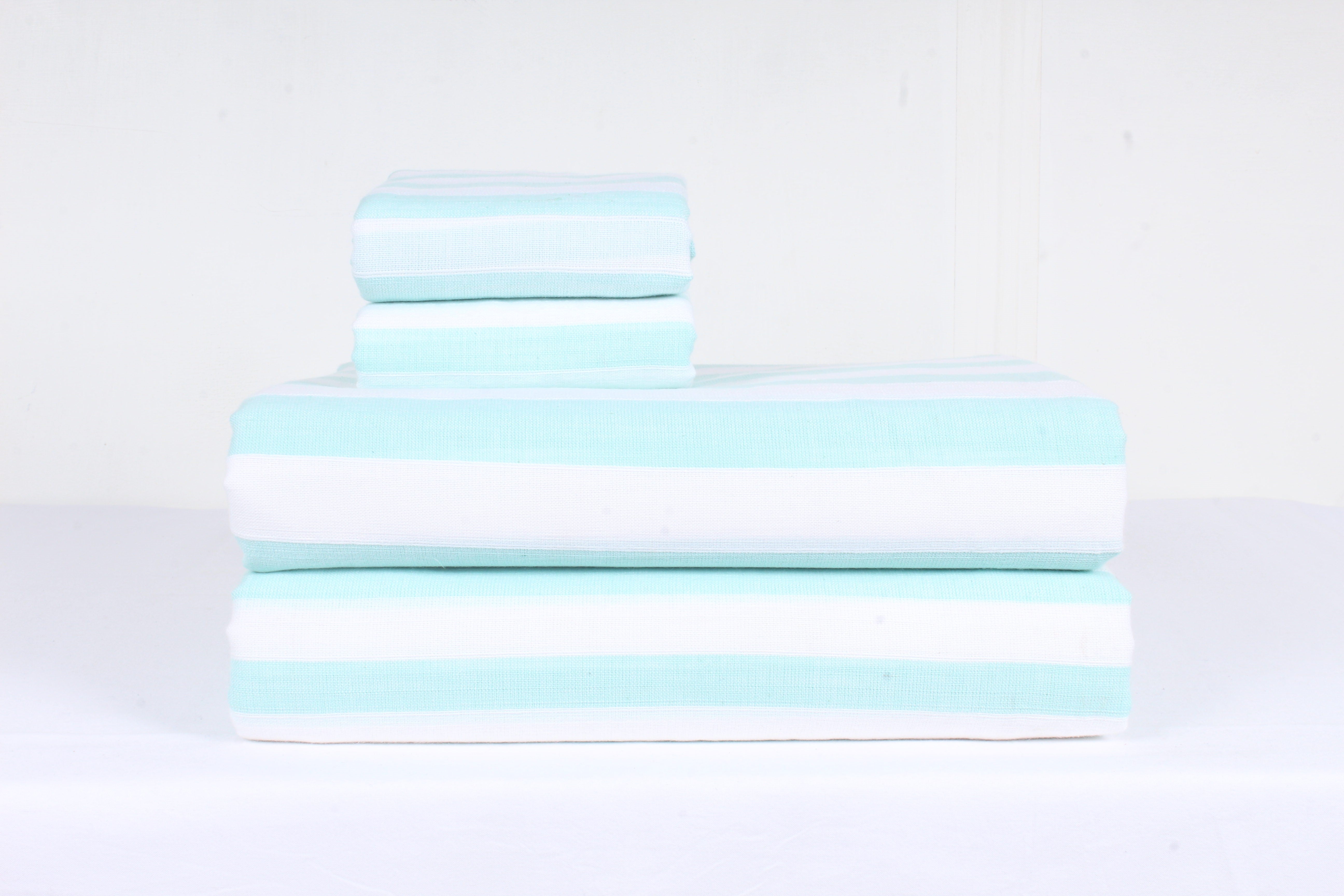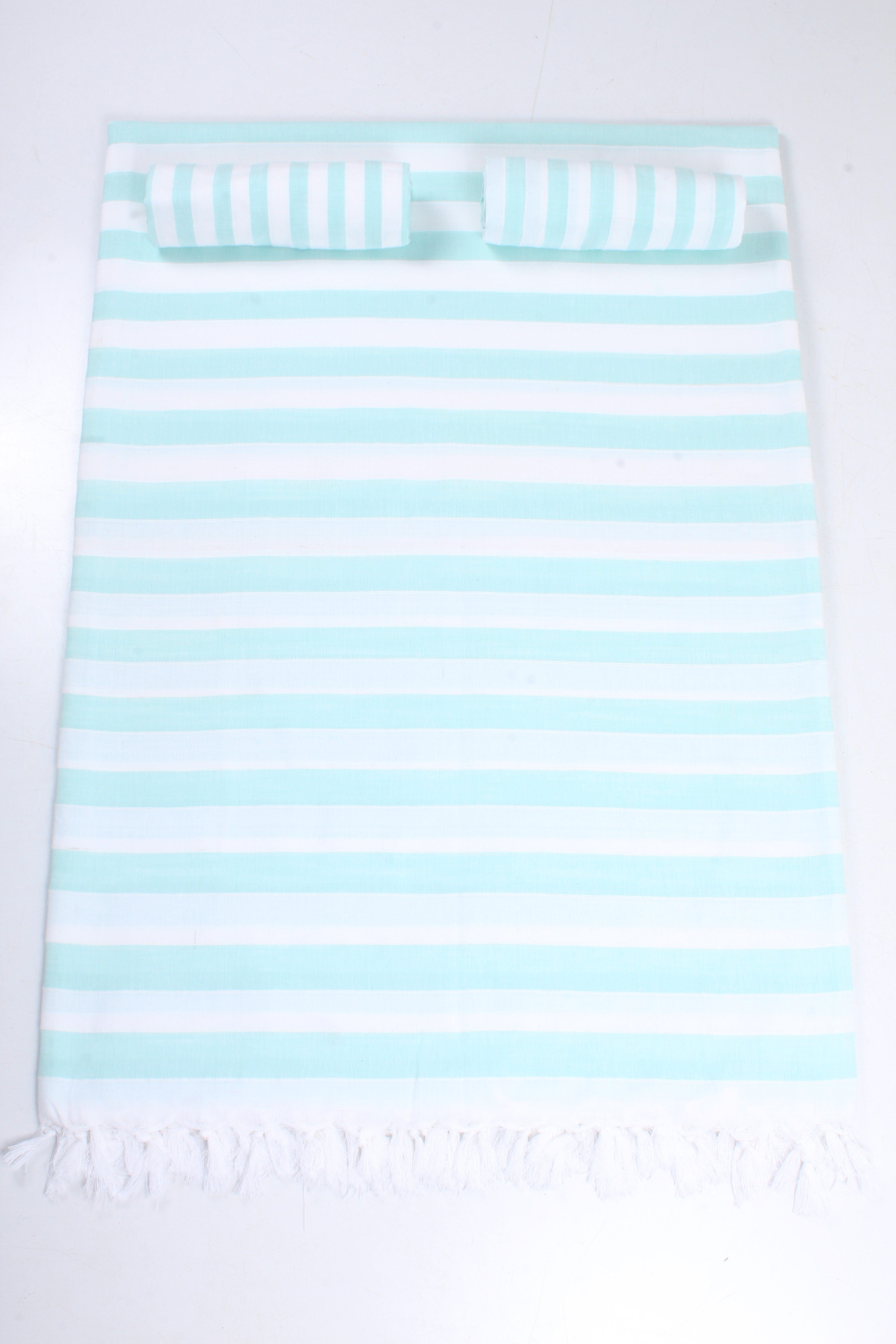 Sea Green and White Striped Double Bedsheet Set