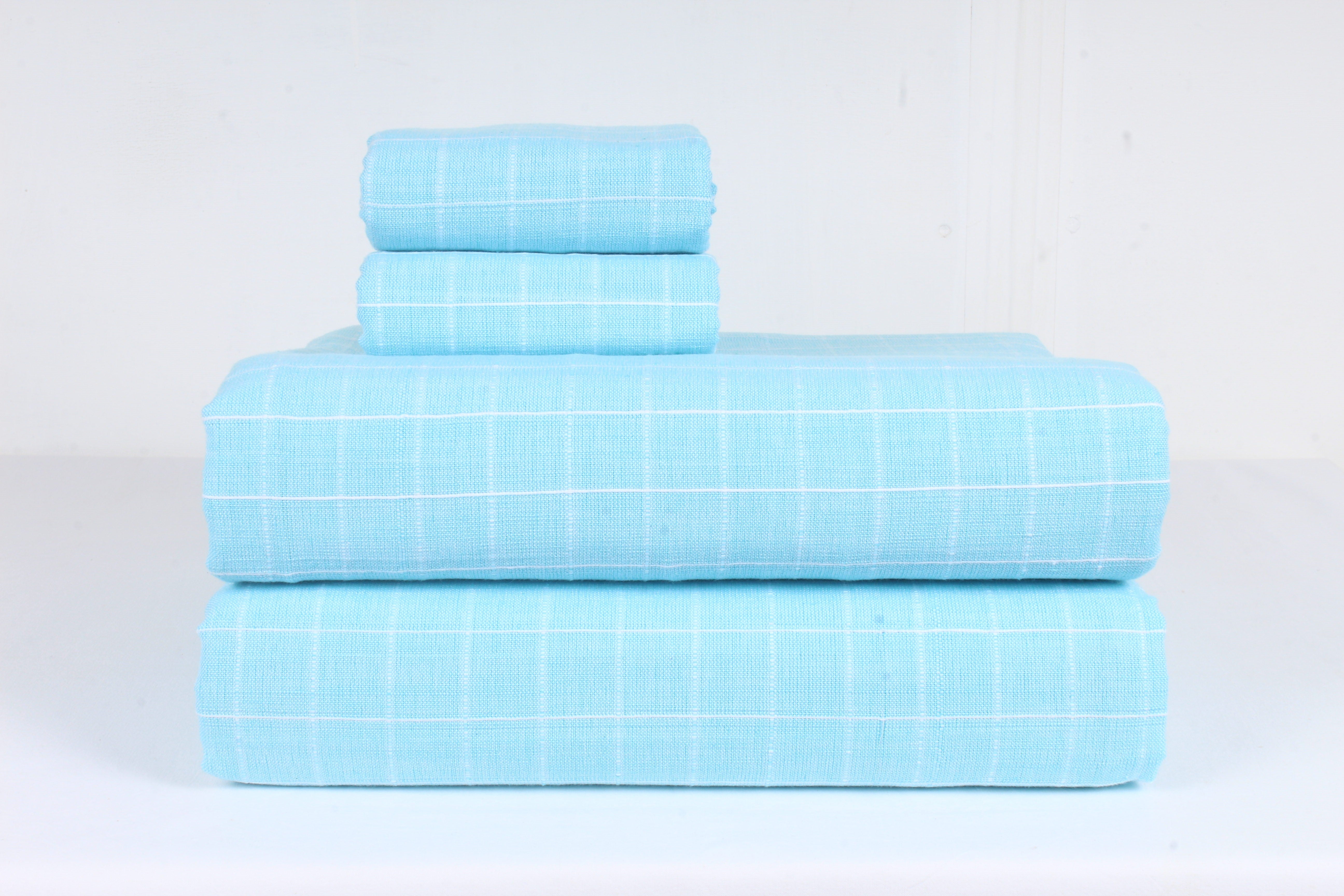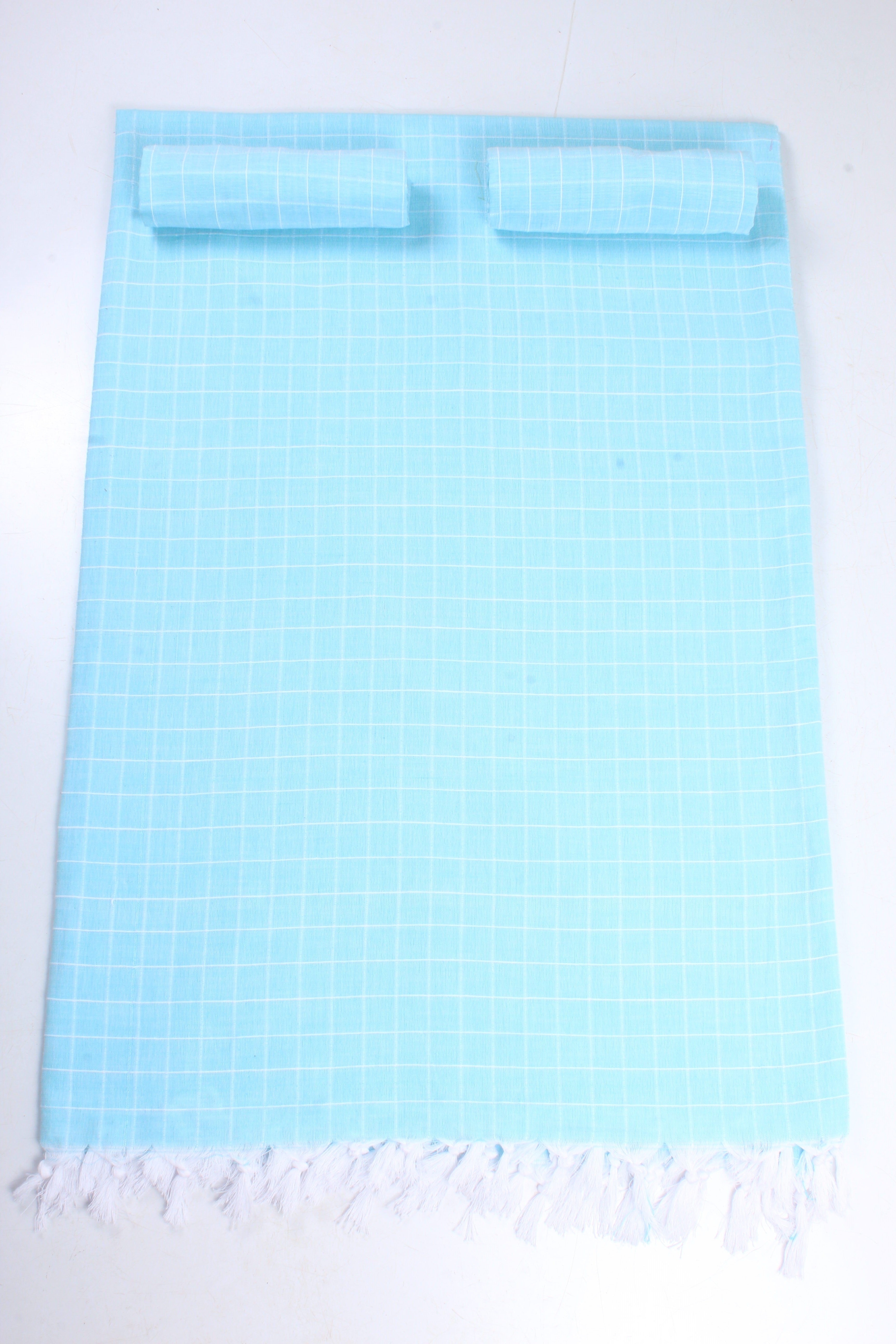 Sky Blue and White Striped Check Double Bedsheet