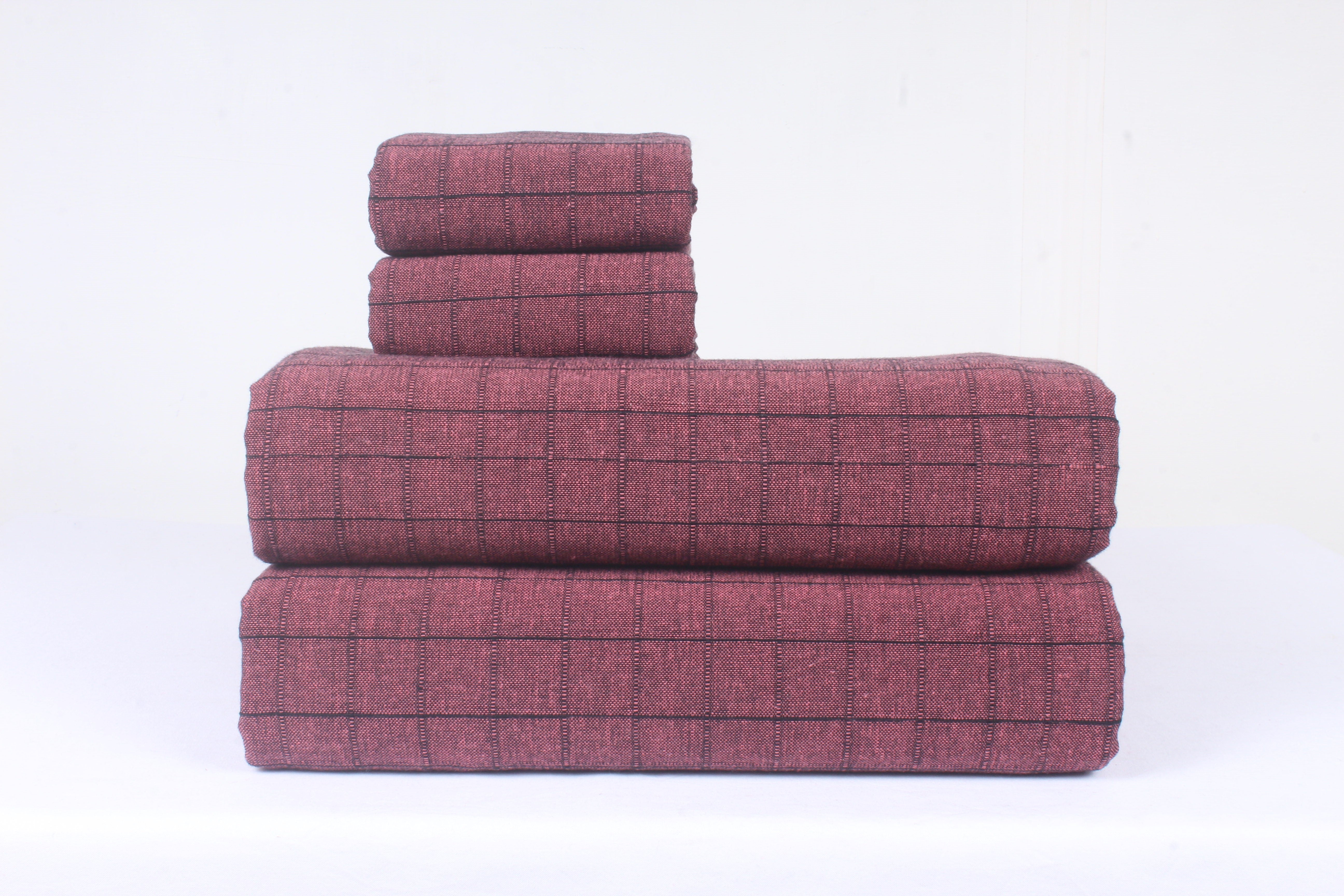 Pink and Black Striped Check Double Bedsheet