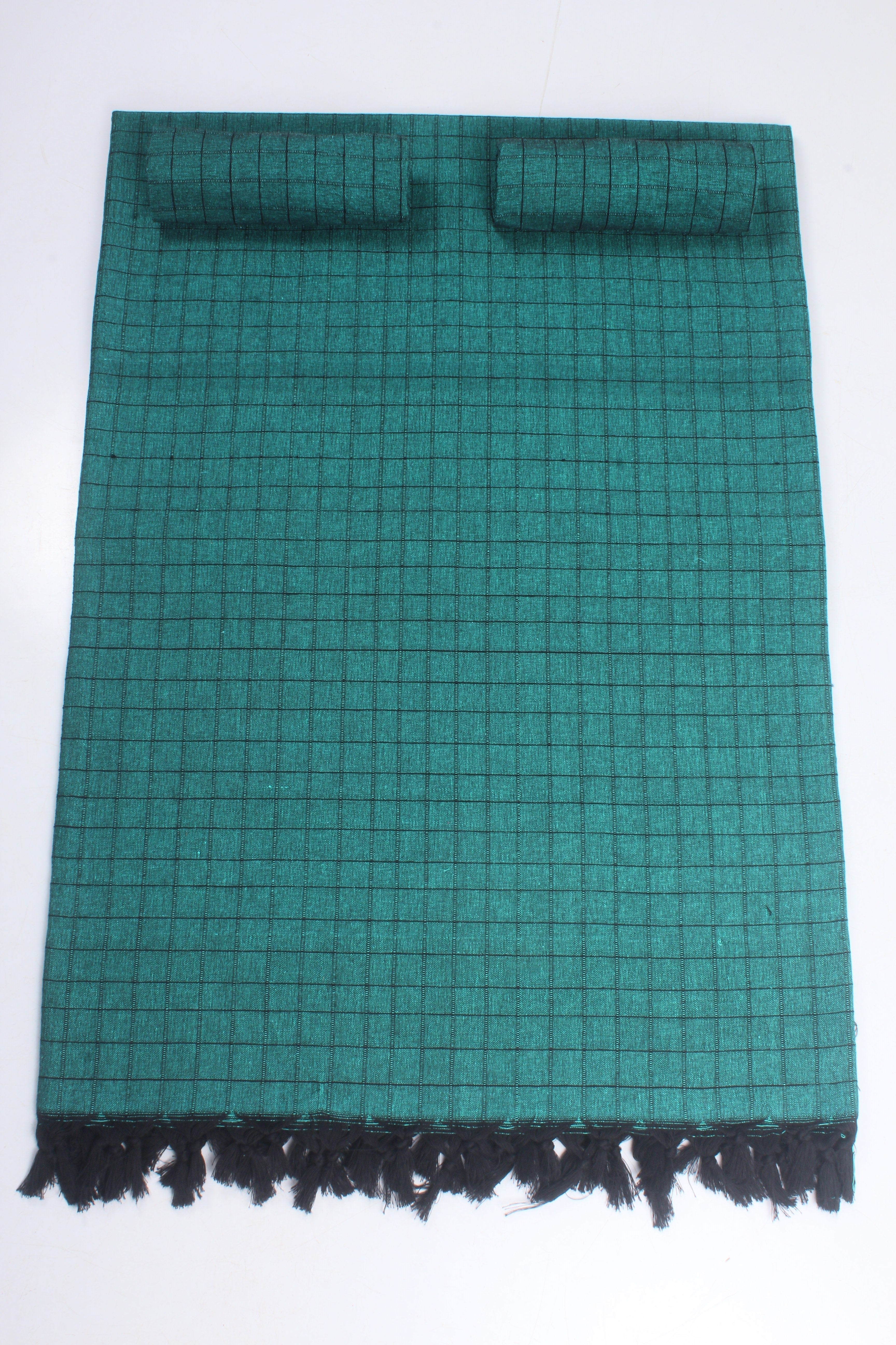Green and Black Striped Check Double Bedsheet