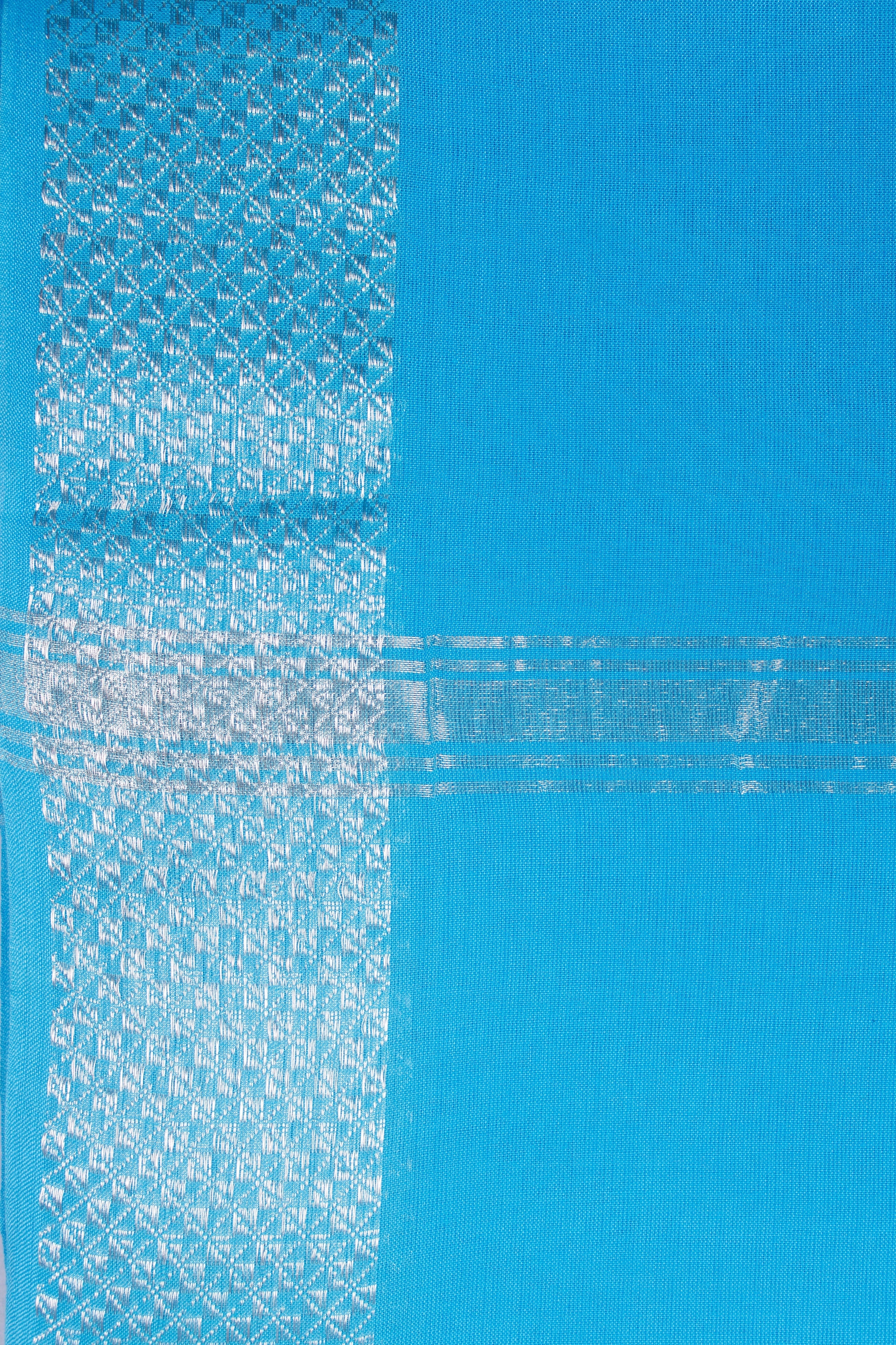Blue Dobby Dhoti Dupatta with Silver Zari Border
