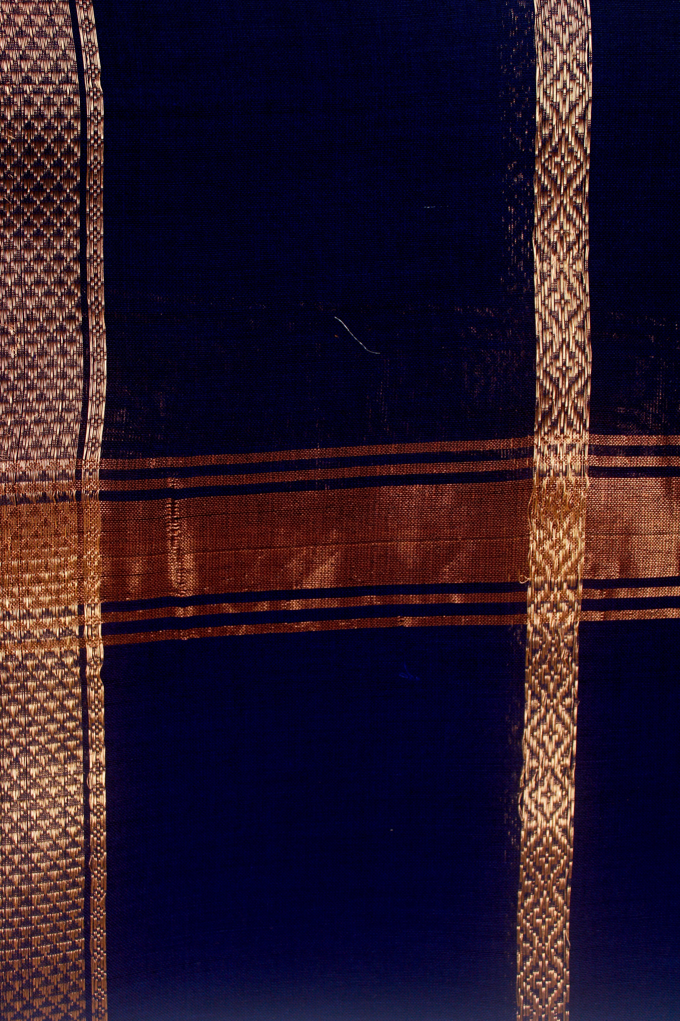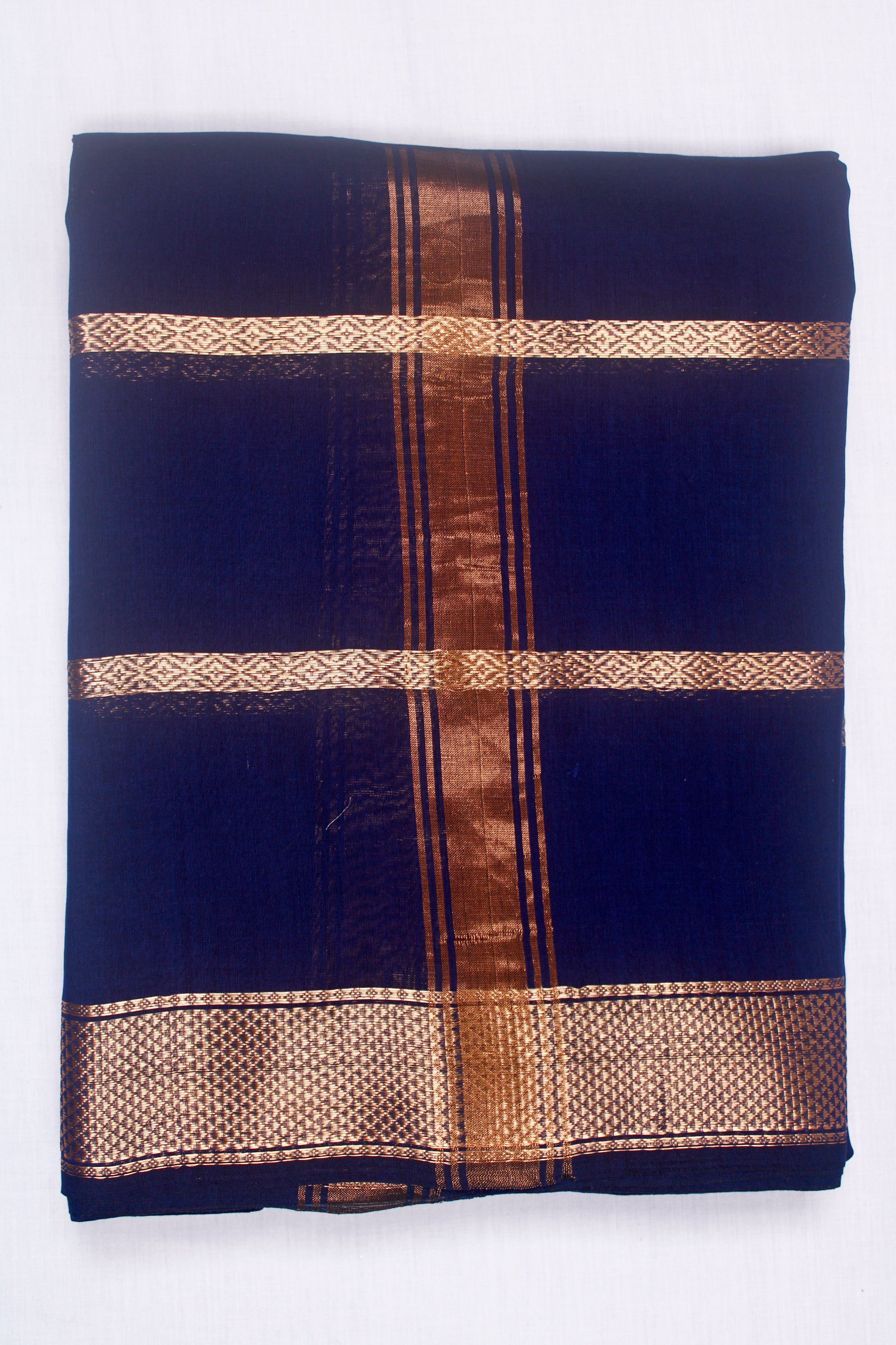 Blue Dobby Dhoti Dupatta with Golden Zari Stripes and Border