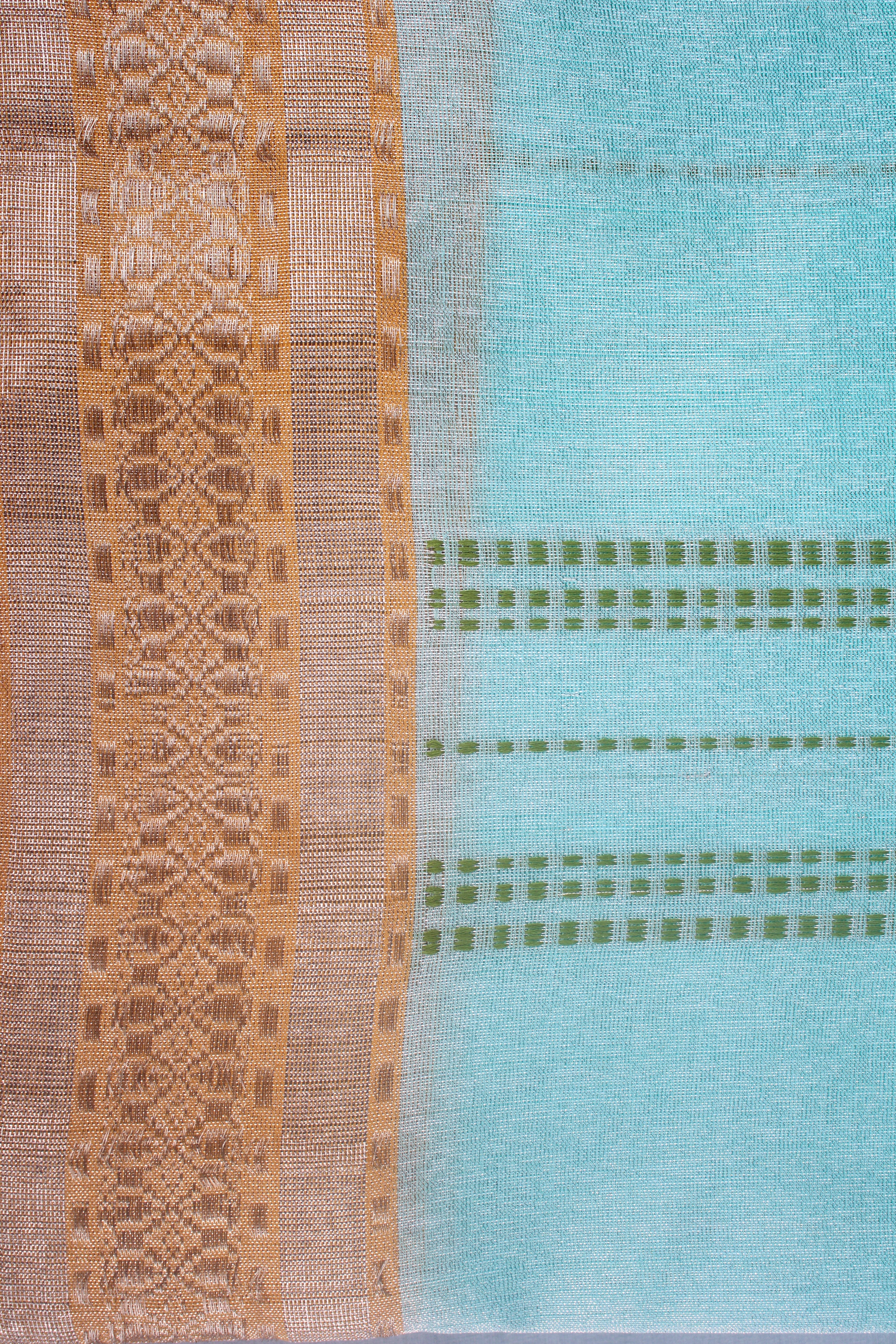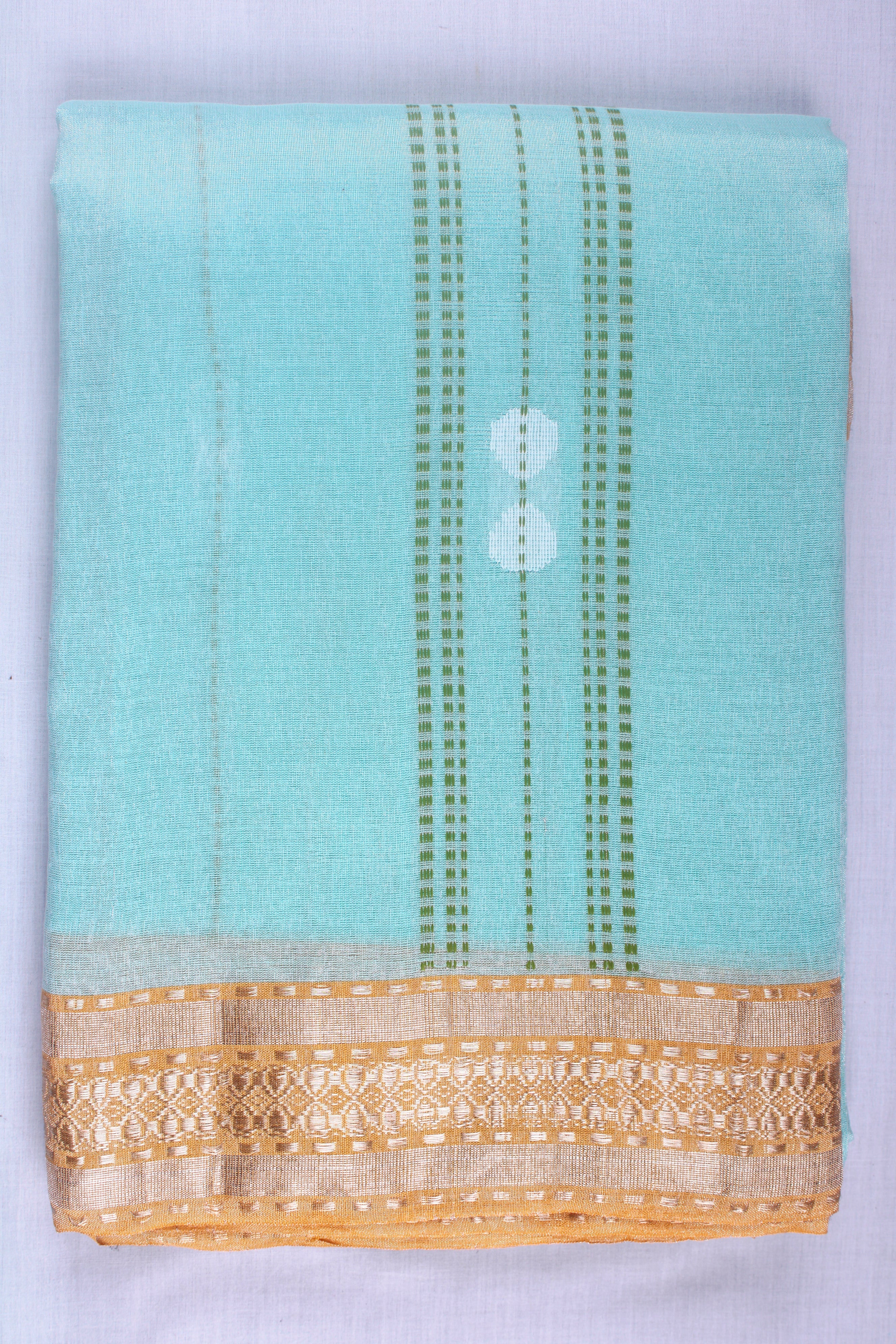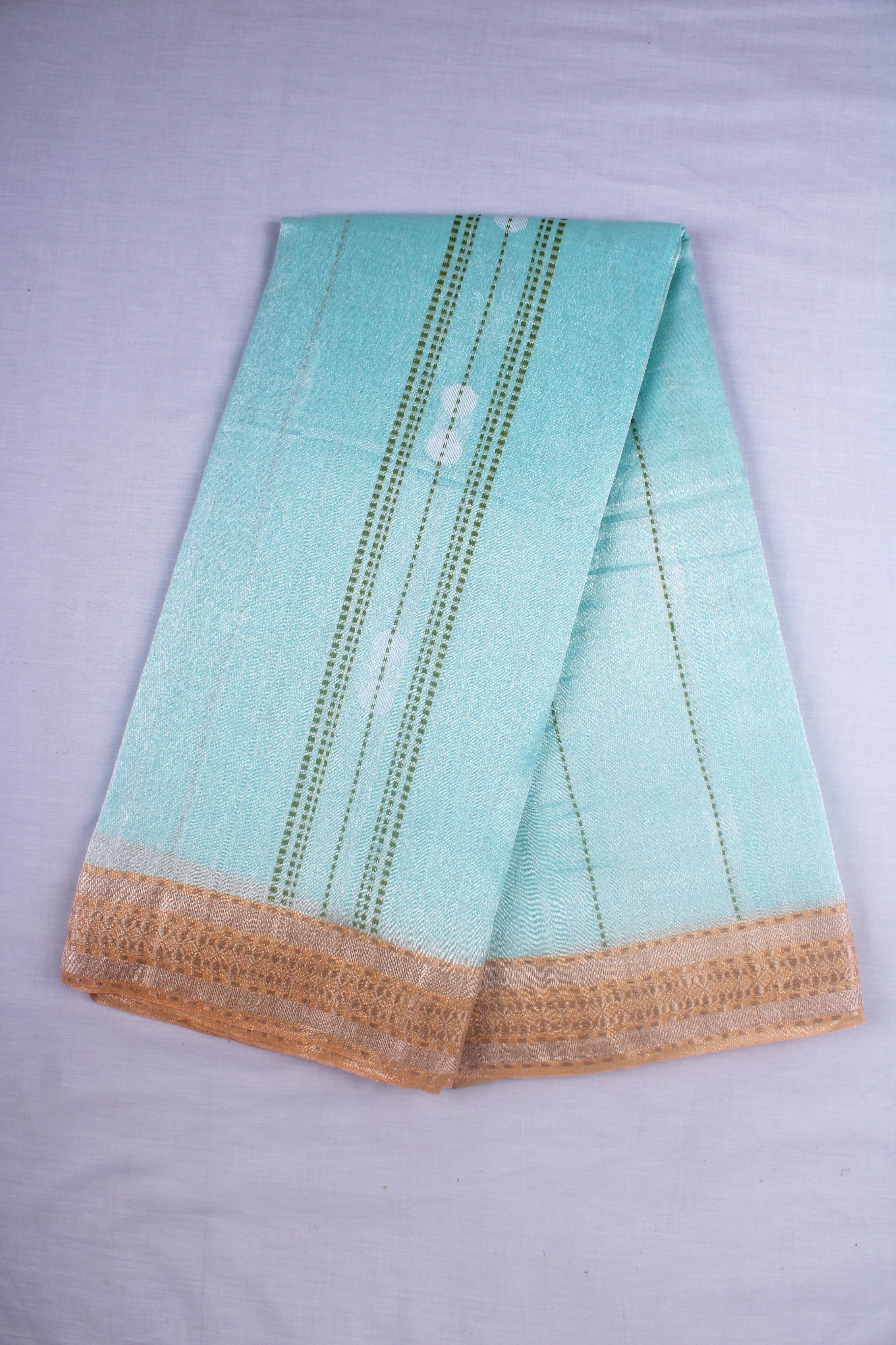Blue Dhoti Dupatta with Golden Zari and Orange Border