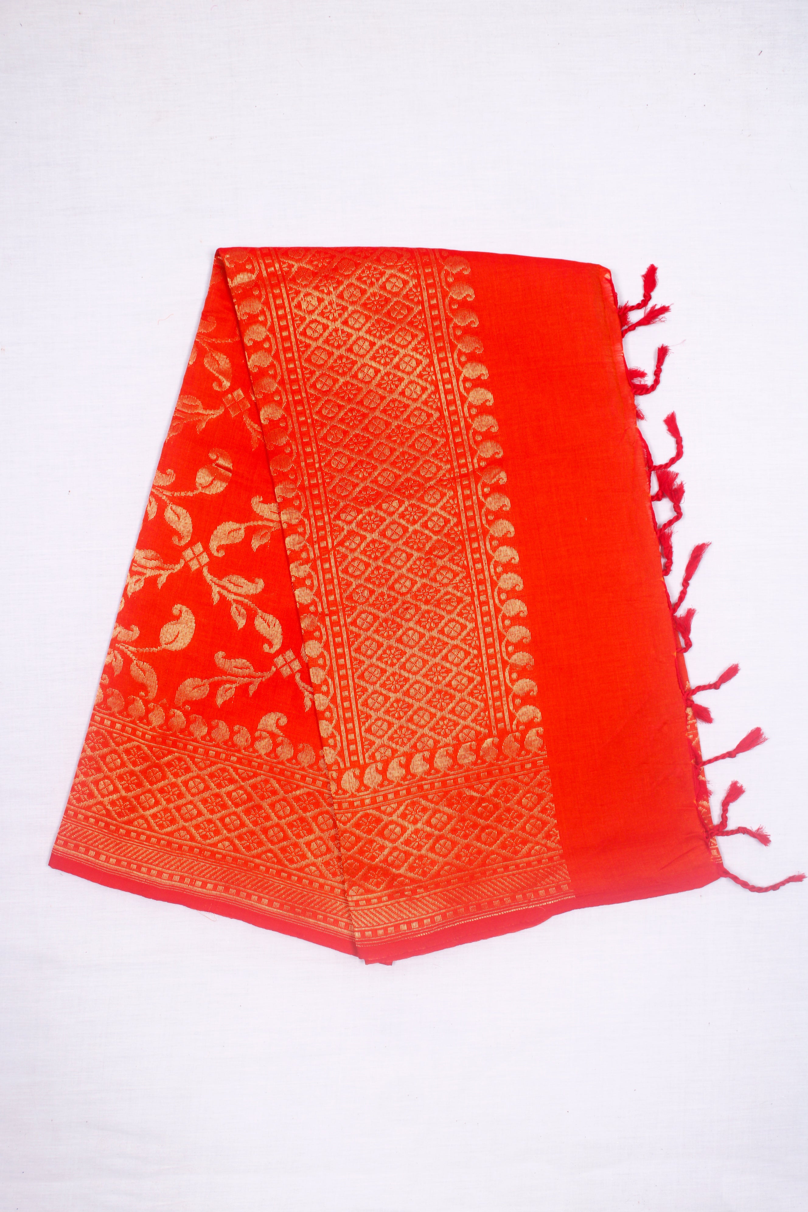 Red and Golden Zari Jacquard Dhoti Dupatta
