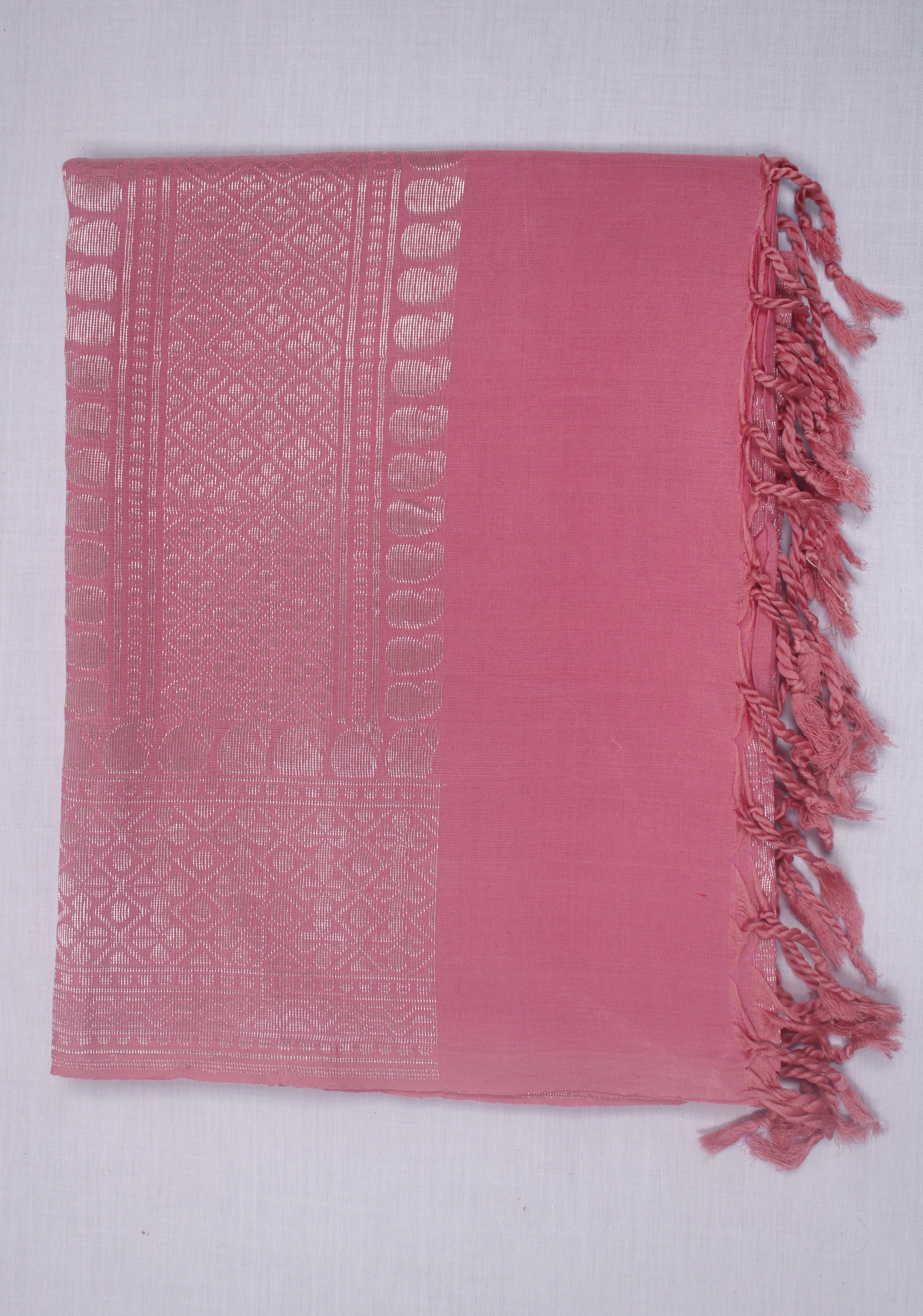 Pink and Silver Zari Jacquard Dhoti Dupatta