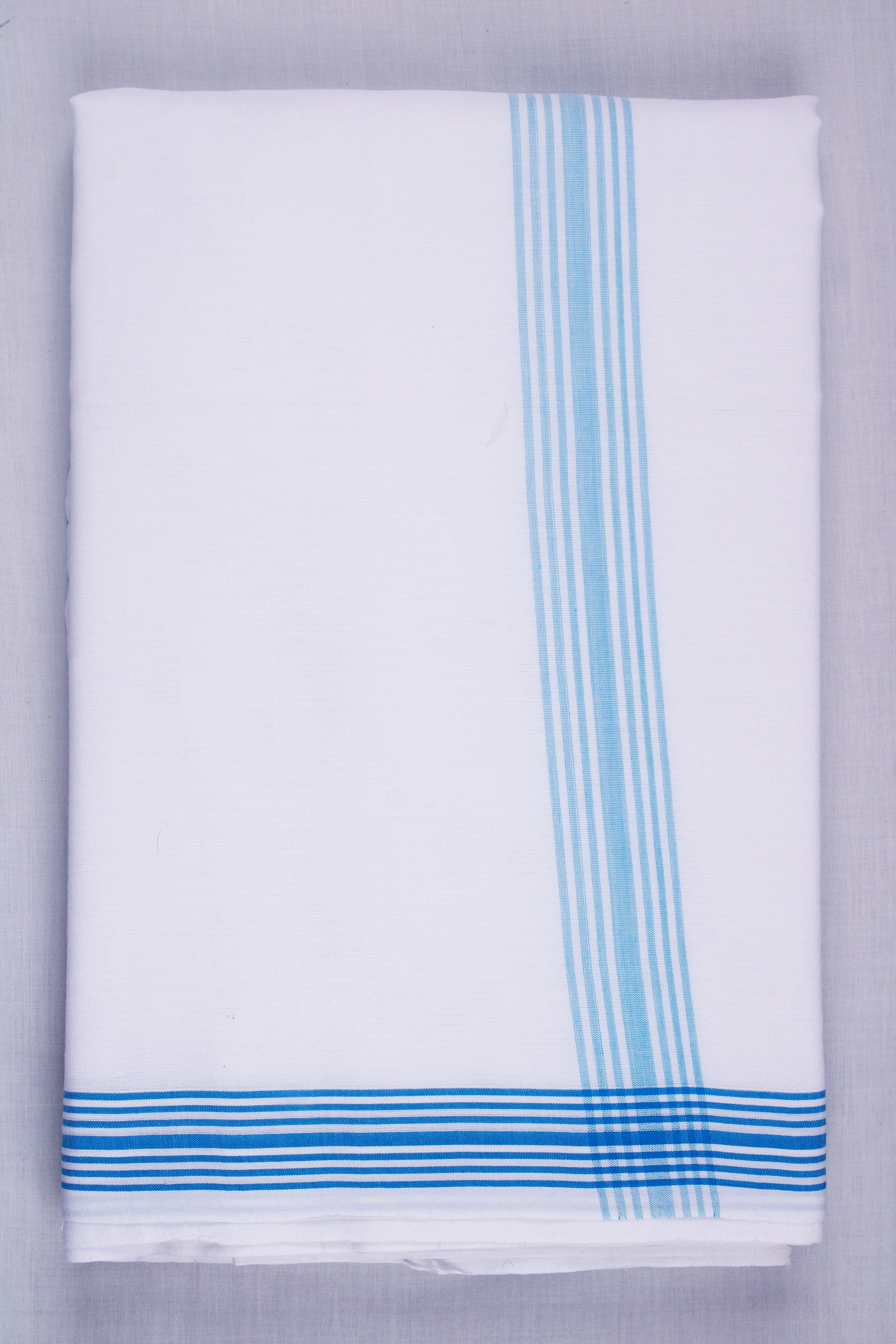 White Dhoti Dupatta with Blue Border