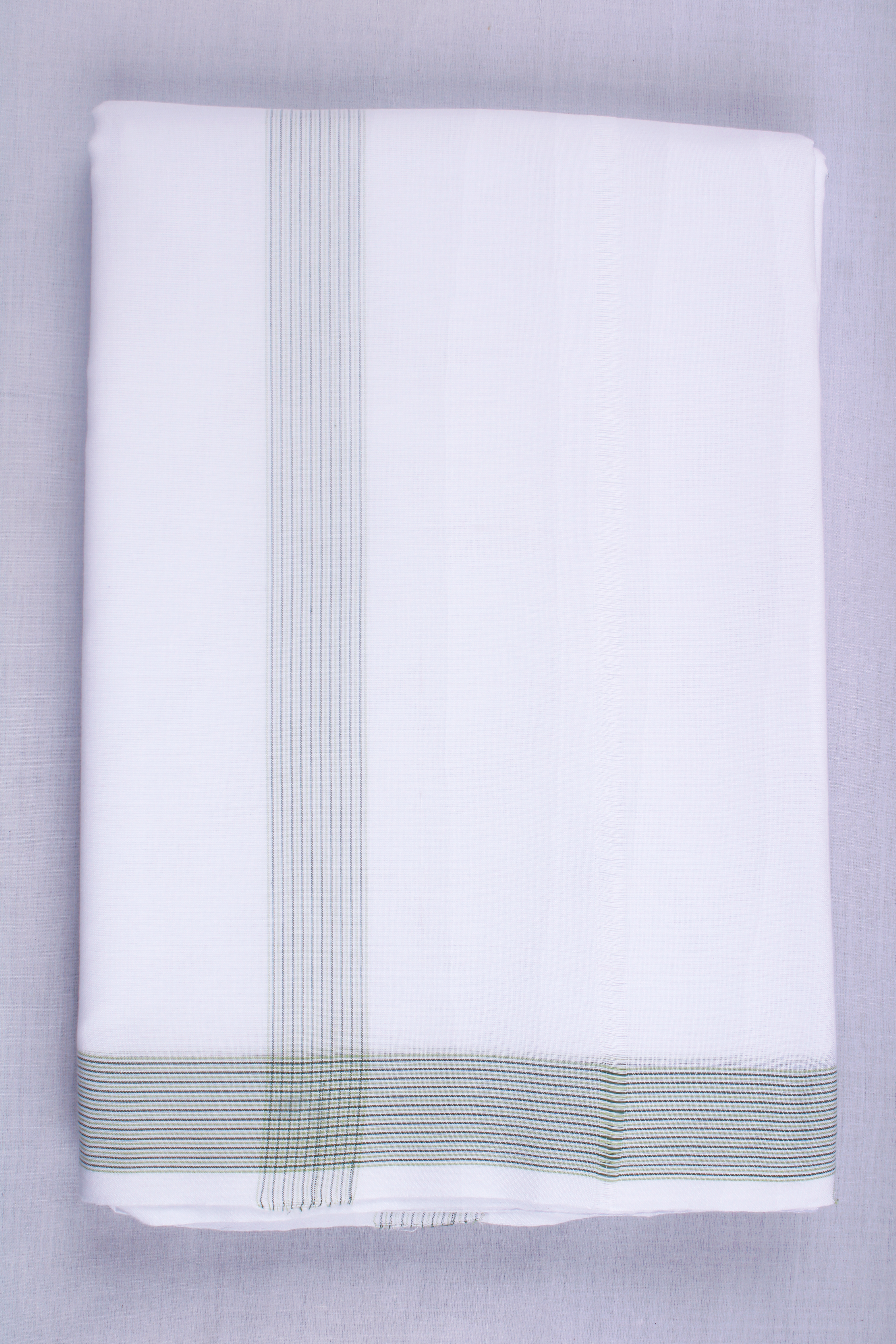 White Dhoti Dupatta with Green Border