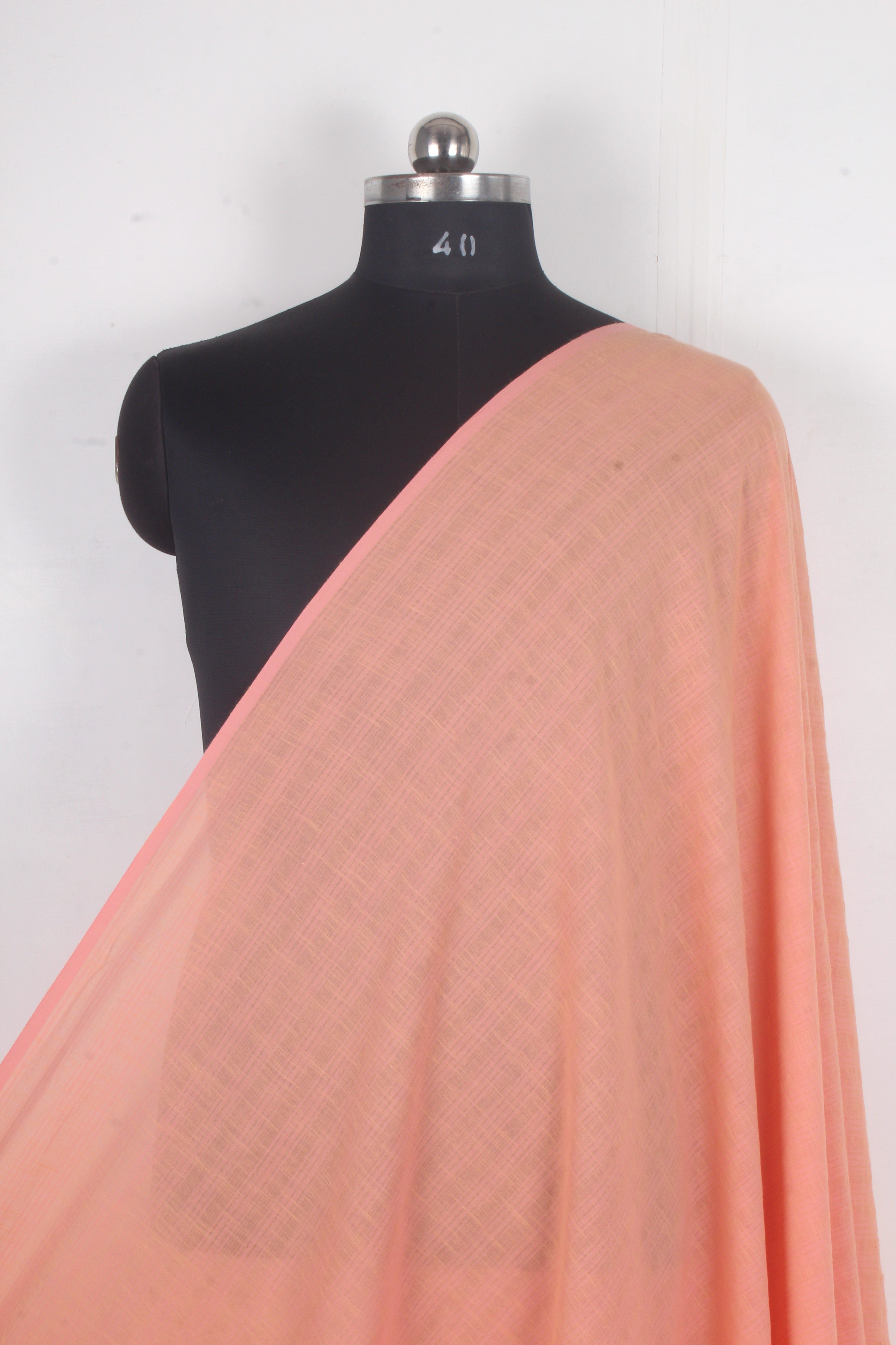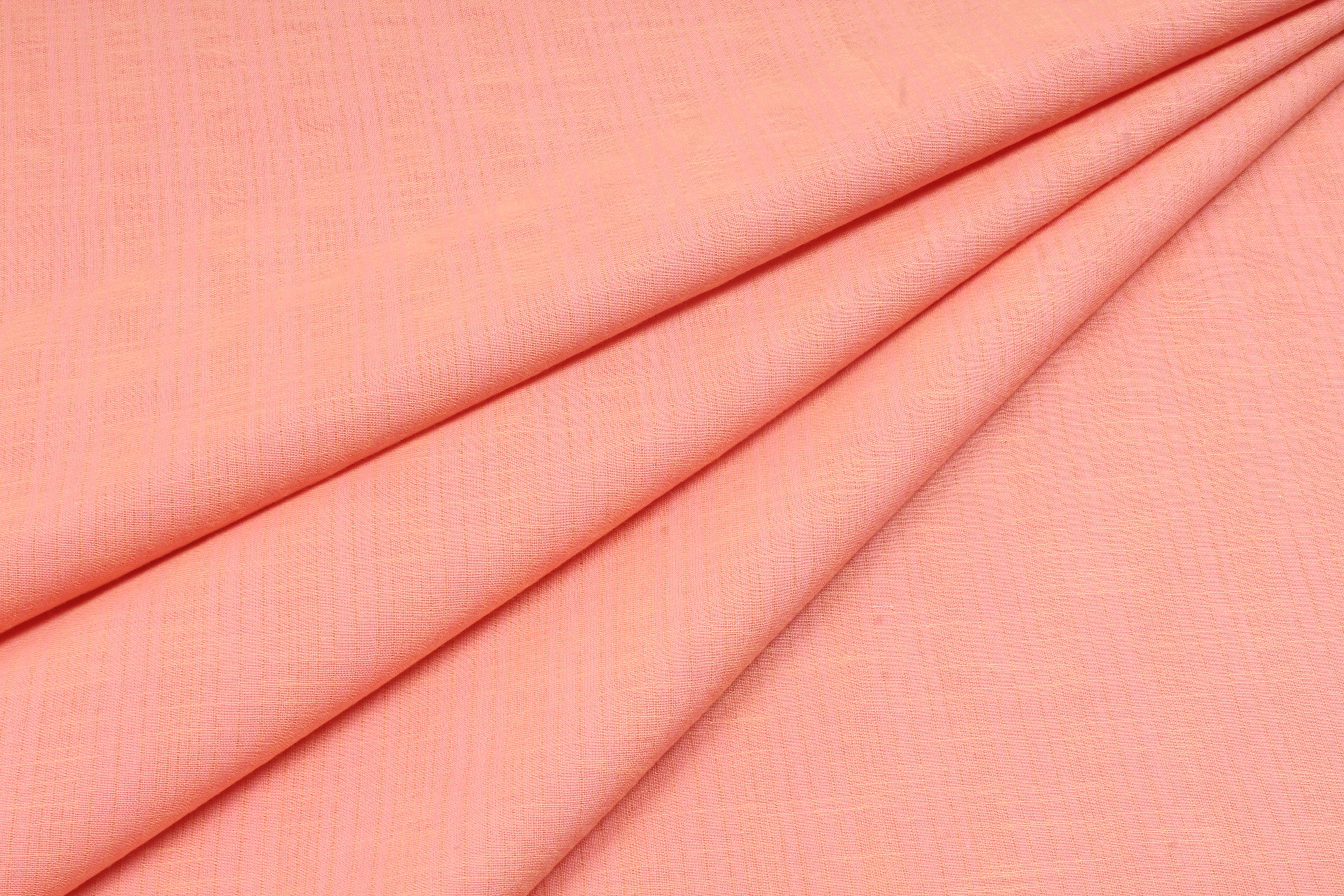 Handwoven Pure Cotton Fabric - Brick Pink with Self Line
