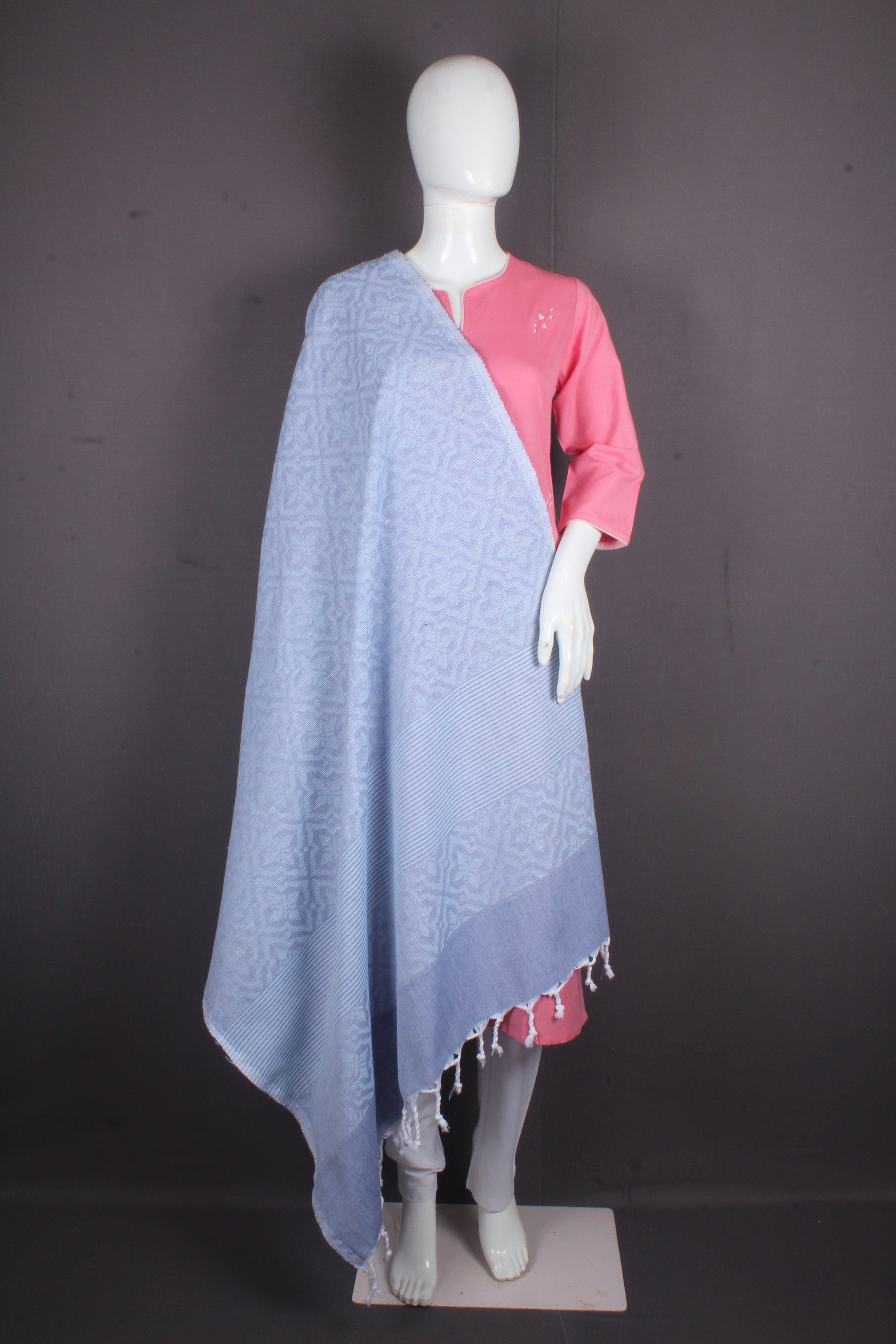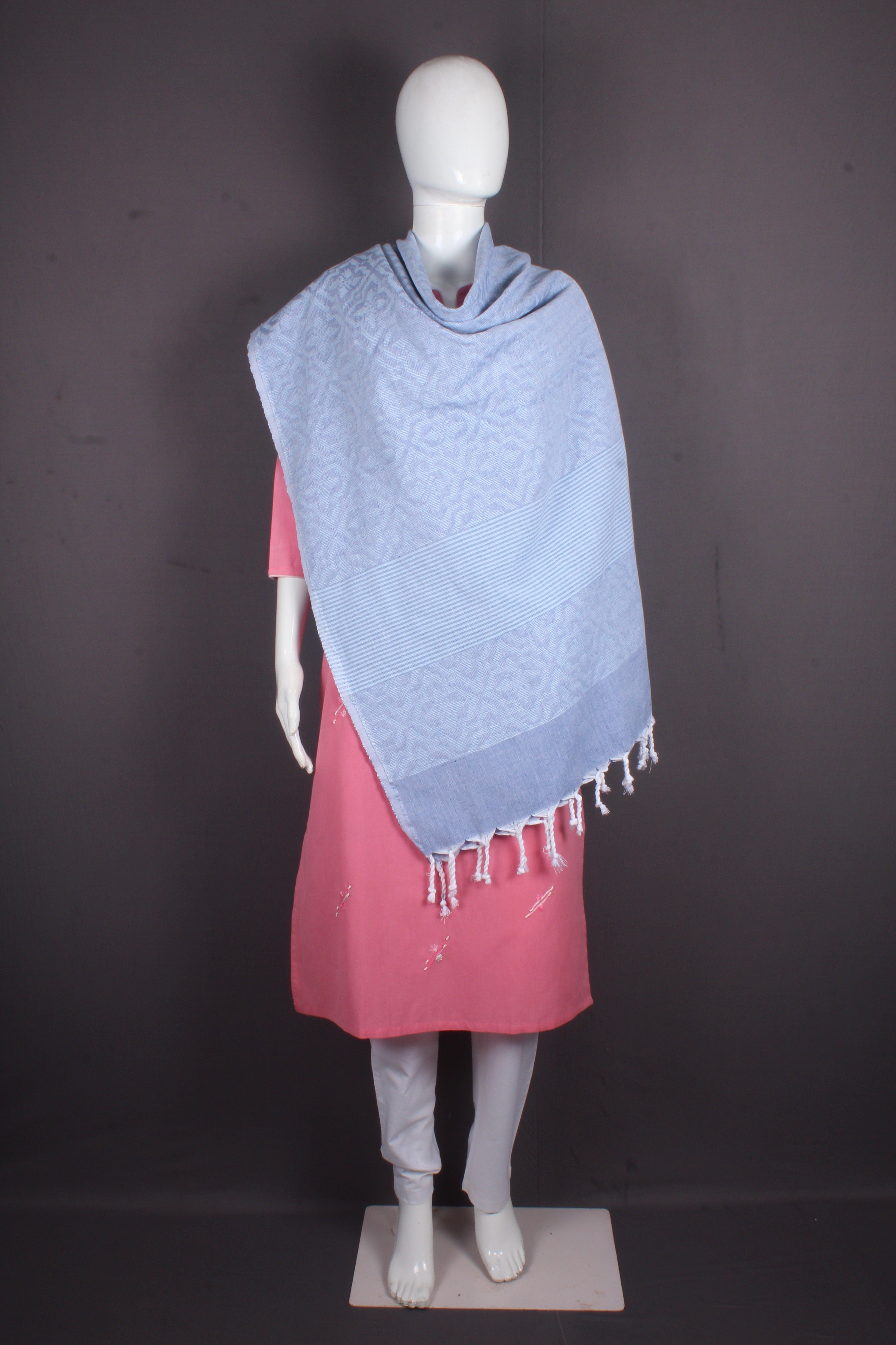 Sky Blue Jacquard Shawl