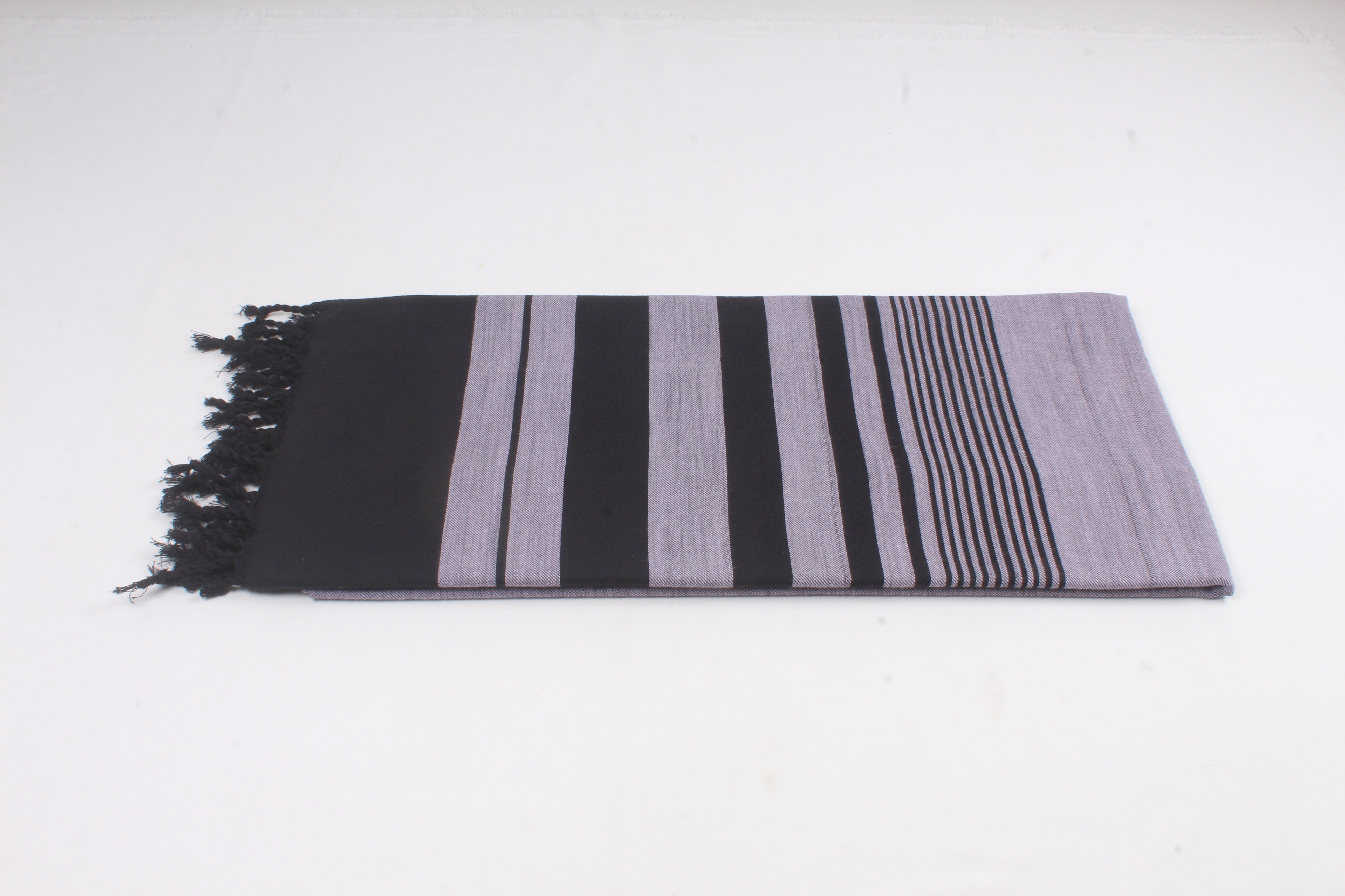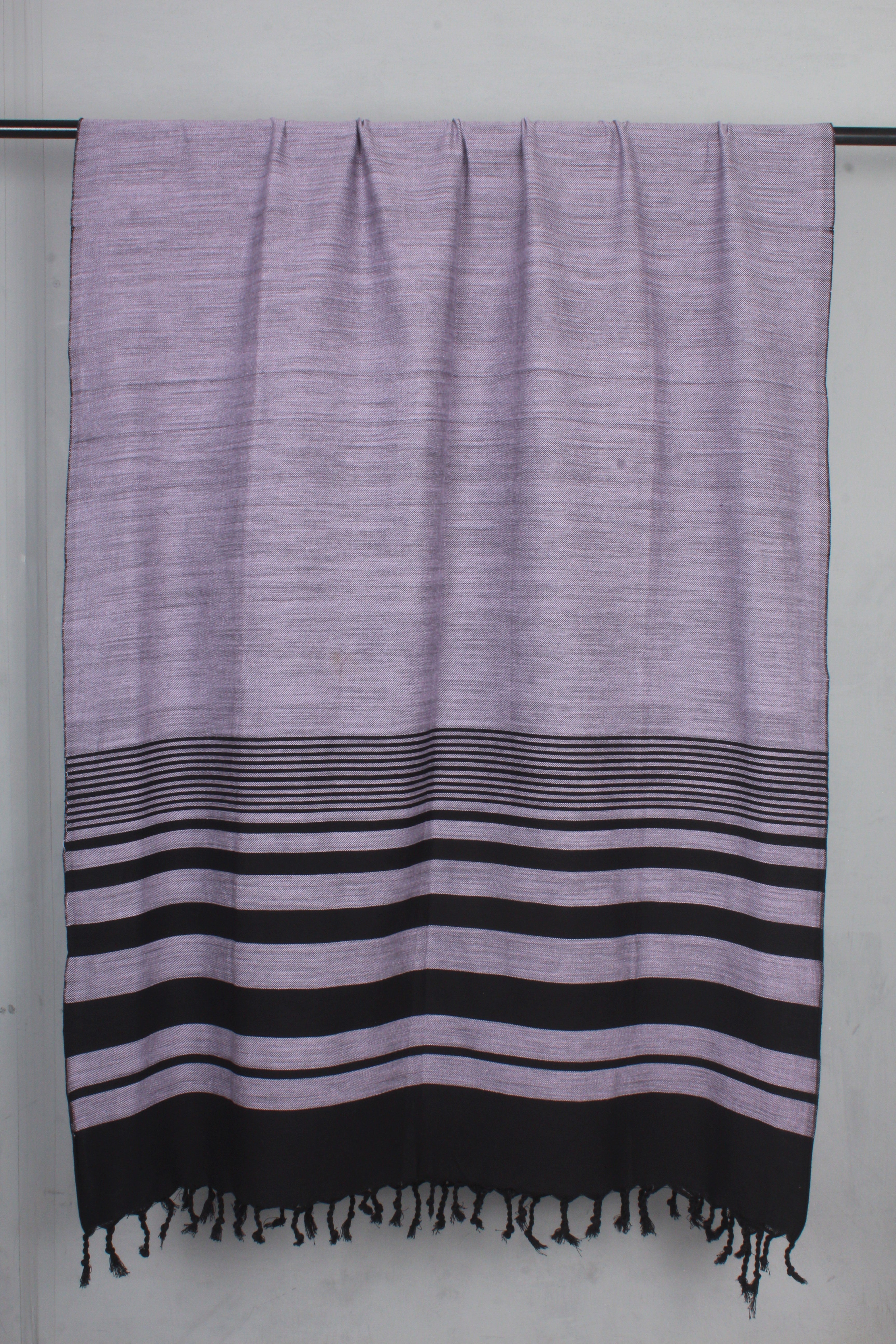 Handwoven Cotton Purple Shawl with Black Striped