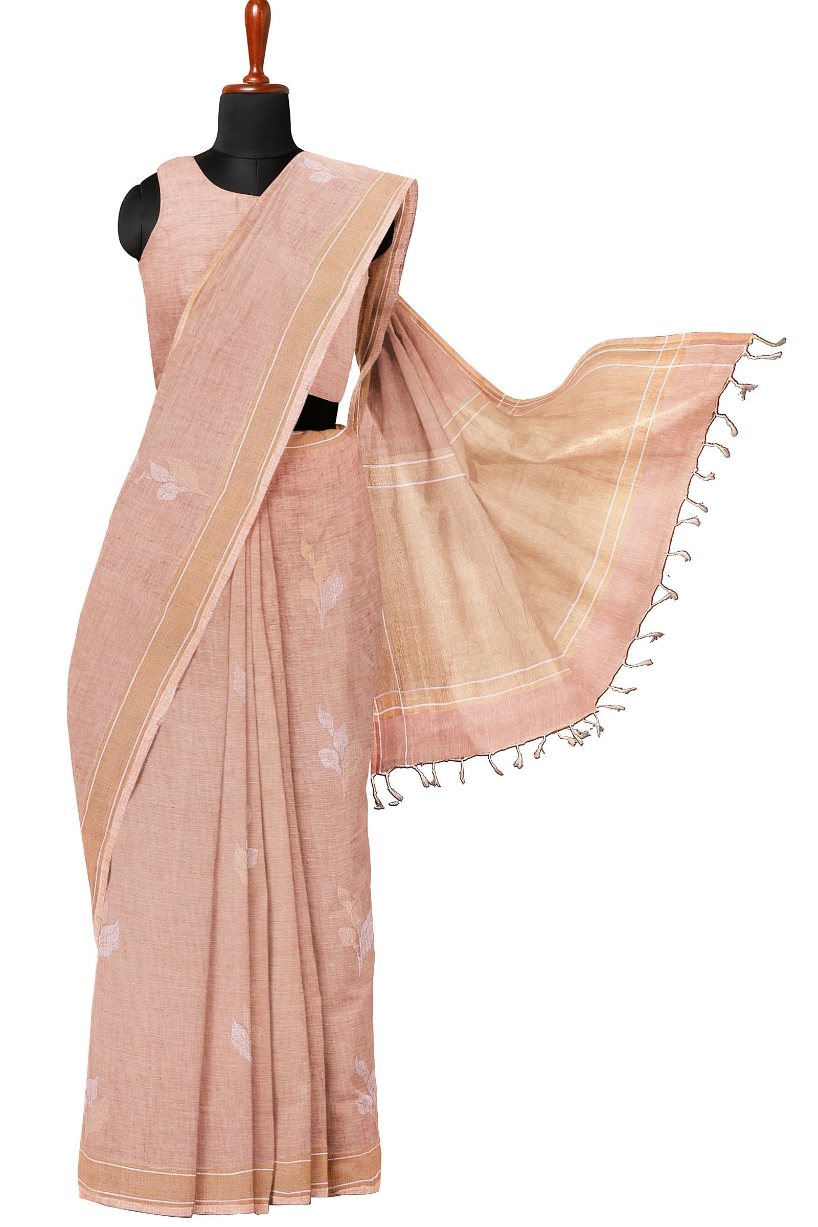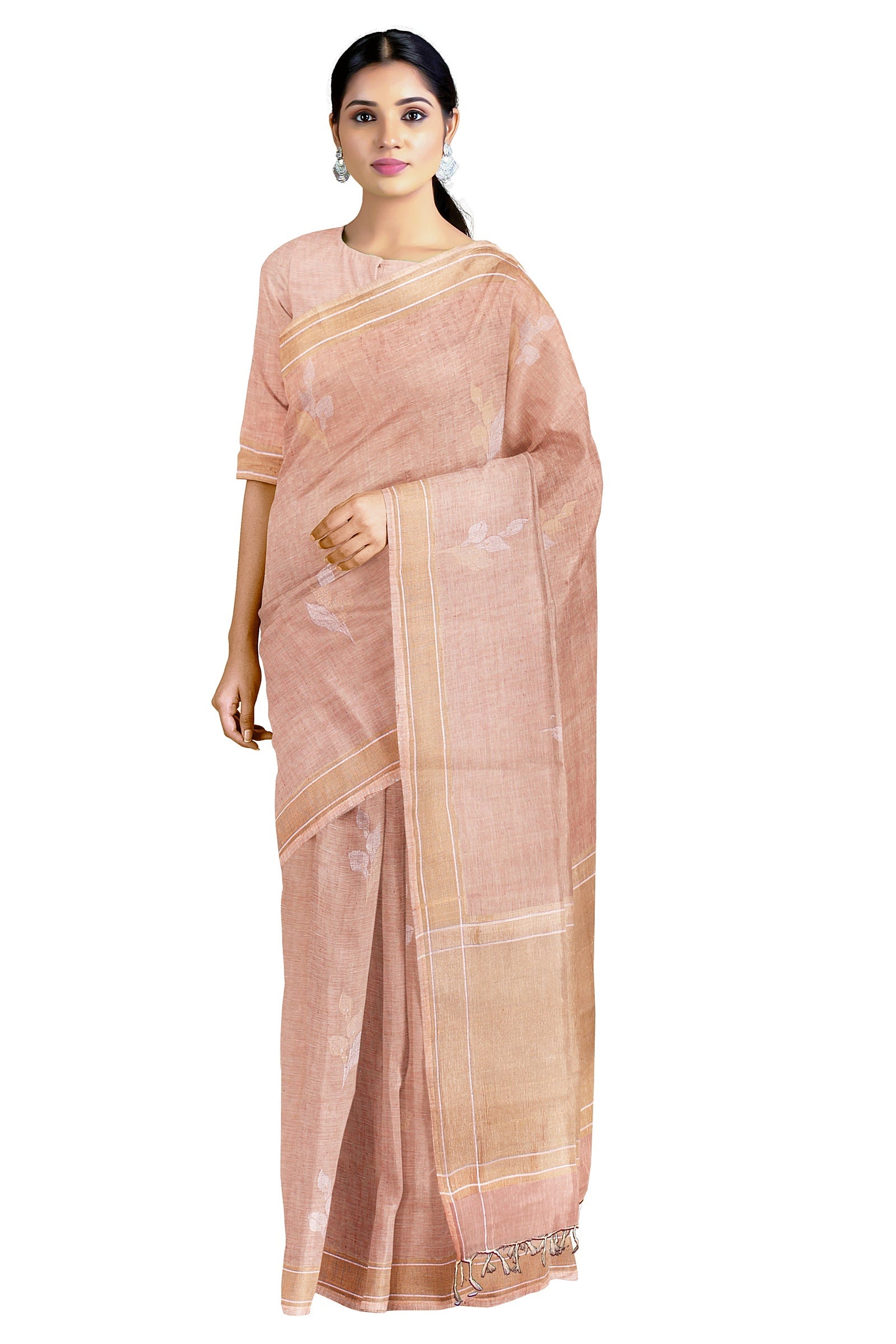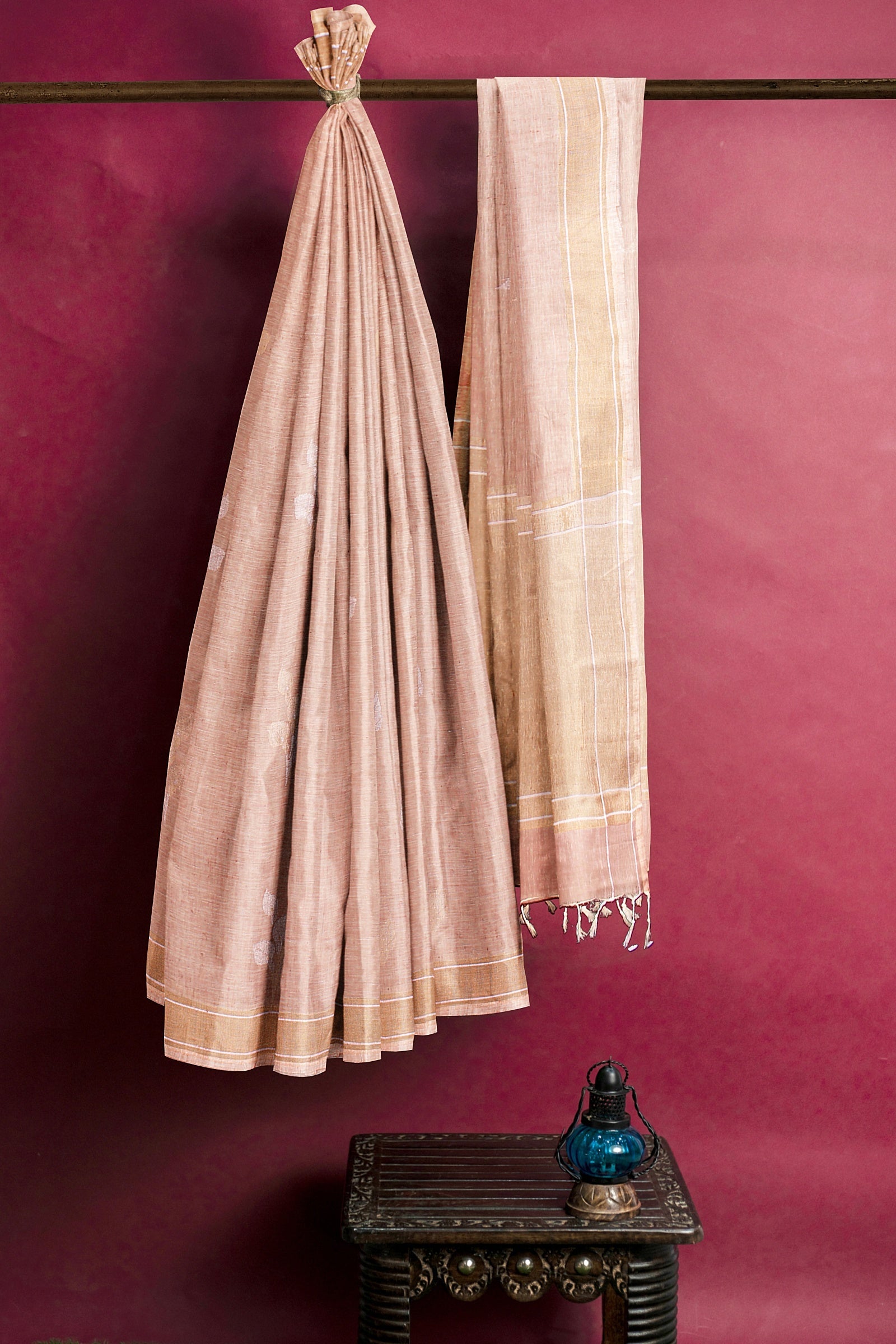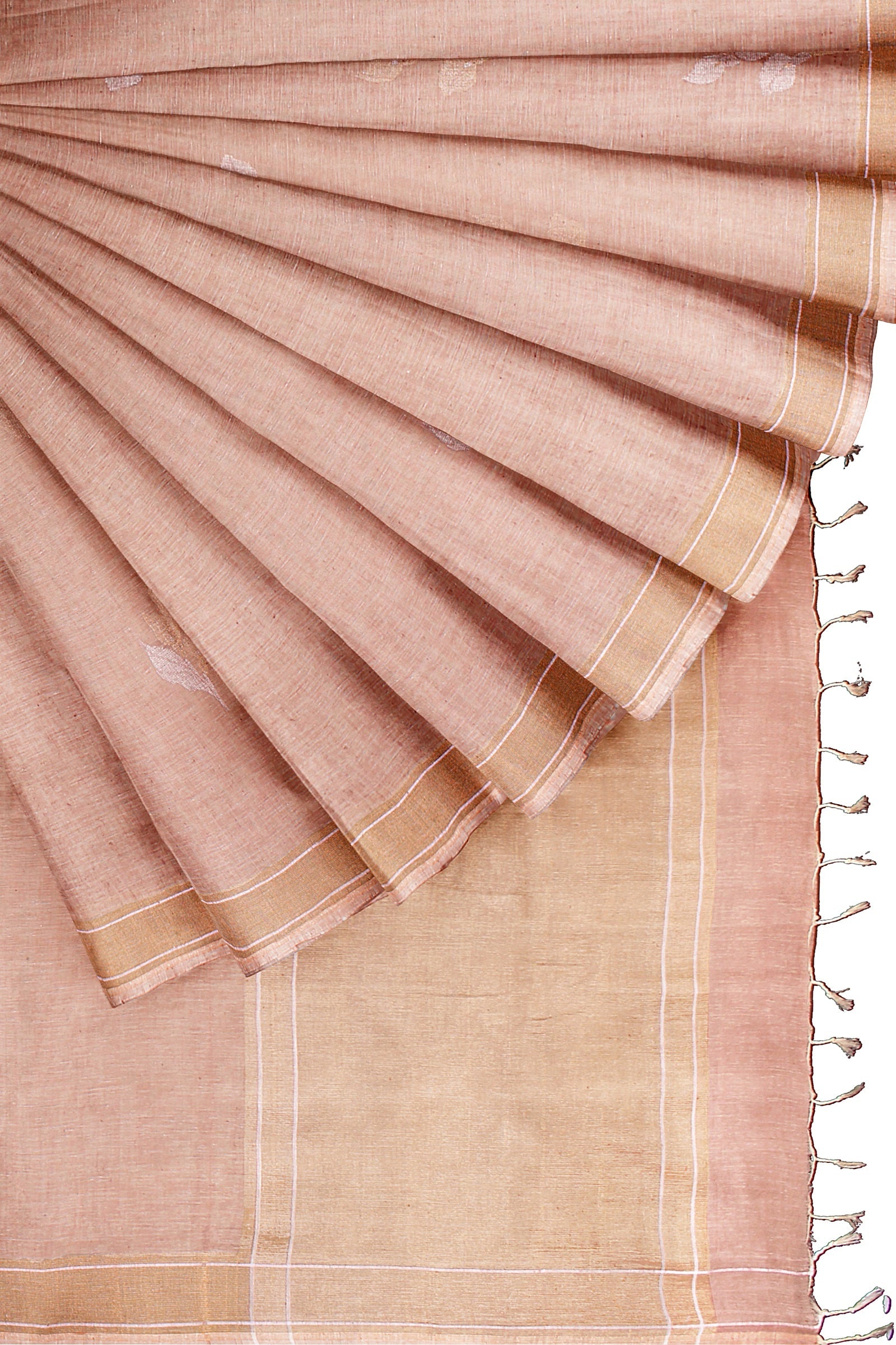 Desert Sand Saree with White, Golden and Silver Zari Border and Butis