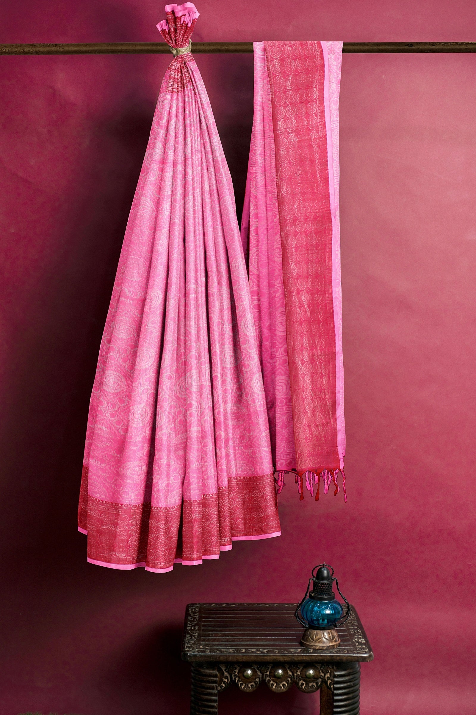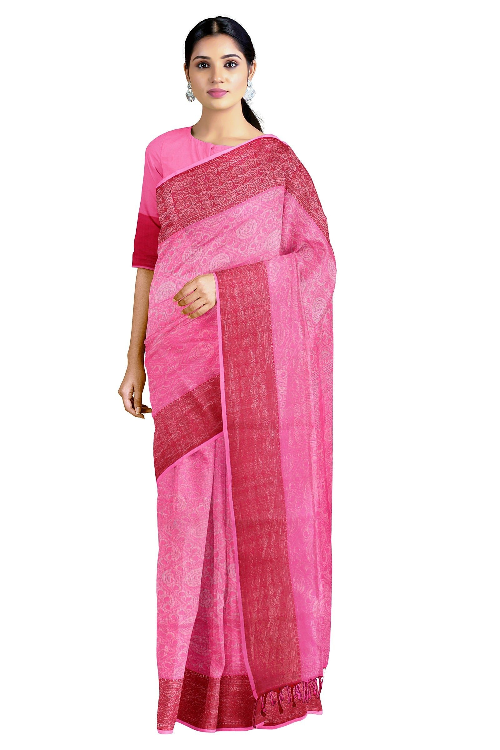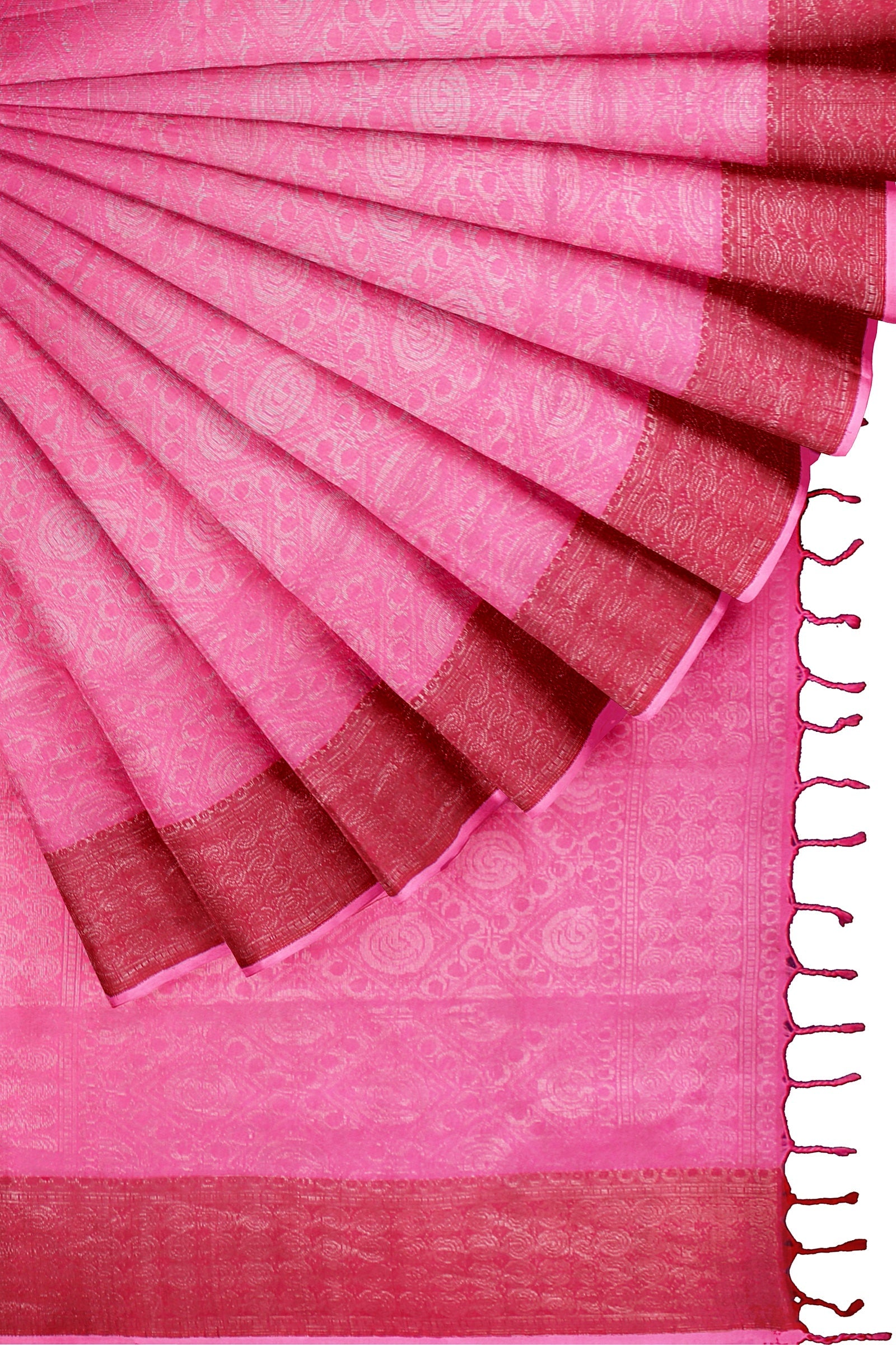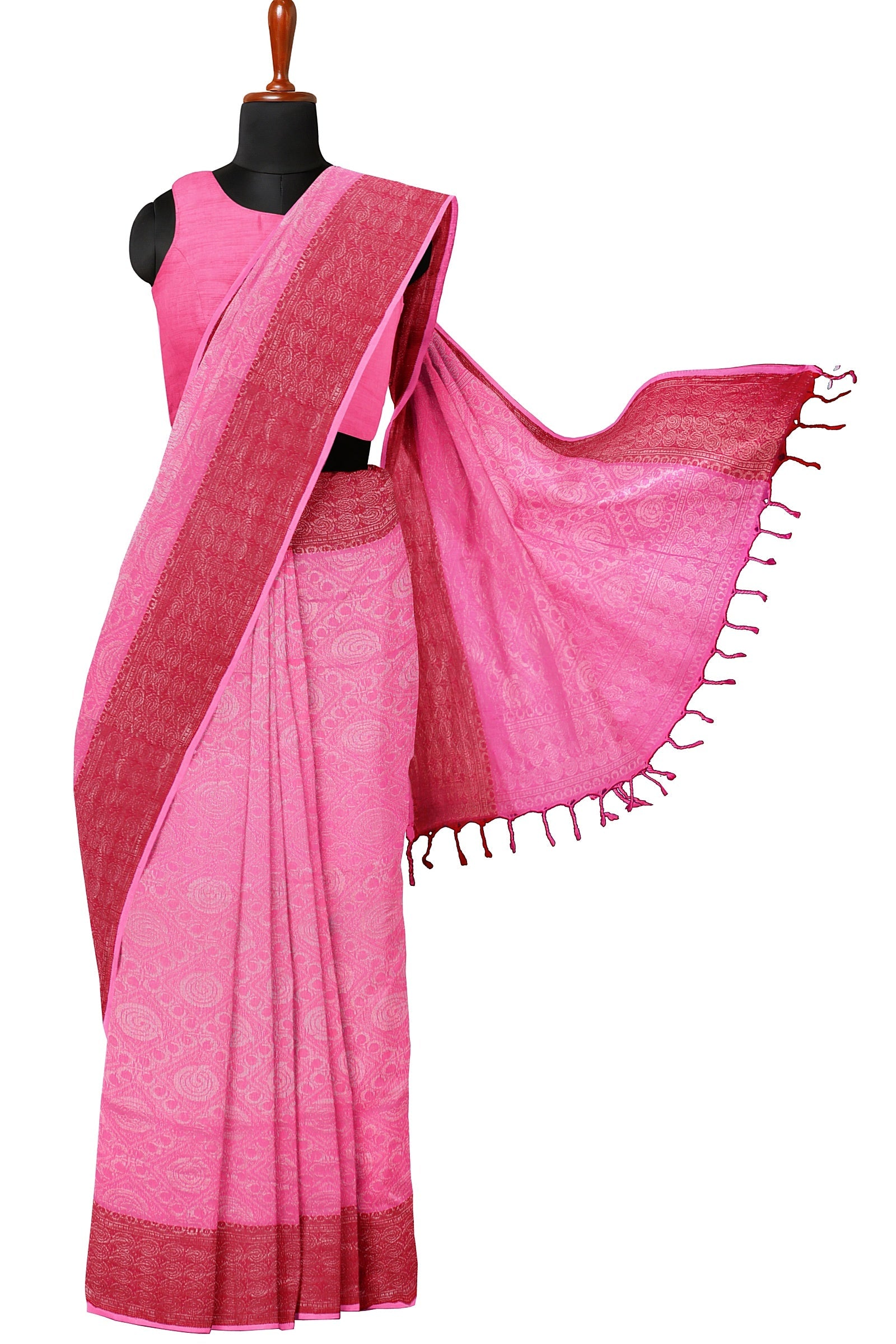 Magenta and Silver Zari Jacquard Saree with Red Border