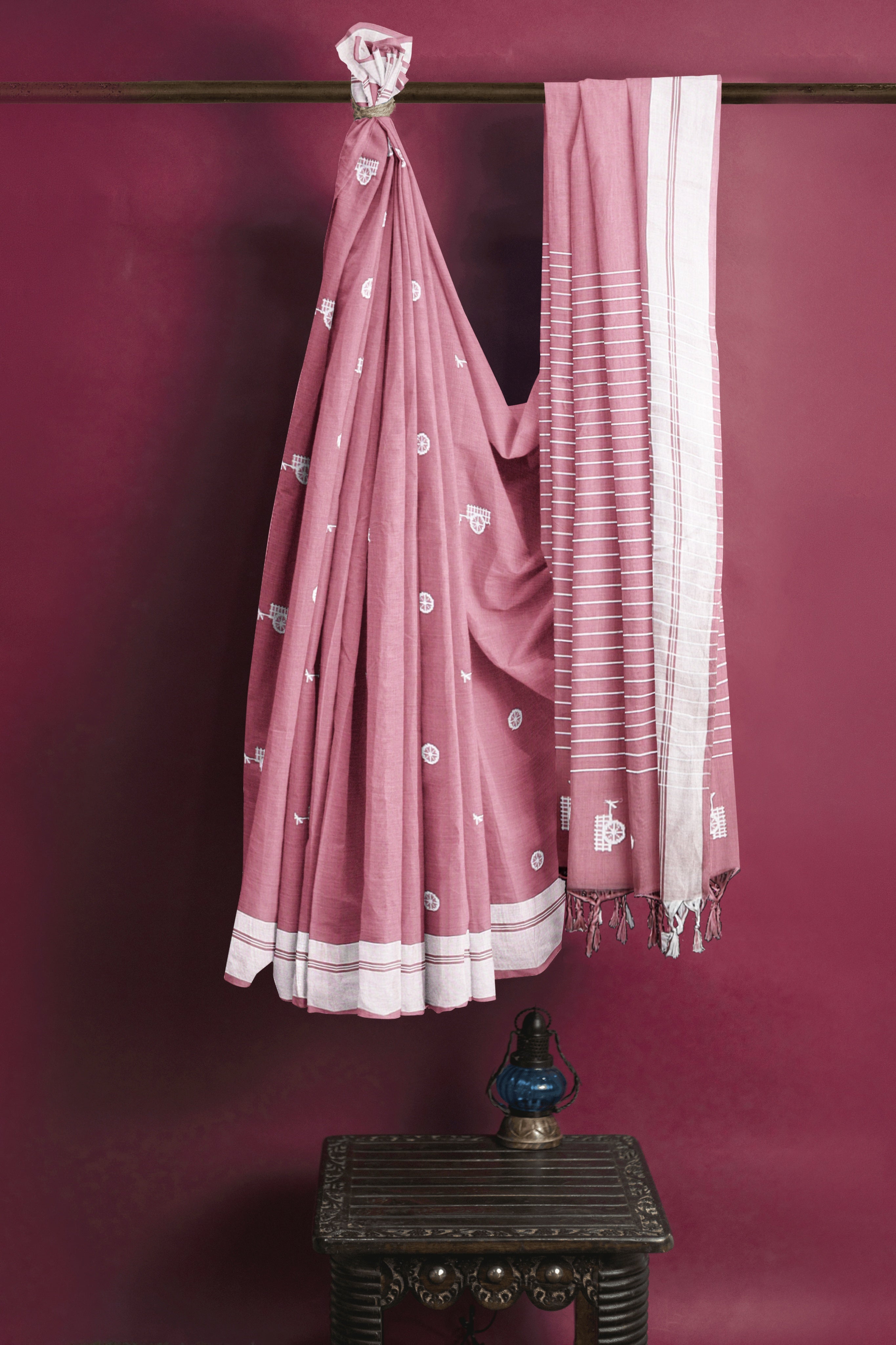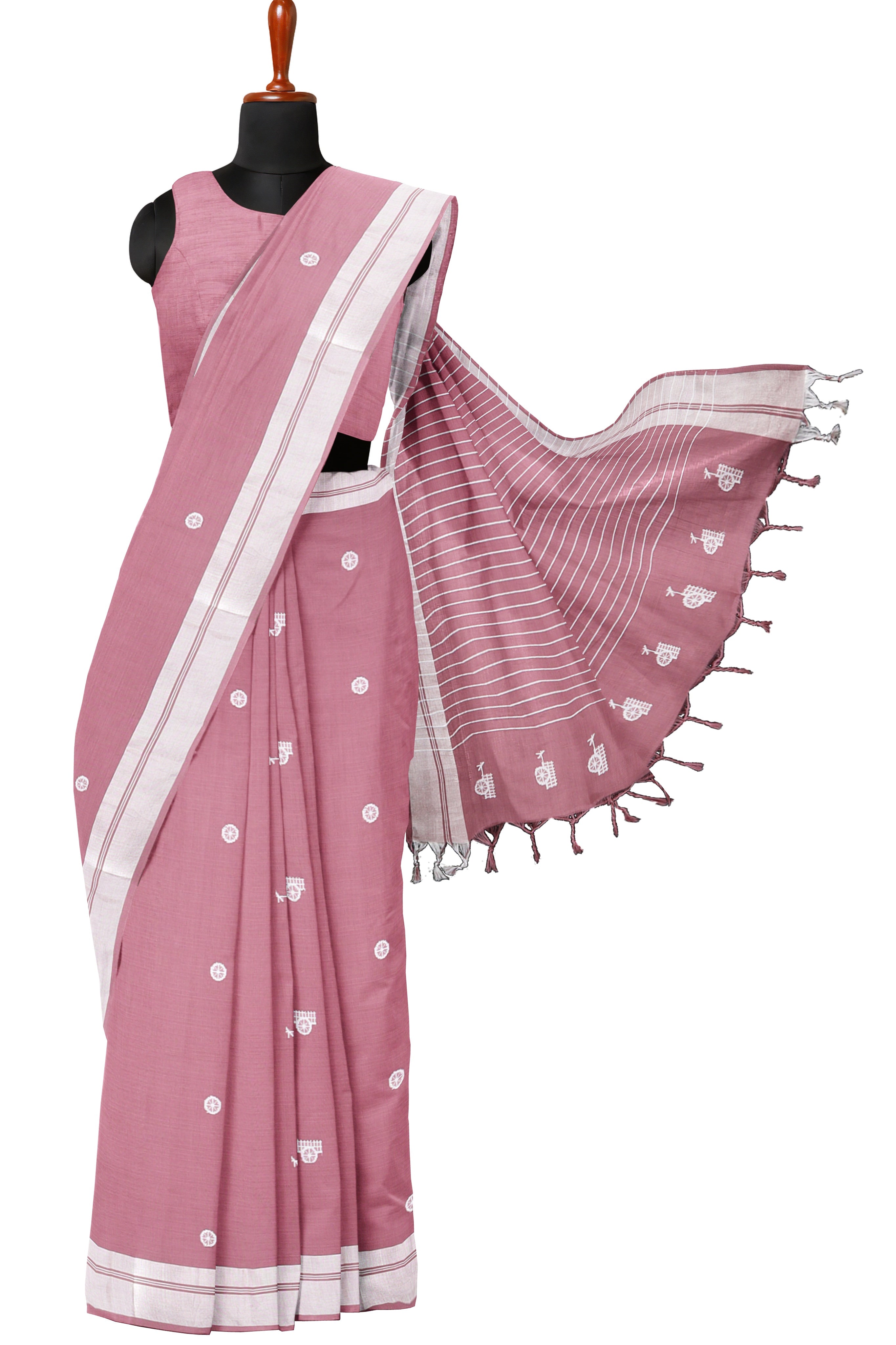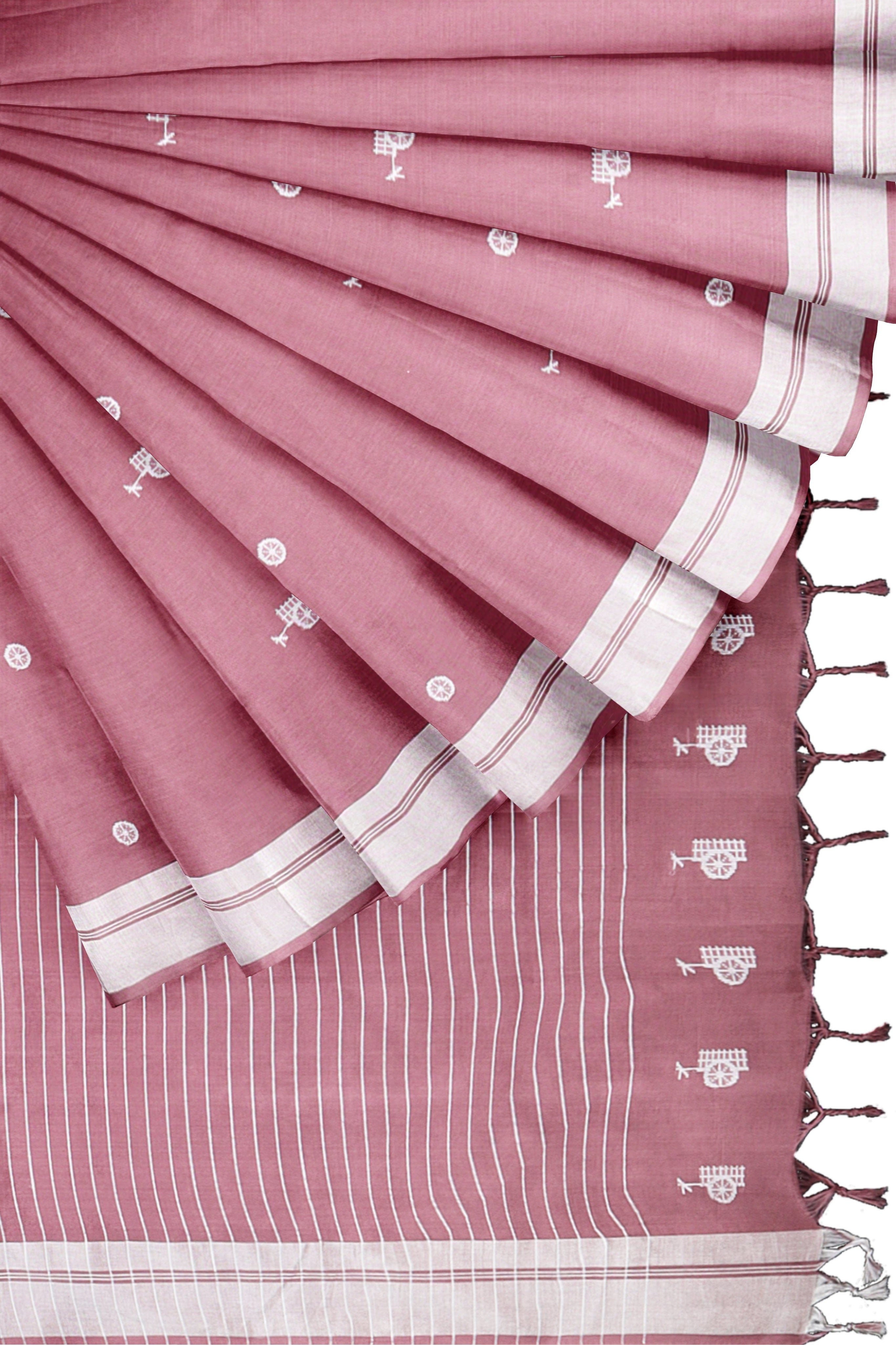 Mauve Pink Saree with Butis and Silver Zari Border