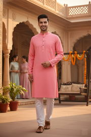 Punch Pink Full Sleeves Long Kurta with Self Striped