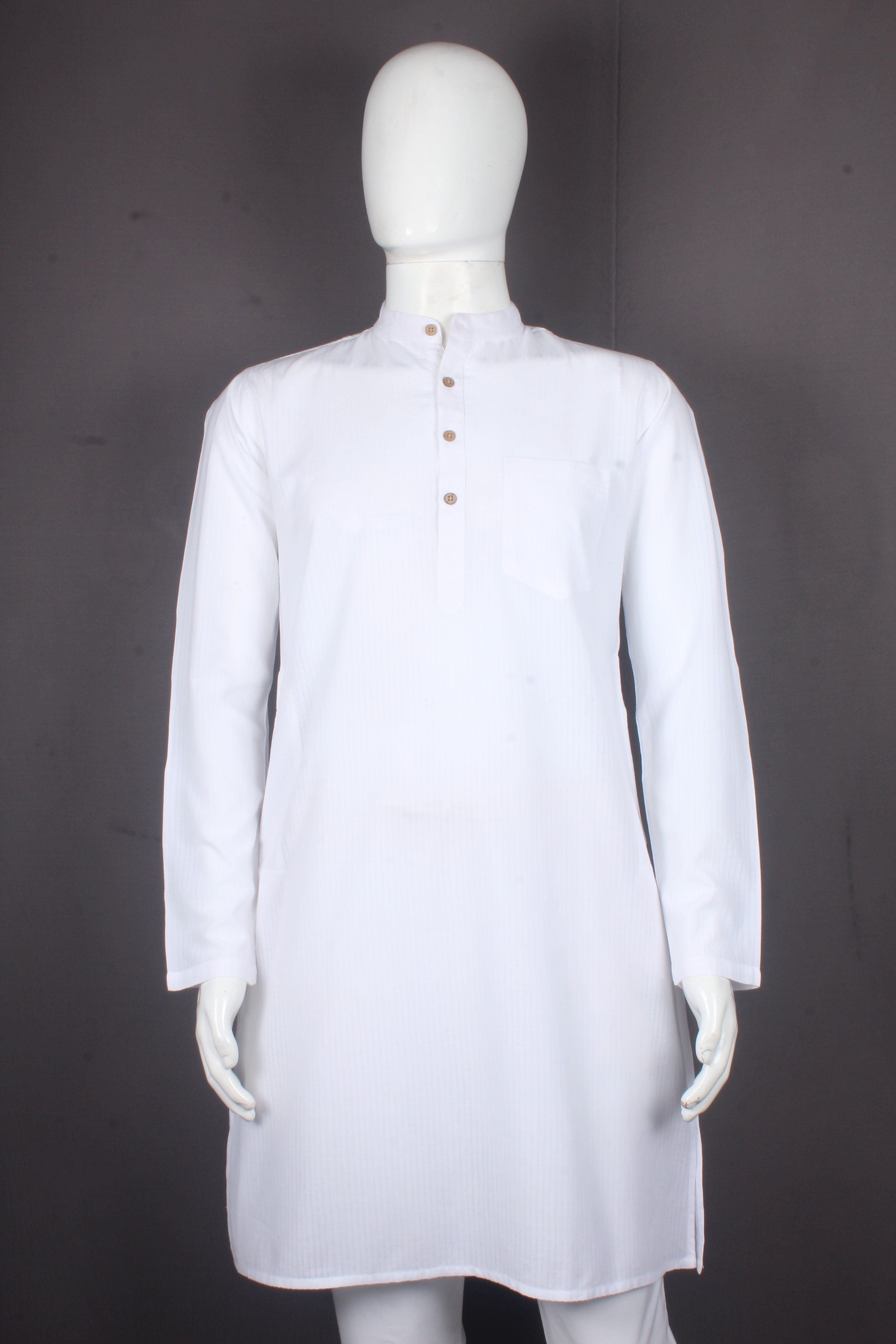 White Self Line Full Sleeve Long Kurta.