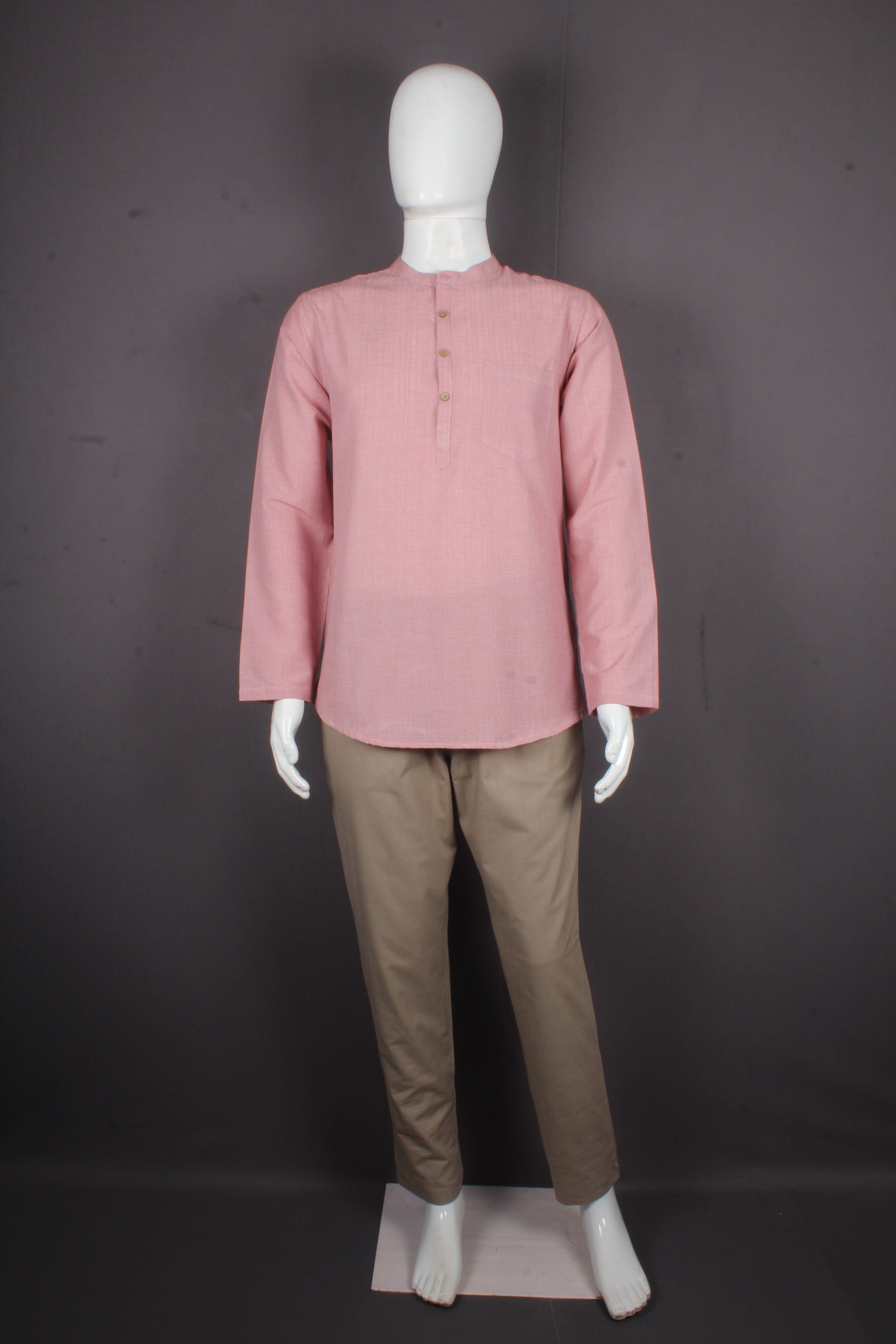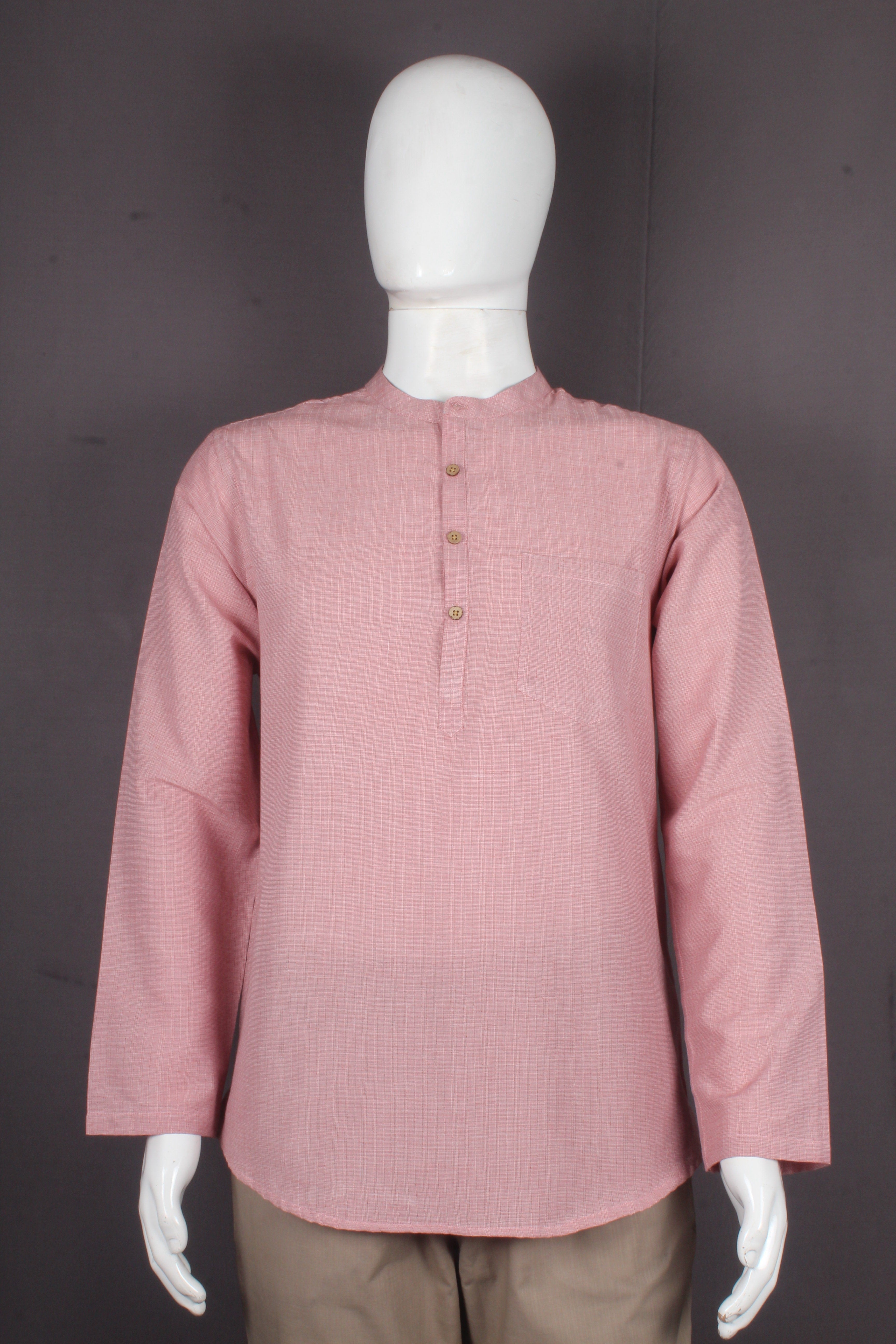Beautiful Light Pink Self Striped Full Sleeves Short Kurta.