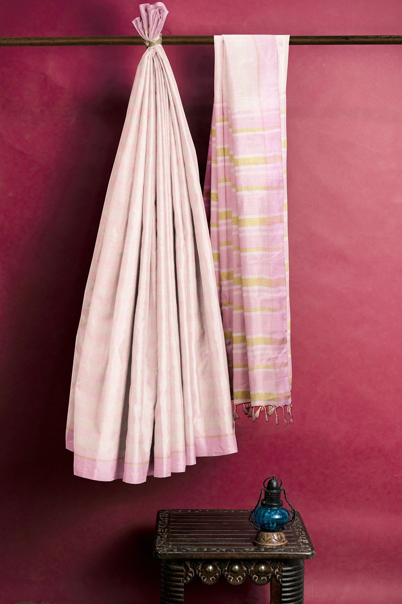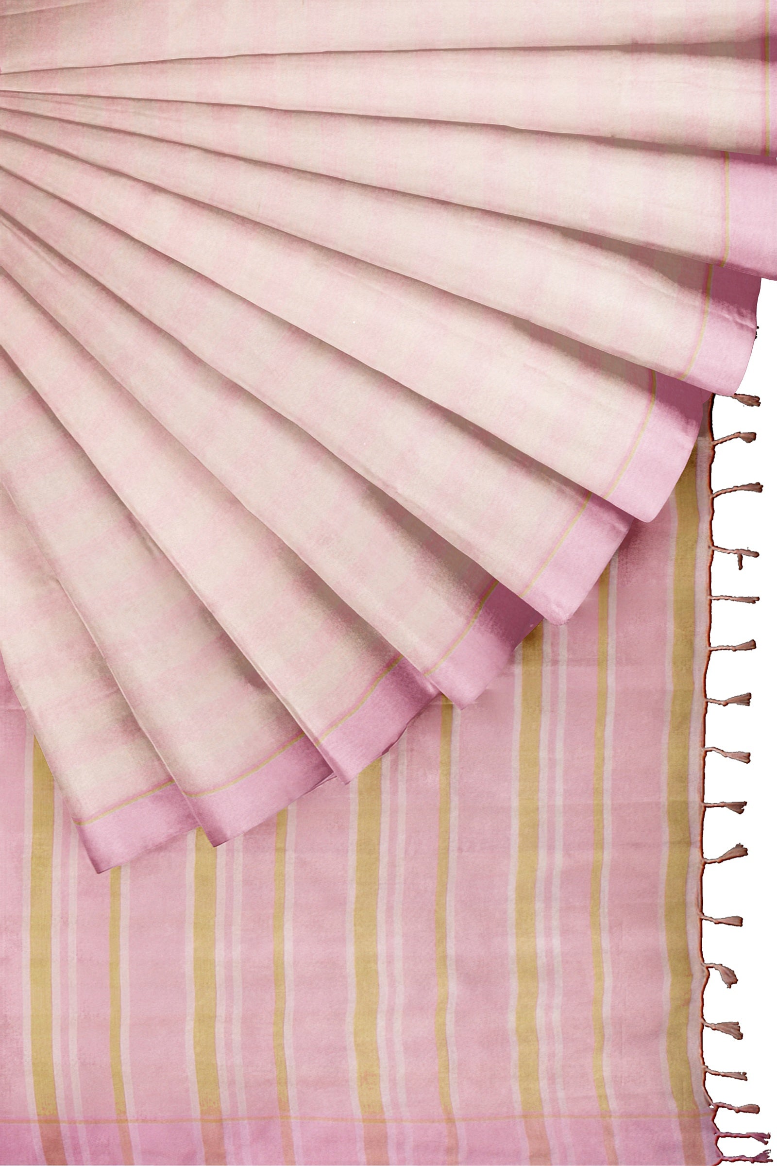 Peach and Pink Striped Saree with Beige and Purple Border