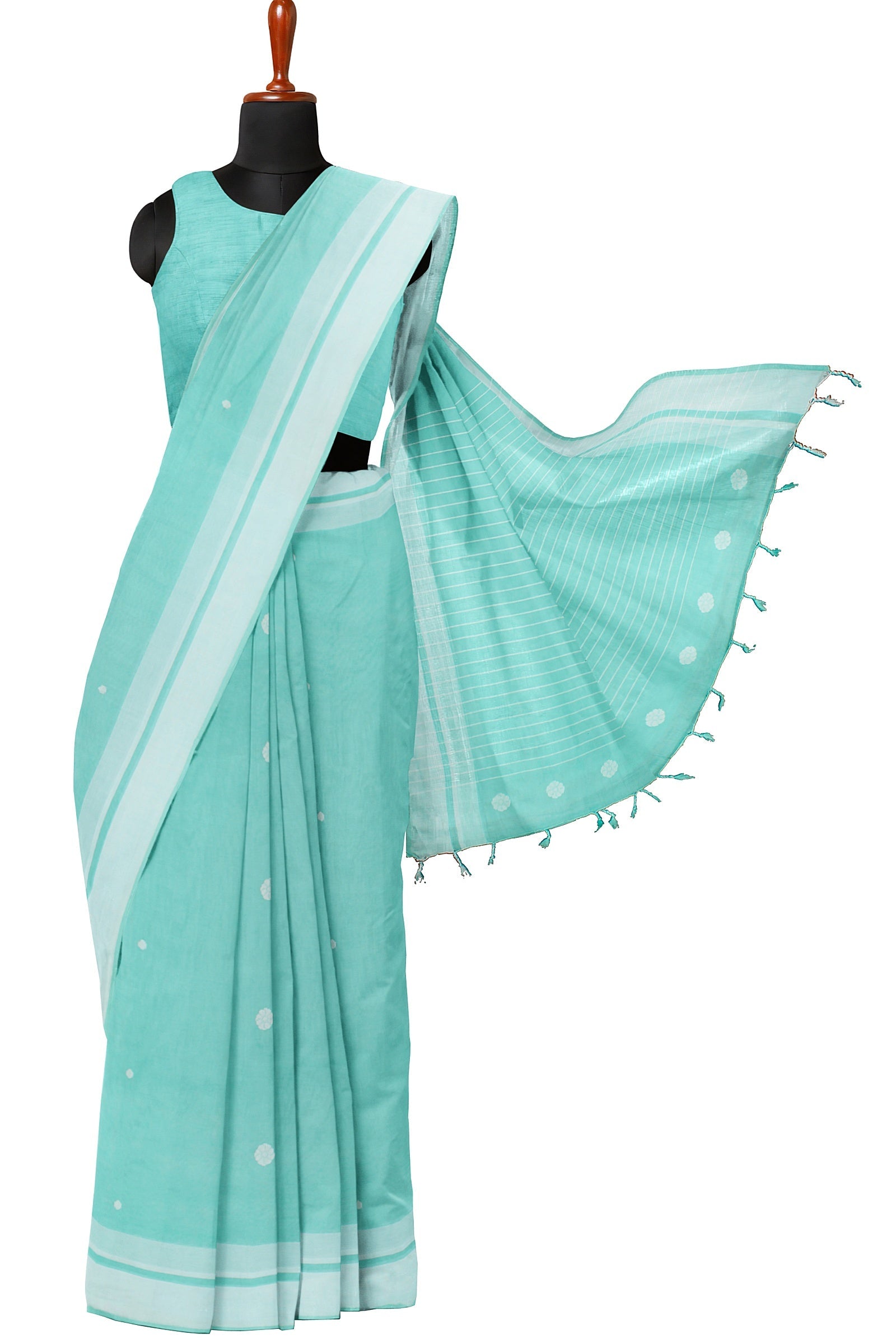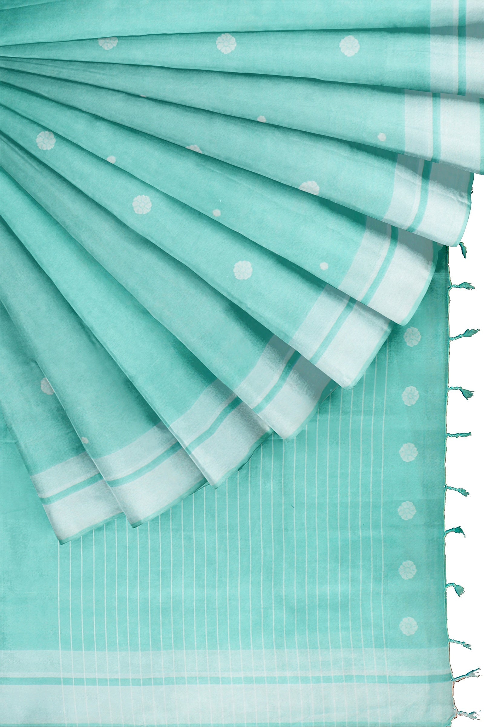 Cyan Saree with White Border and Butis
