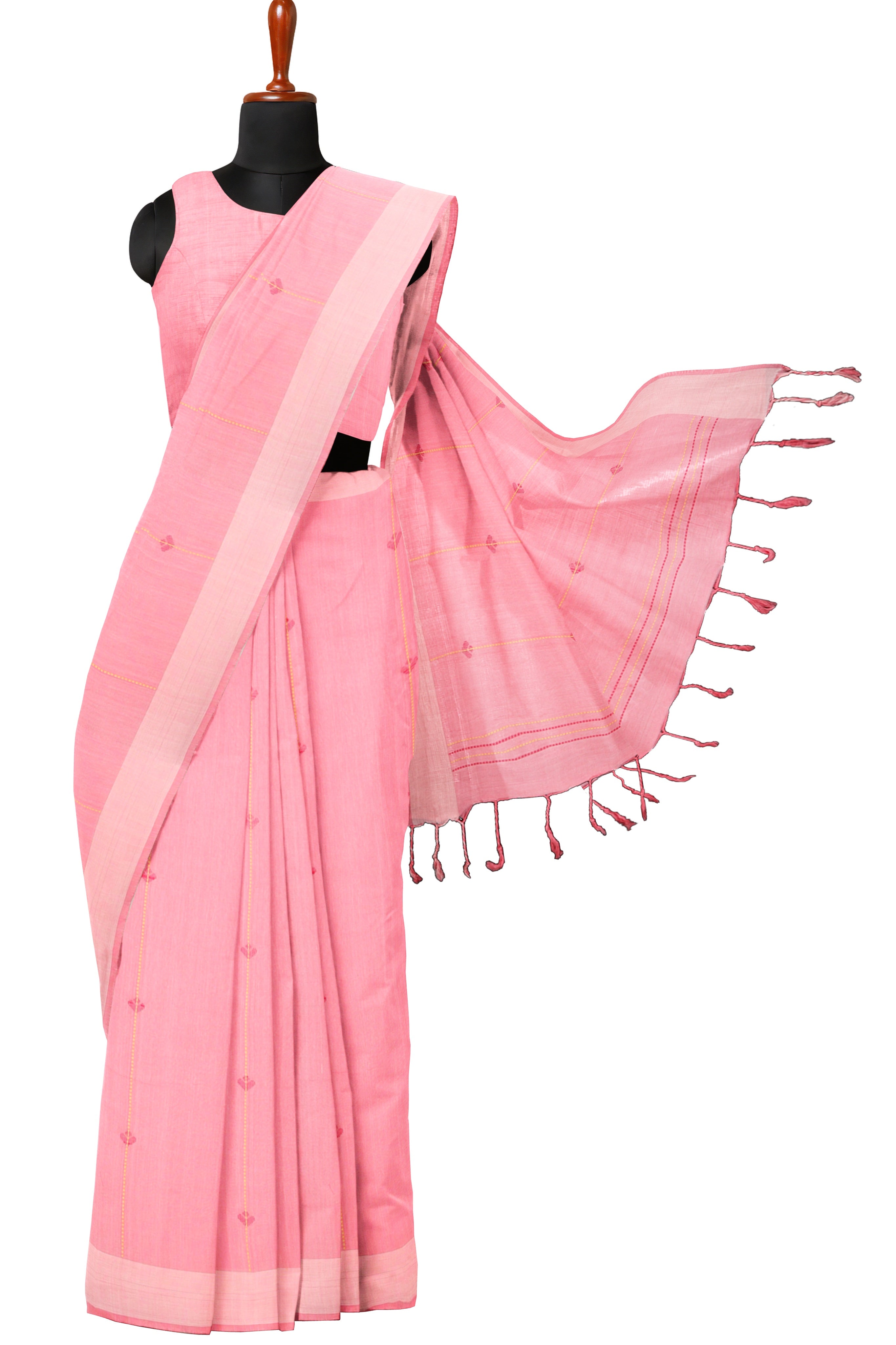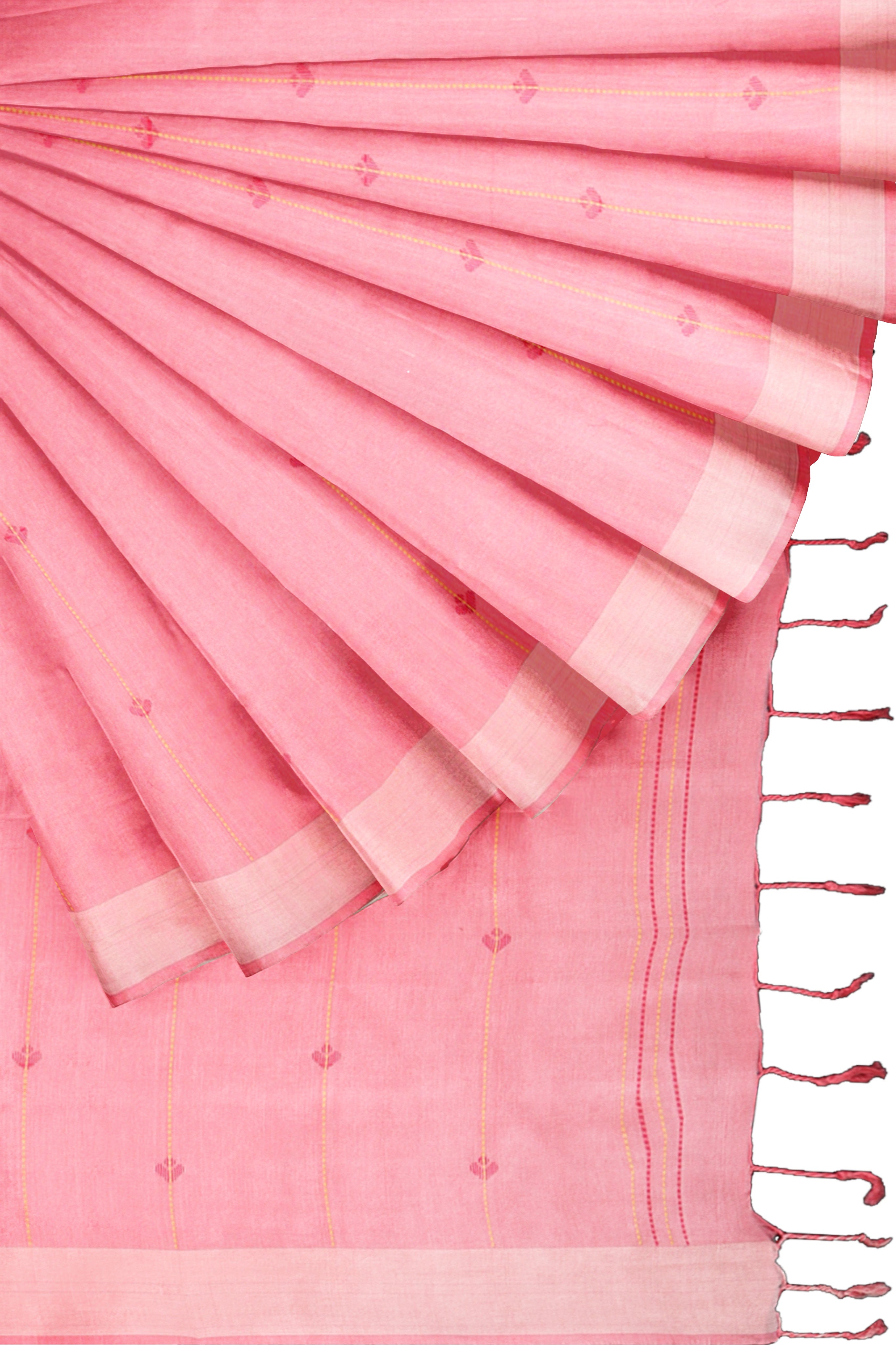 Peach Saree with Buti and Cream Border