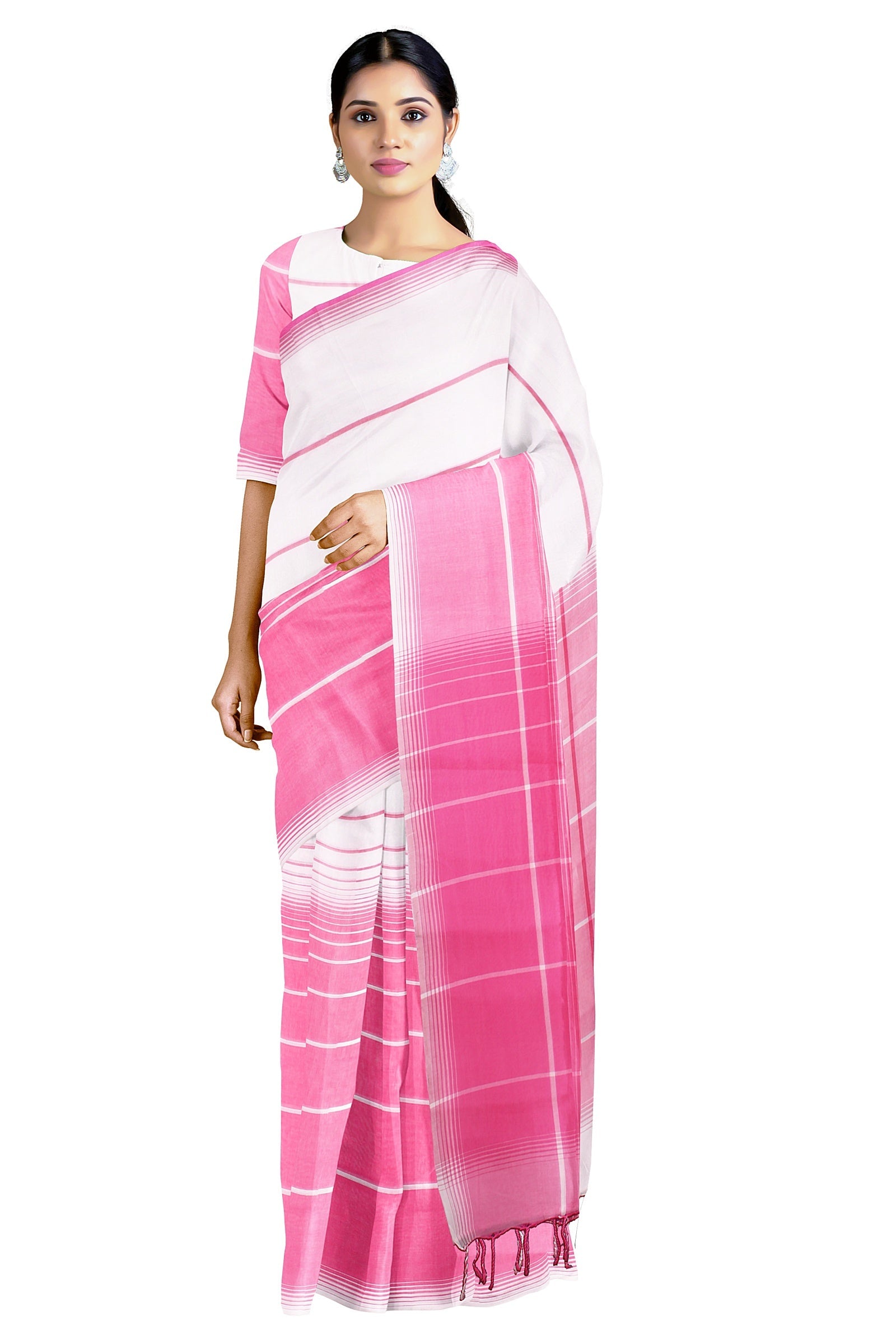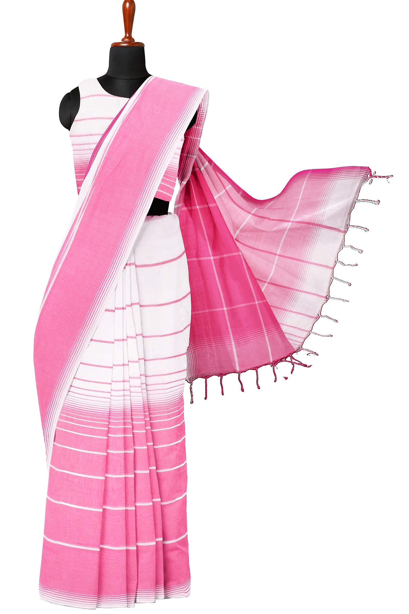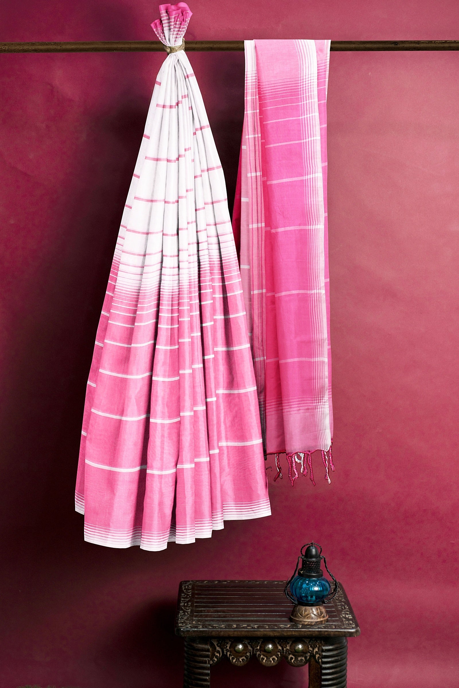 Magenta and White Striped Saree with Same Border