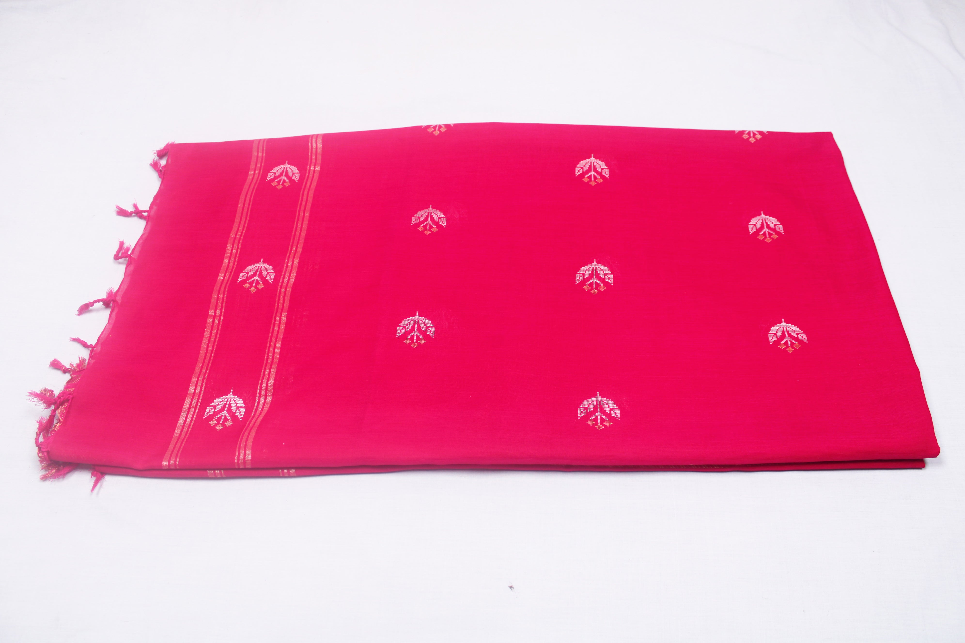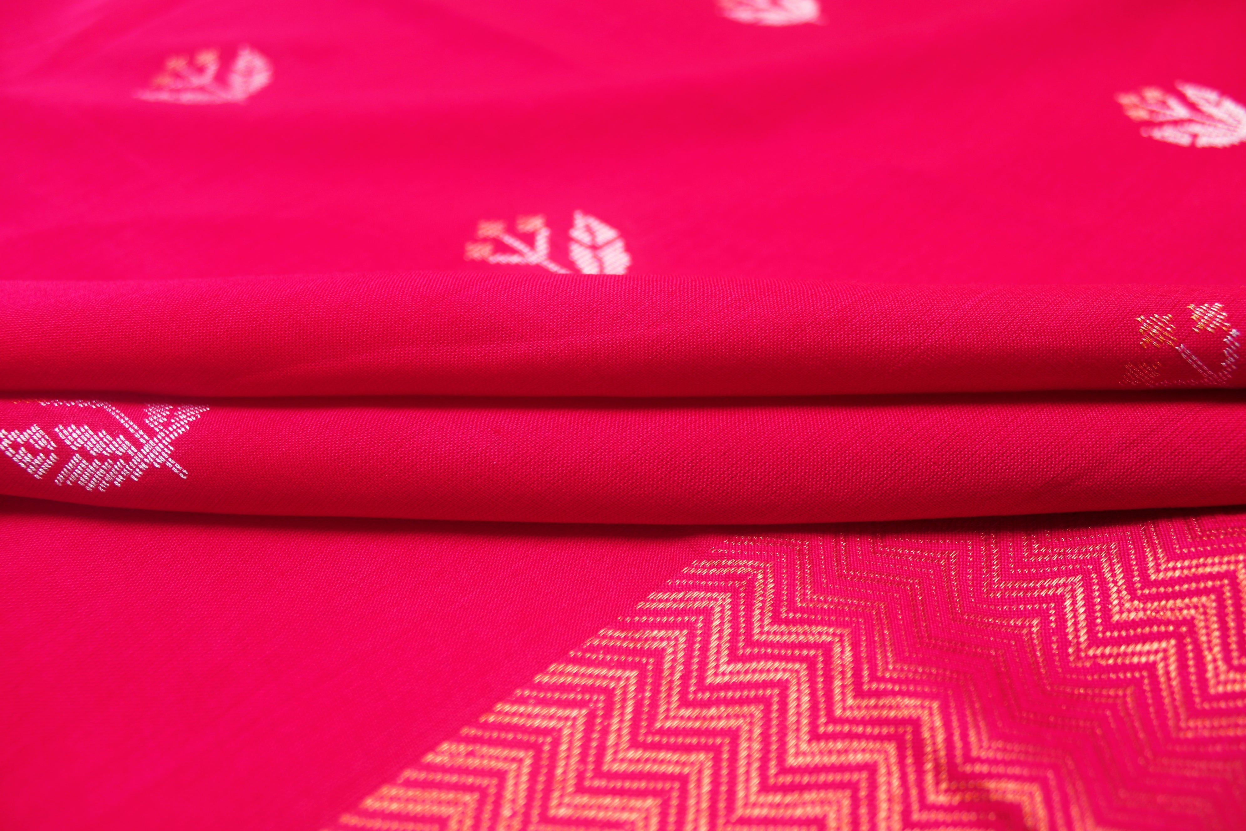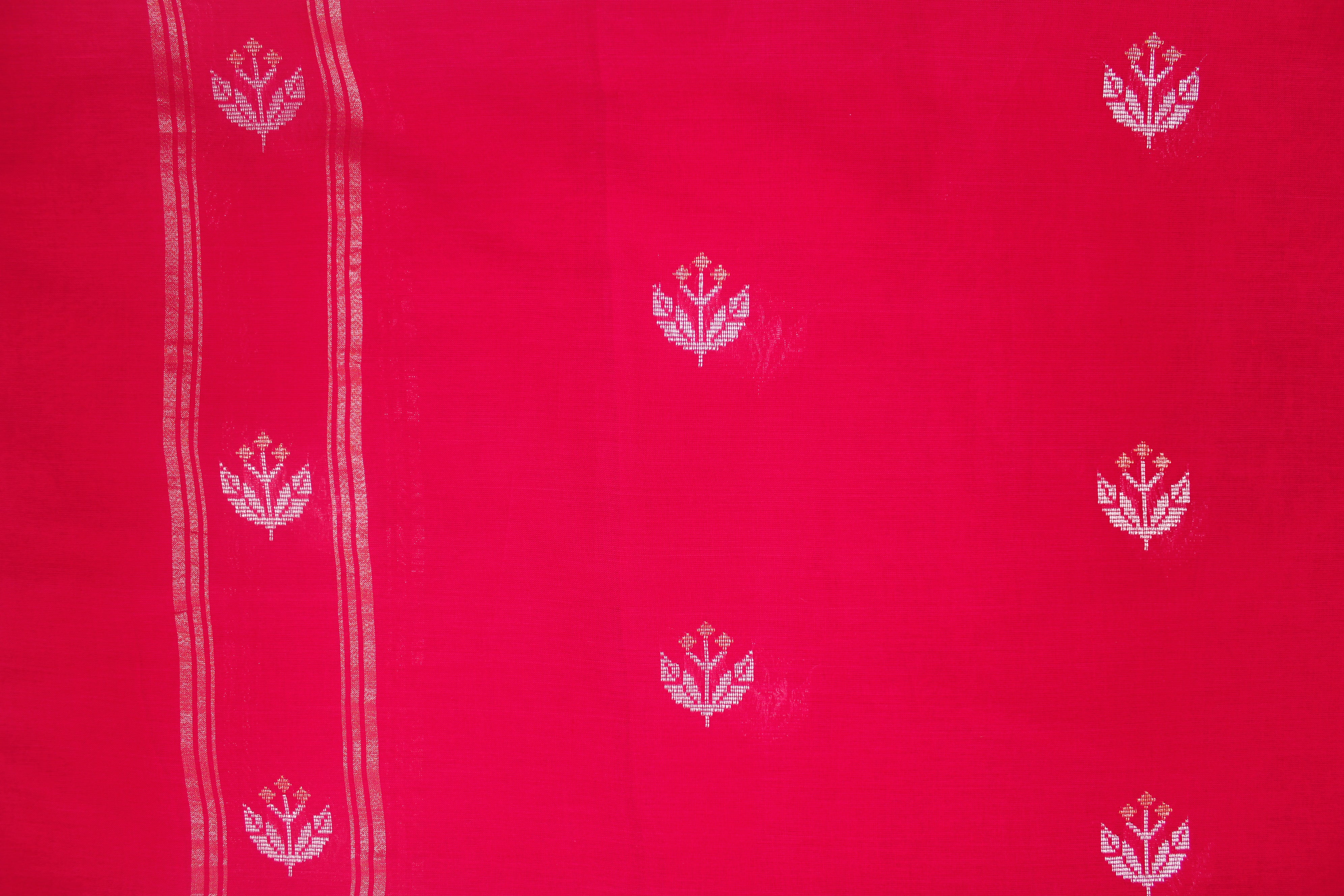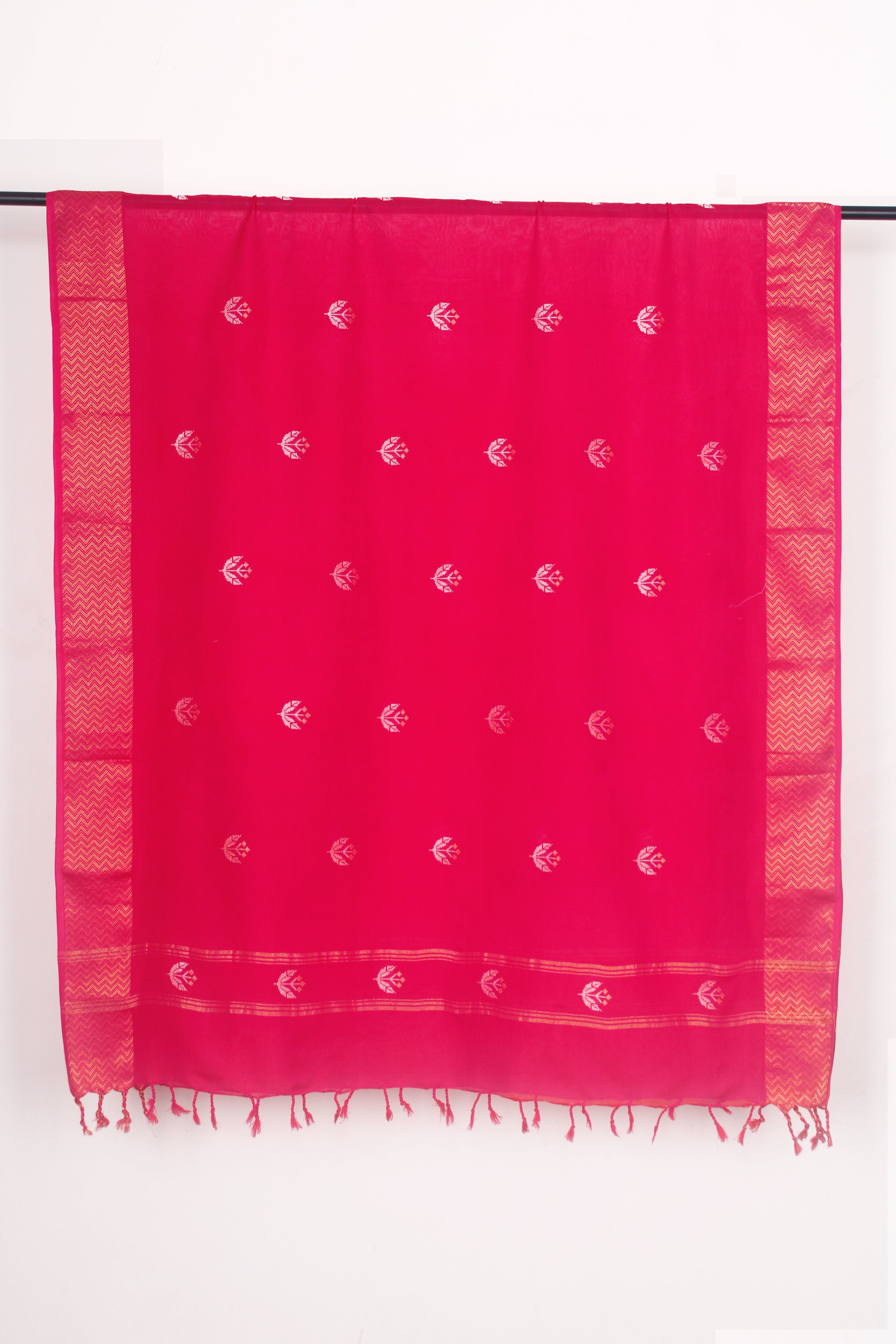 Red Dobby Dupatta with Golden Zari Border and Silver Zari Butis