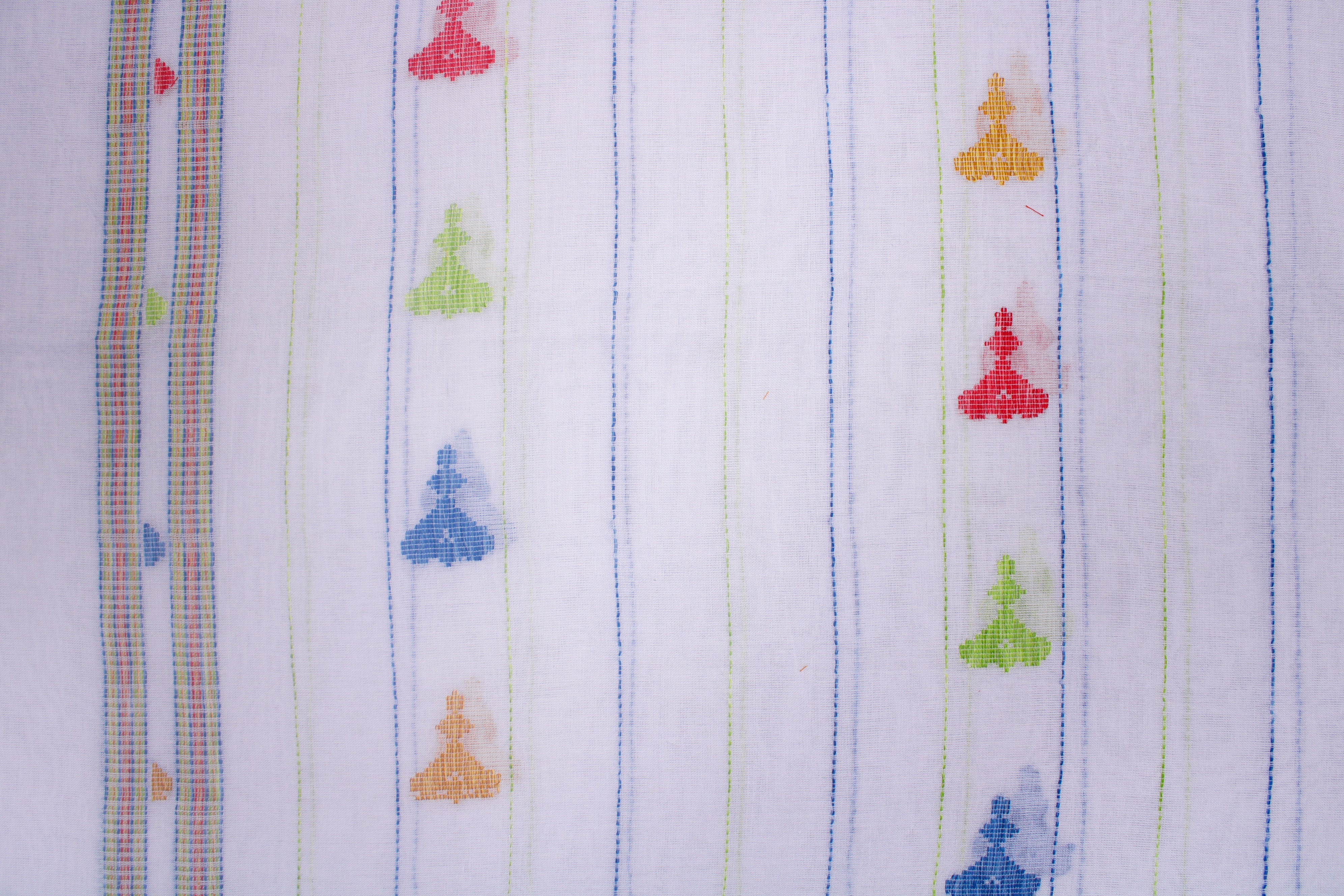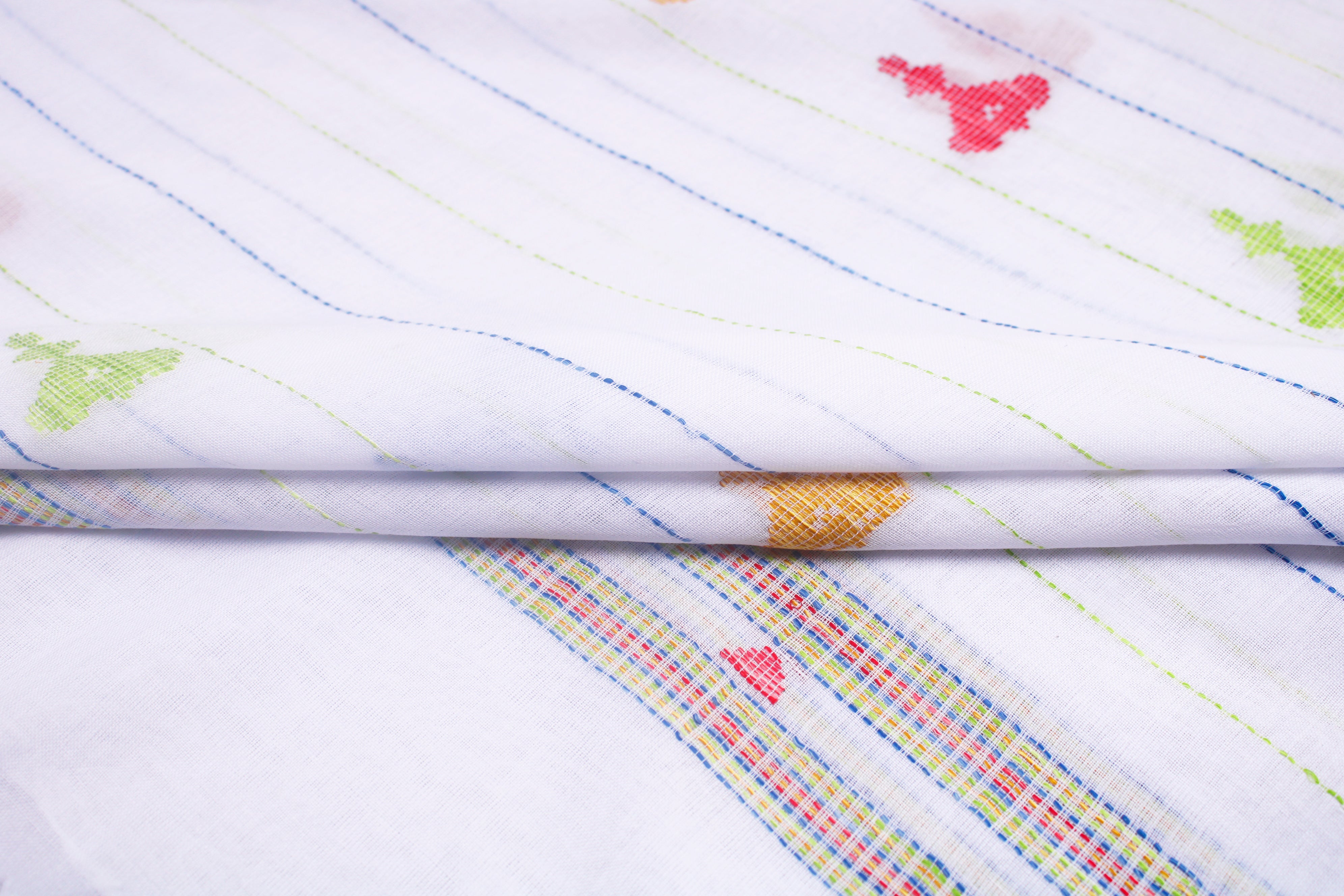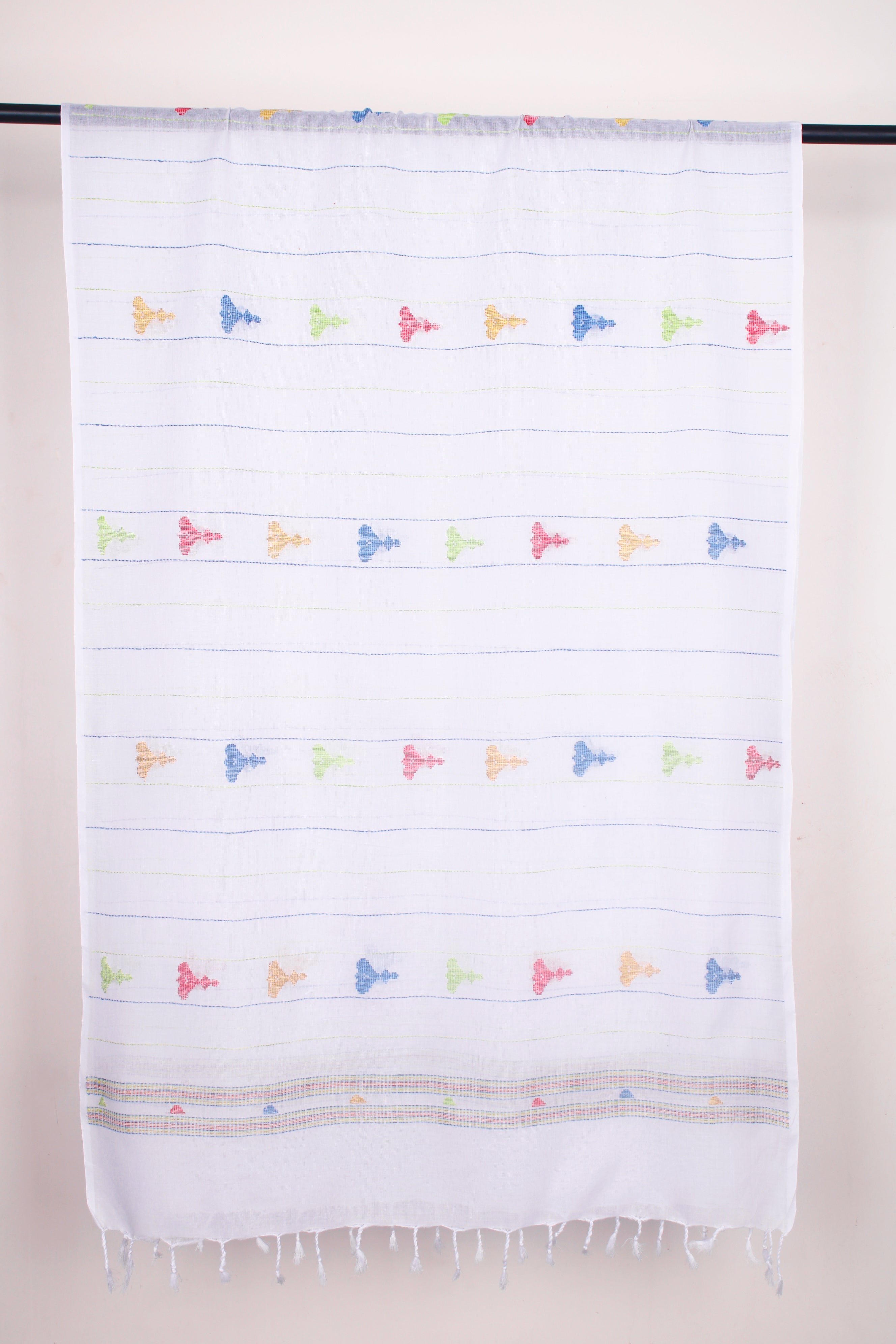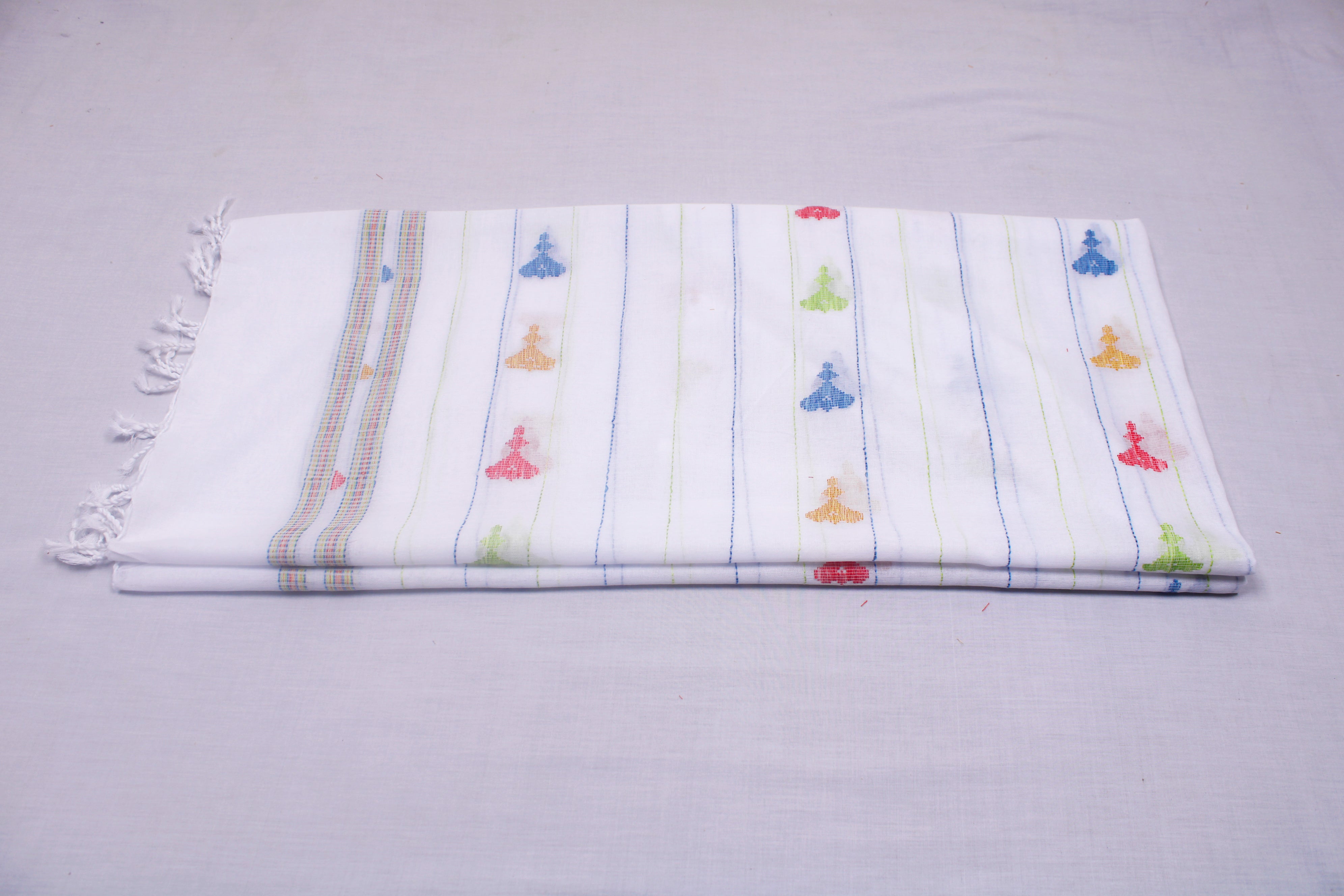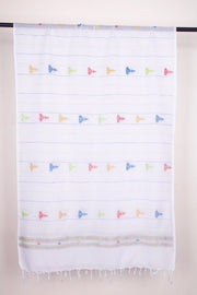 White Stole with Blue and Green Linings and Multi Colour Butis