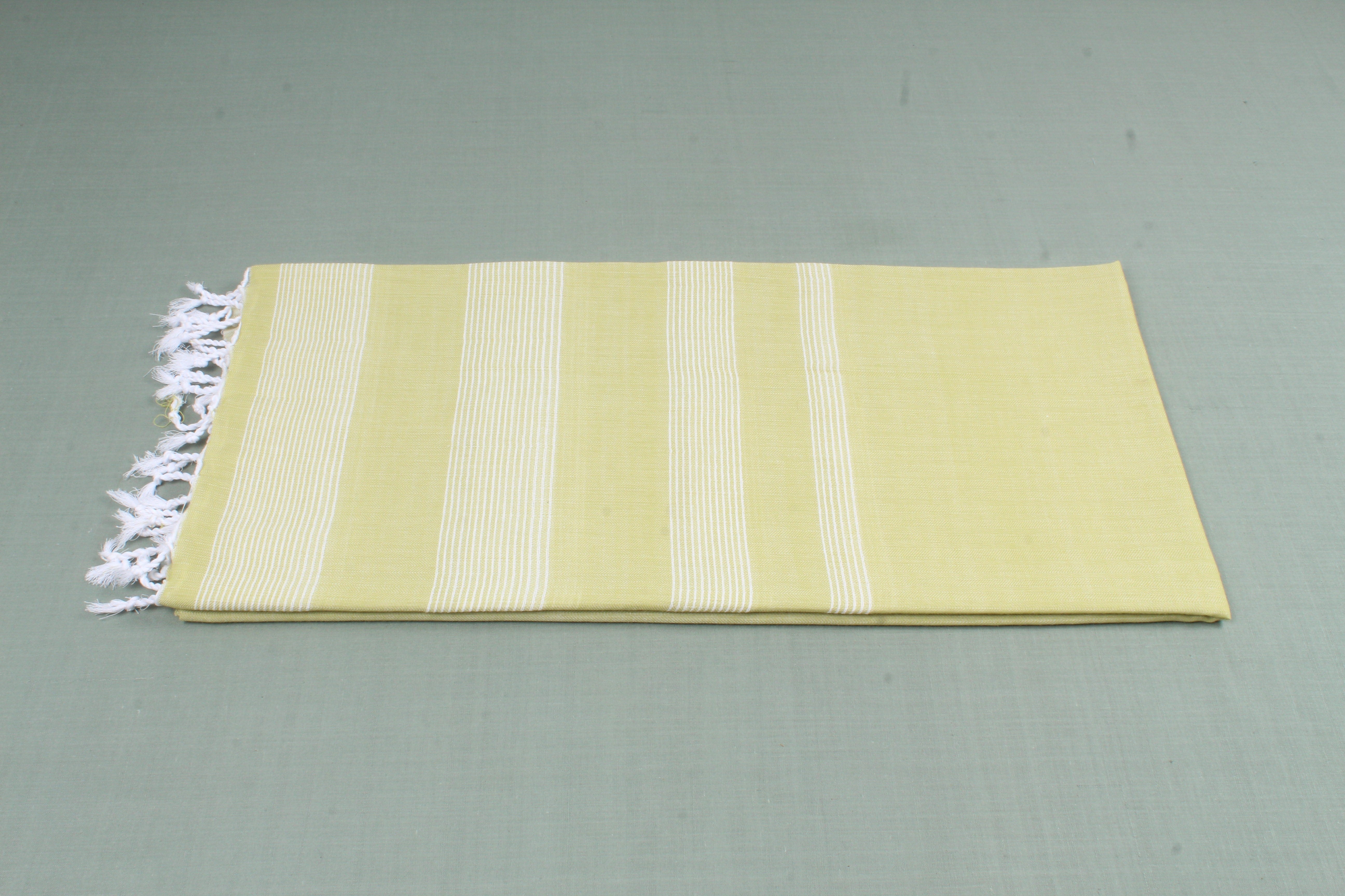 Handwoven Cotton Moss Green Stole with White Striped