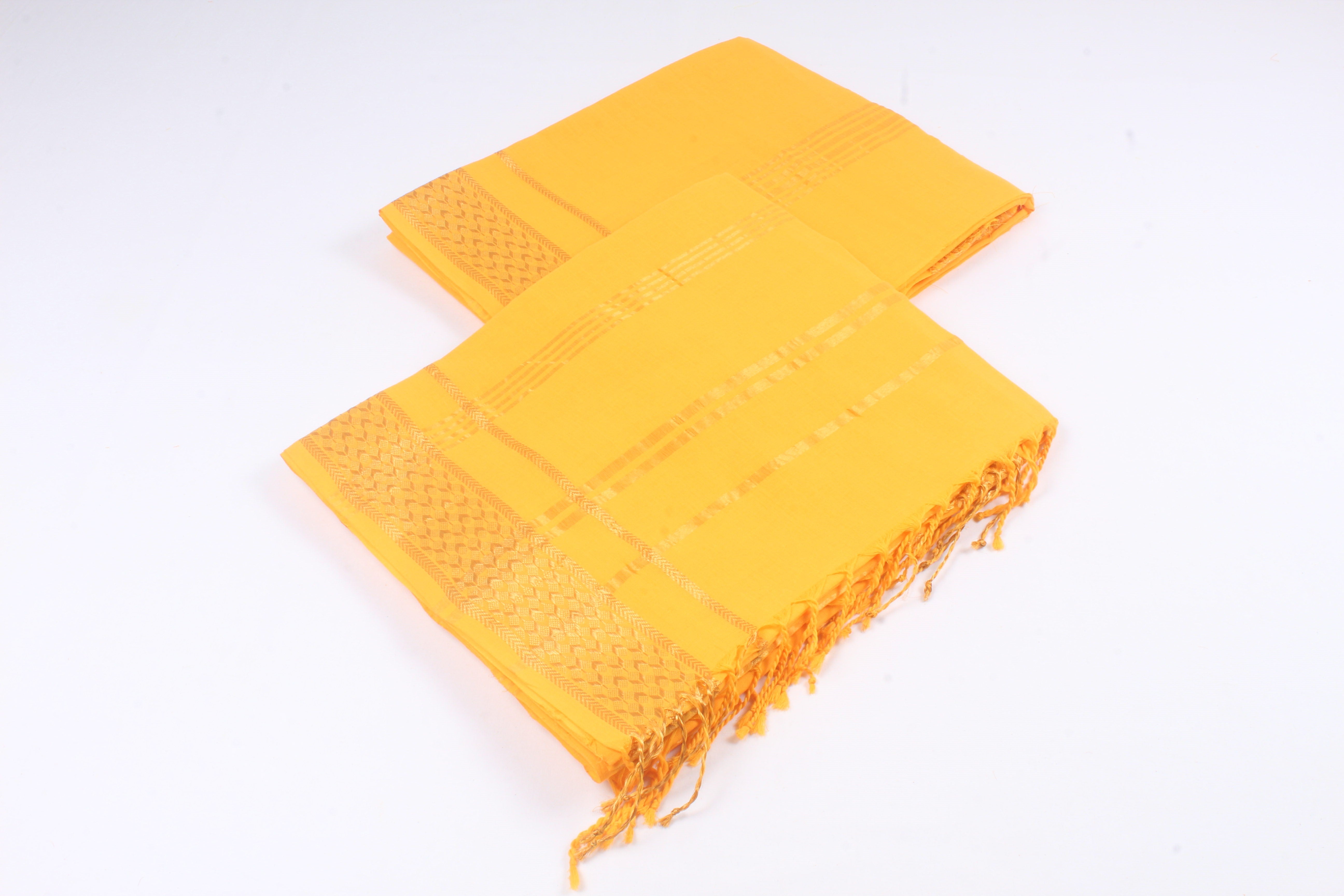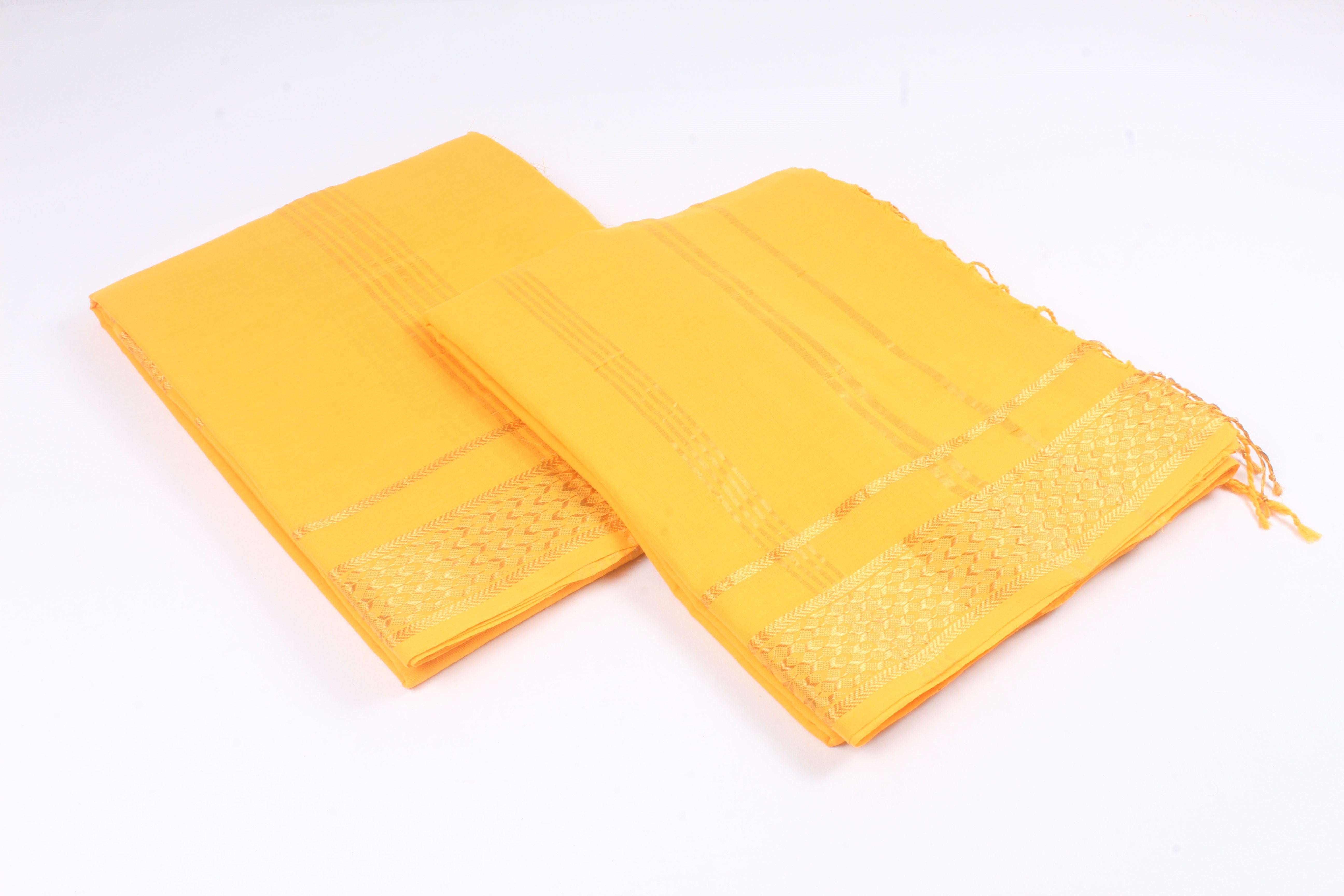 Traditional Handloom Joda Set in Amber Orange with Goldan Zari Dobby Border
