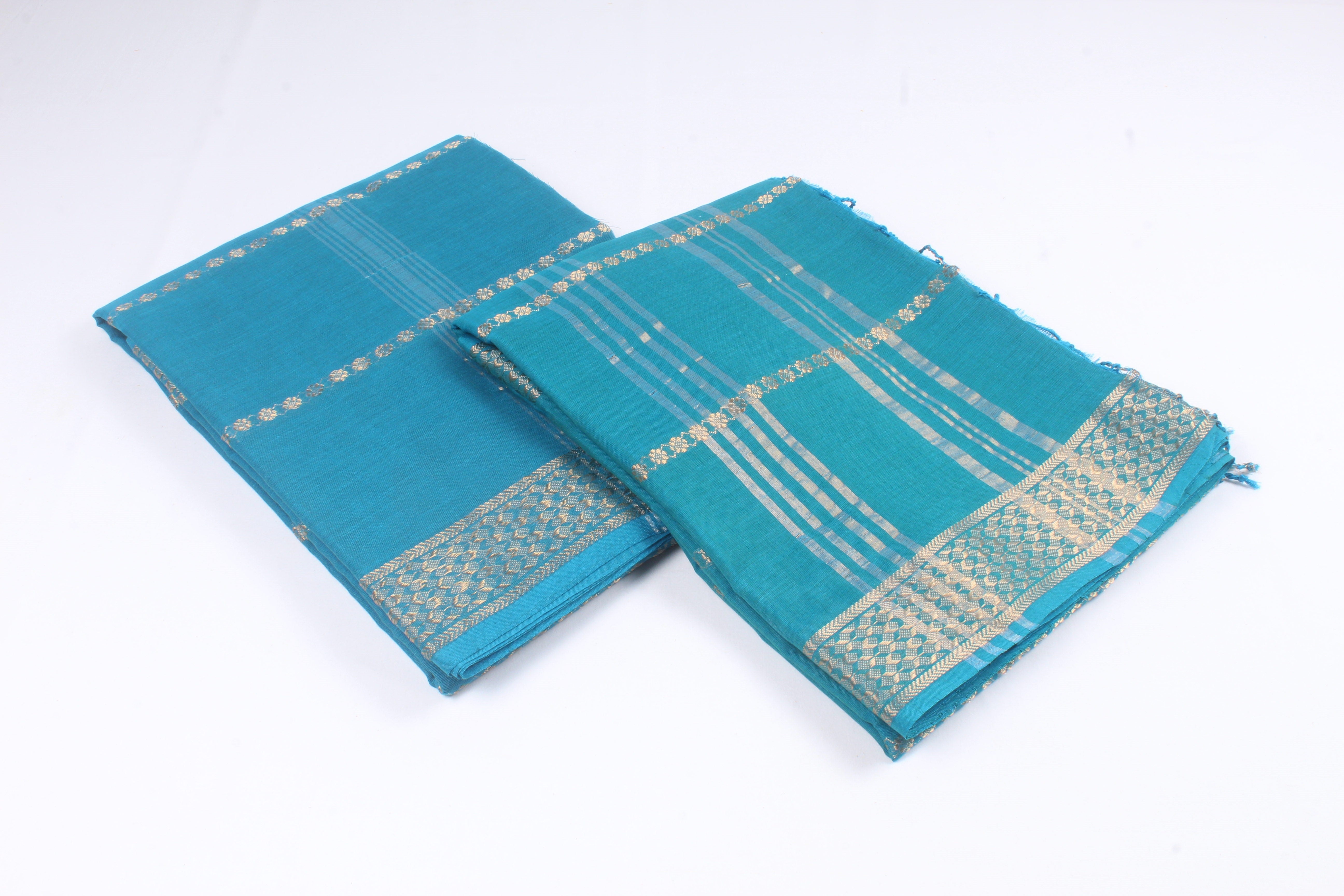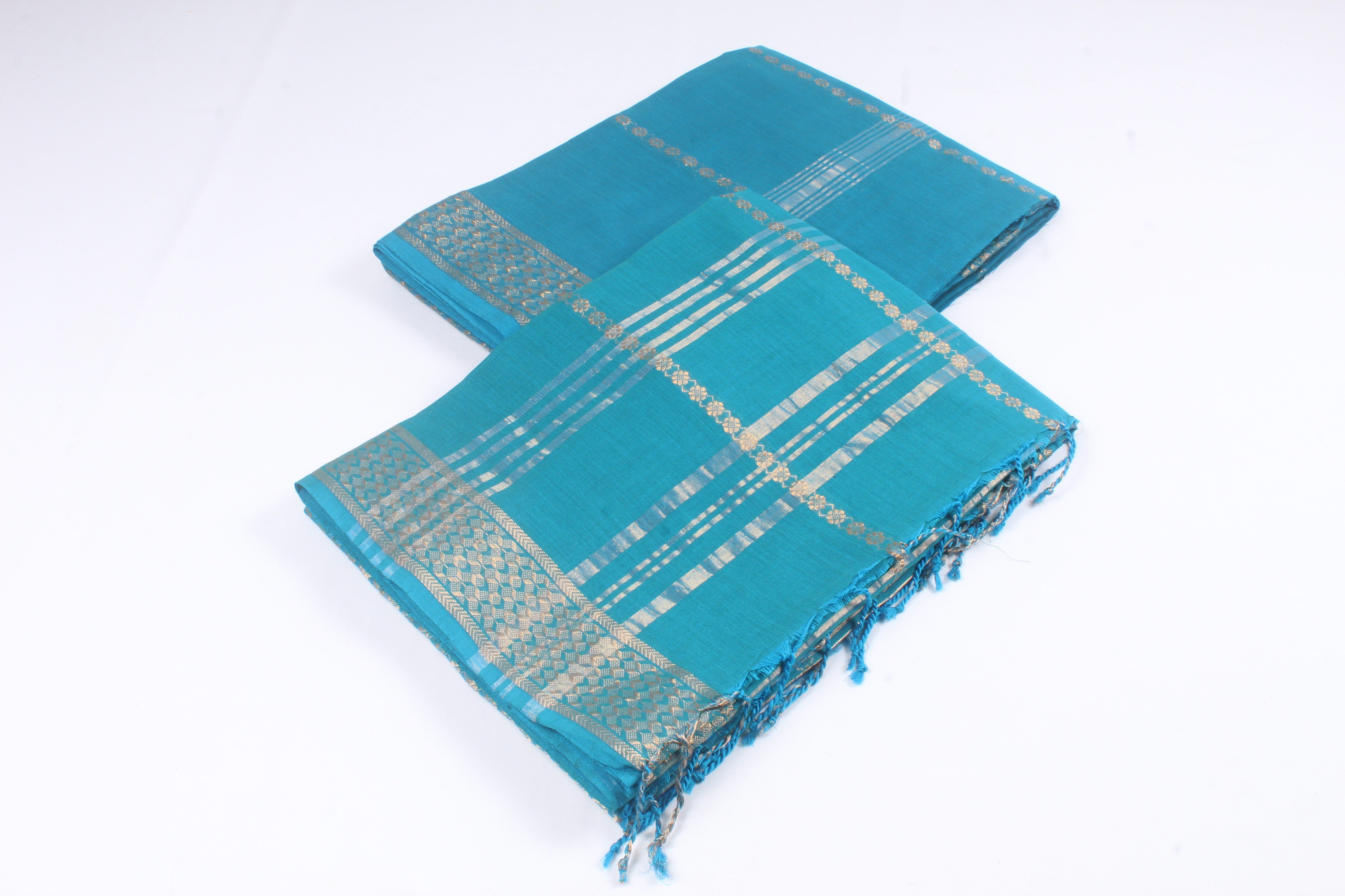 Traditional Handloom Joda Set in Sapphire Blue with Goldan Zari Dobby Border