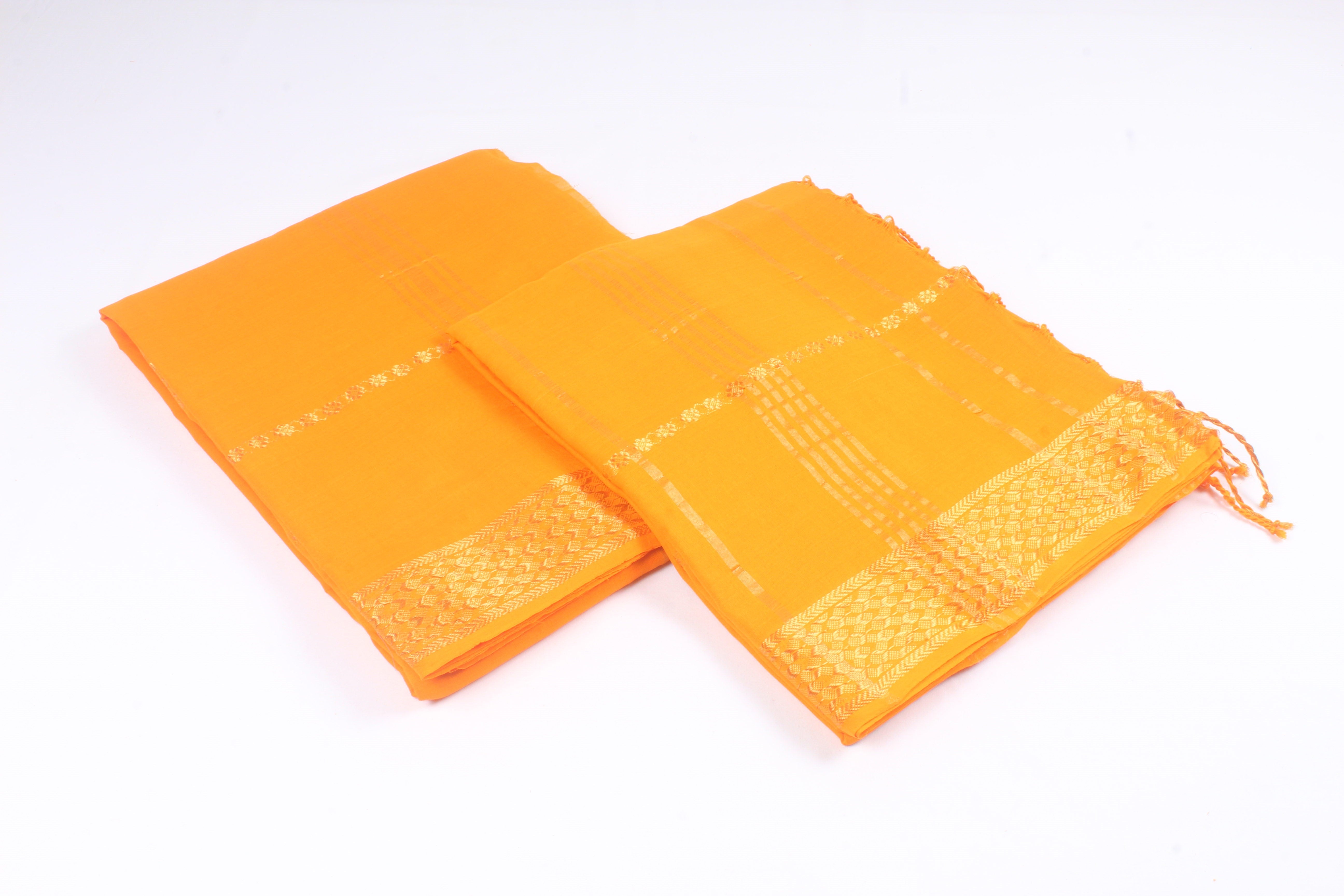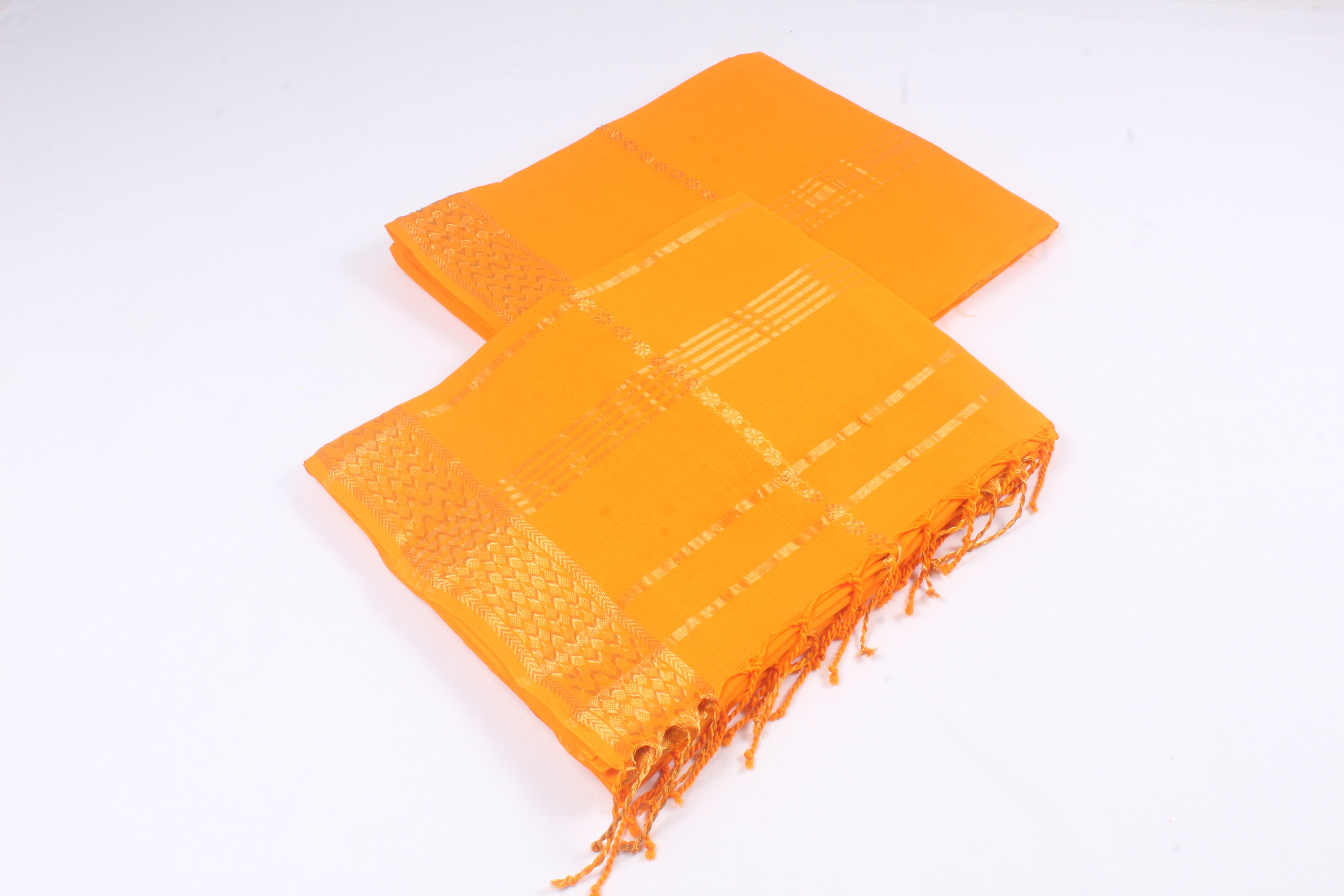 Traditional Handloom Joda Set in Amber Orange with Goldan Zari Dobby Border