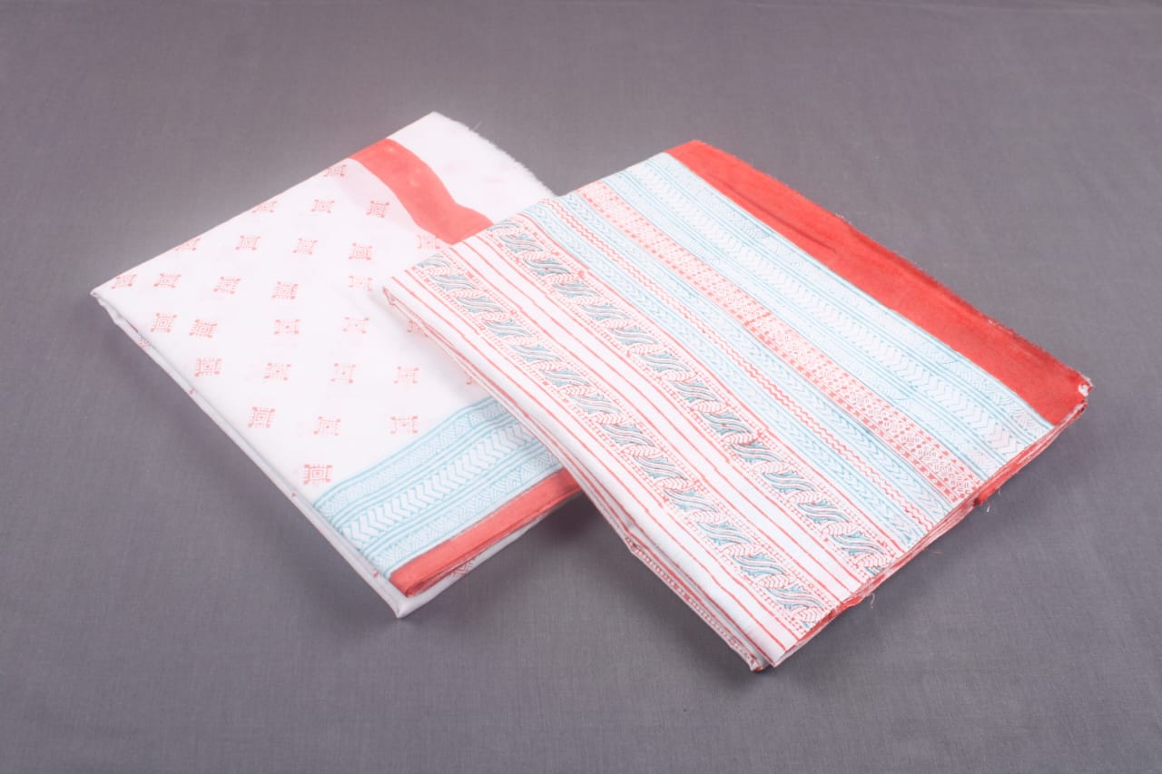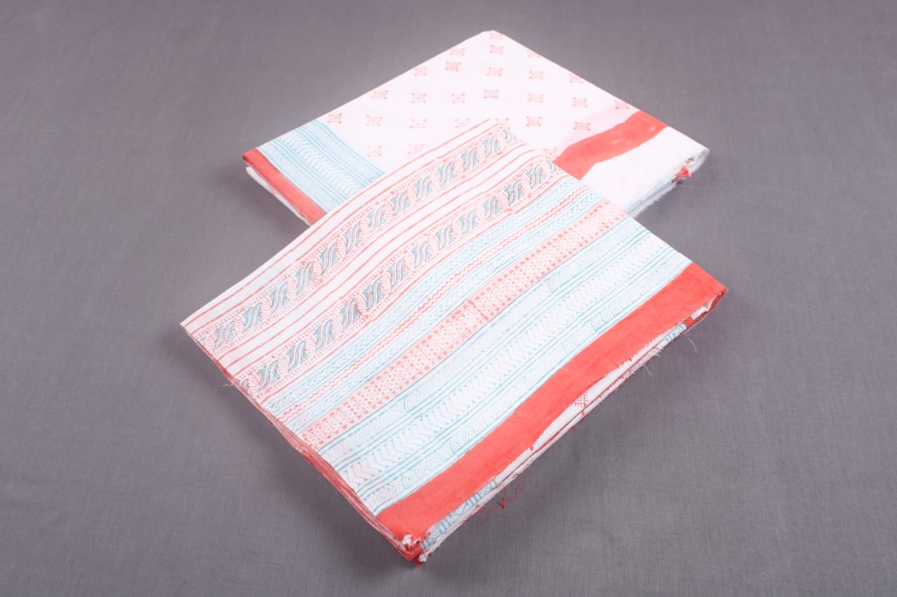 Traditional Handloom Joda Set in White Saganeri Block Printed