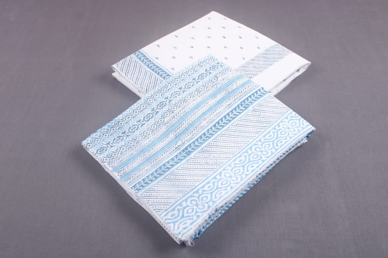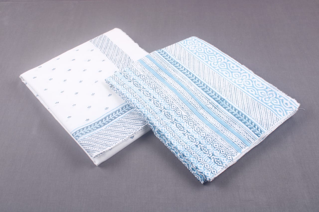 Traditional Handloom Joda Set in White Saganeri Block Printed