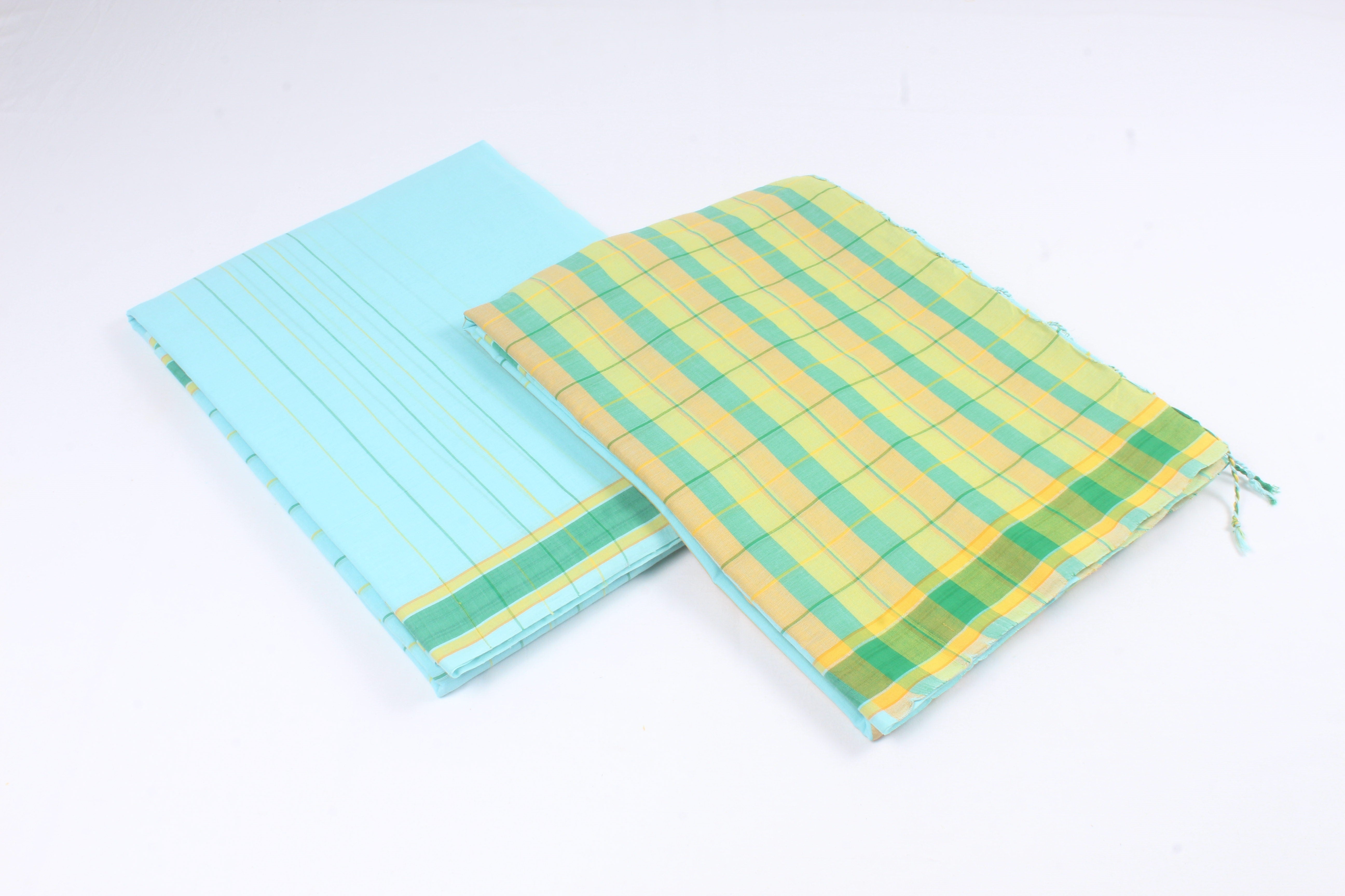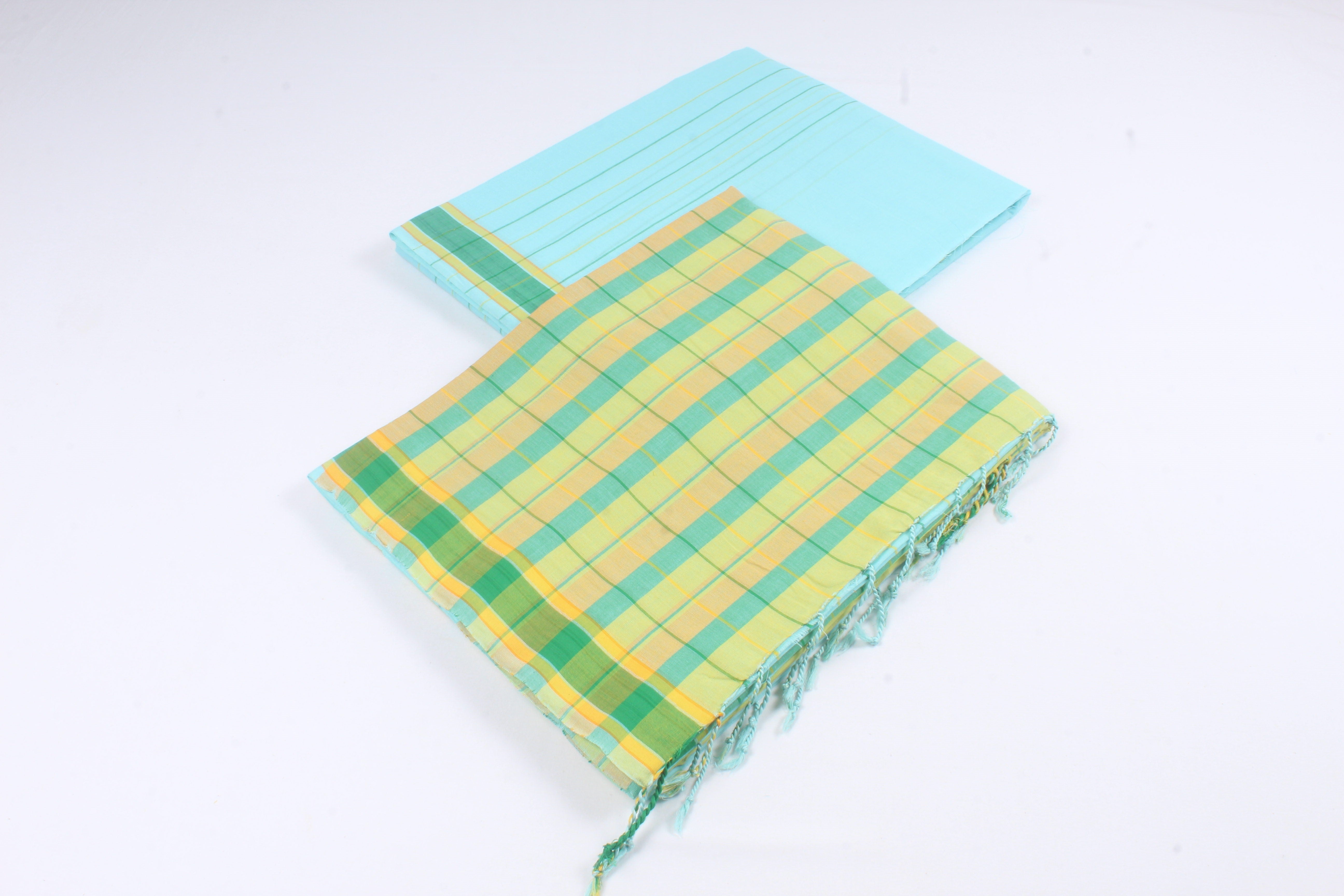 Traditional Handloom Joda Set in Sea Blue with Green and Yellow Border