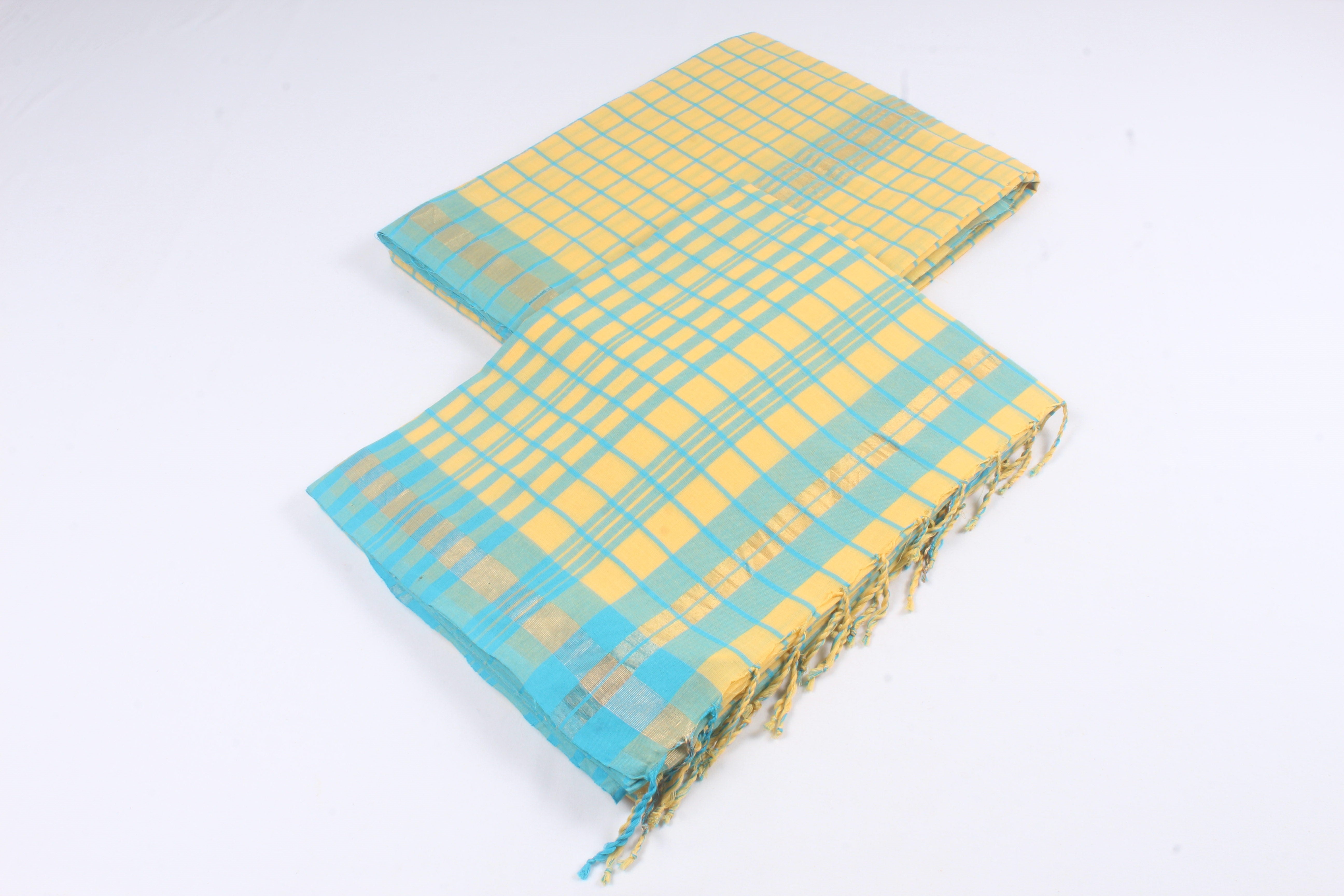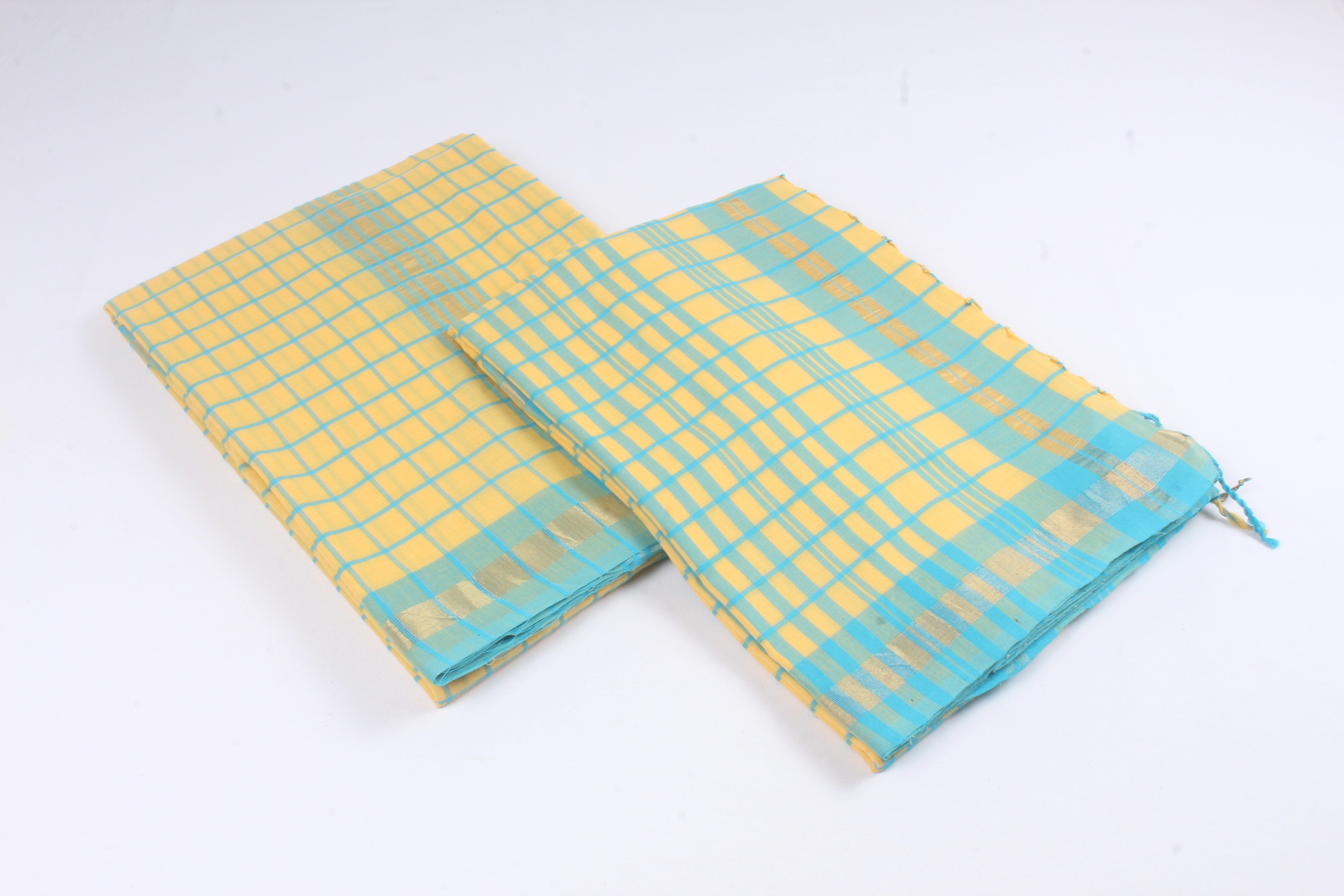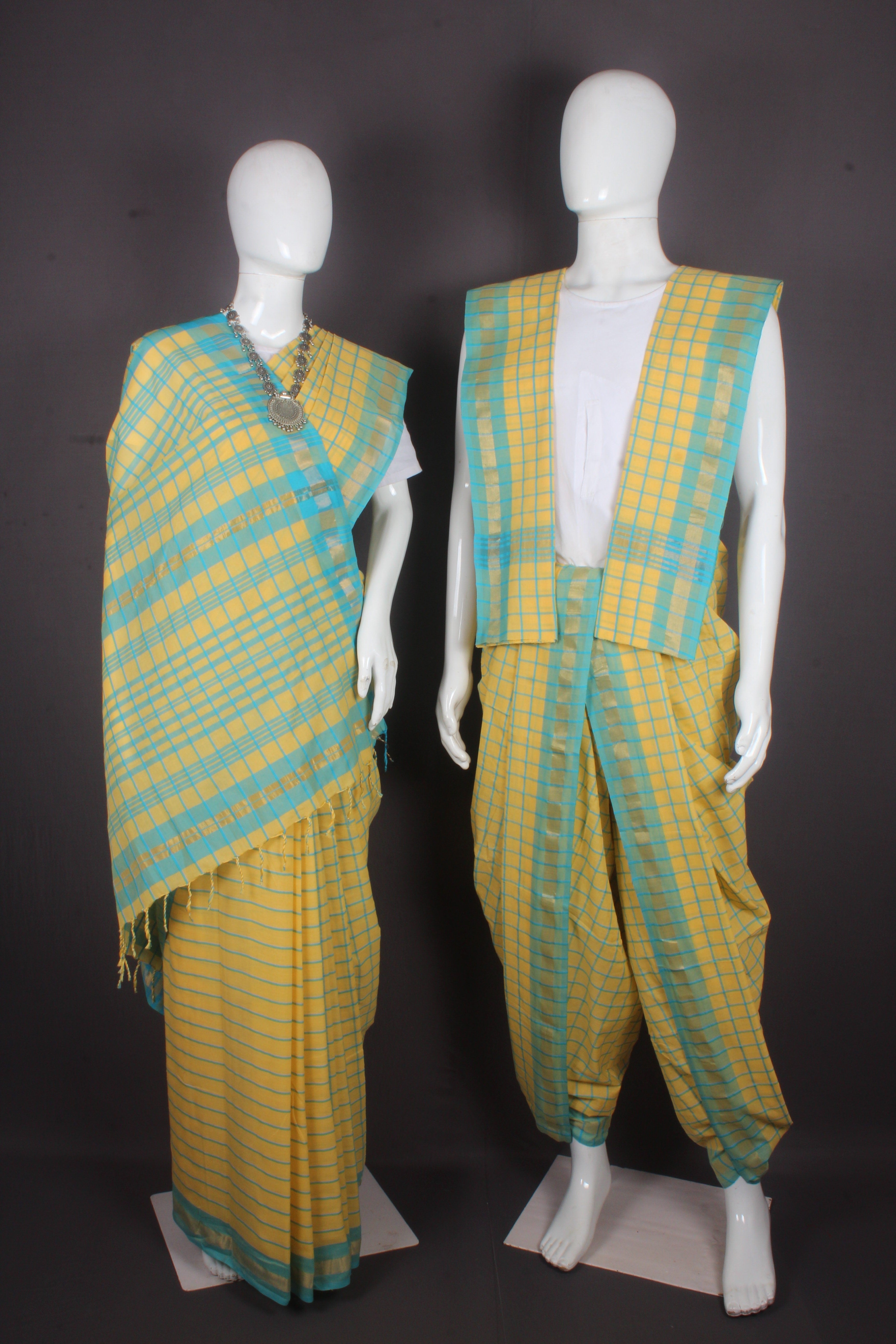 Traditional Handloom Joda Set in Yellow Check with Goldan Zari Border