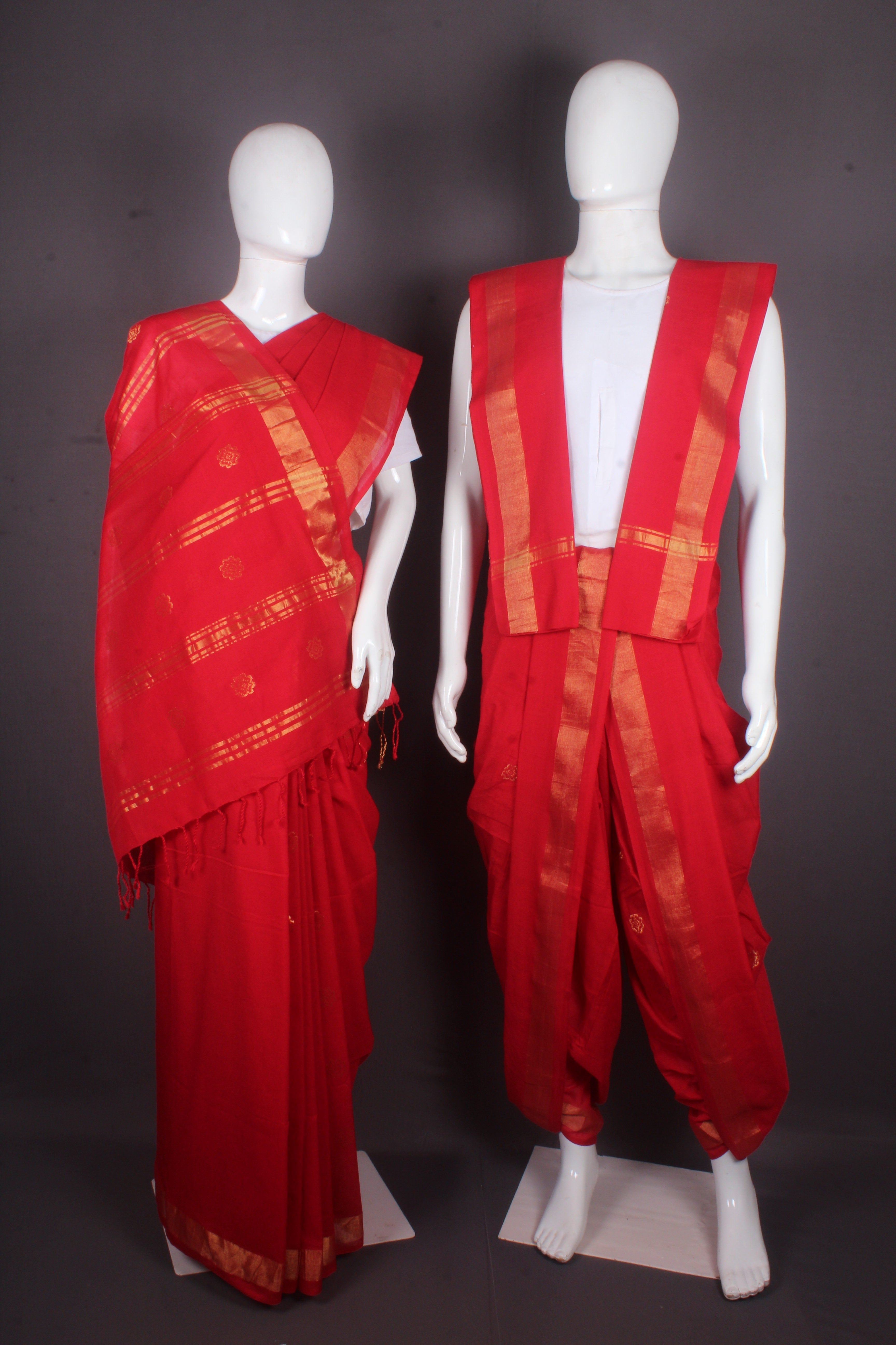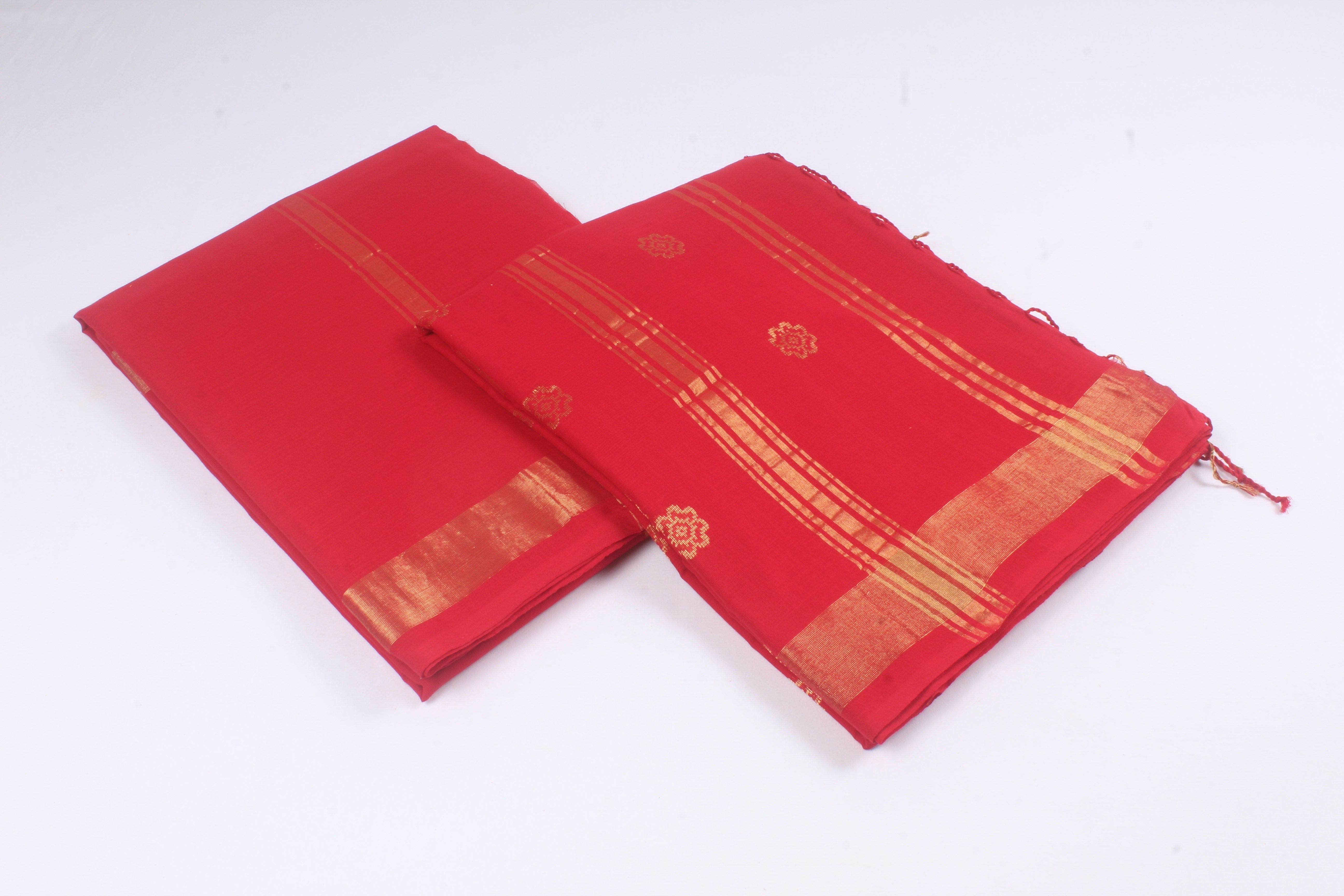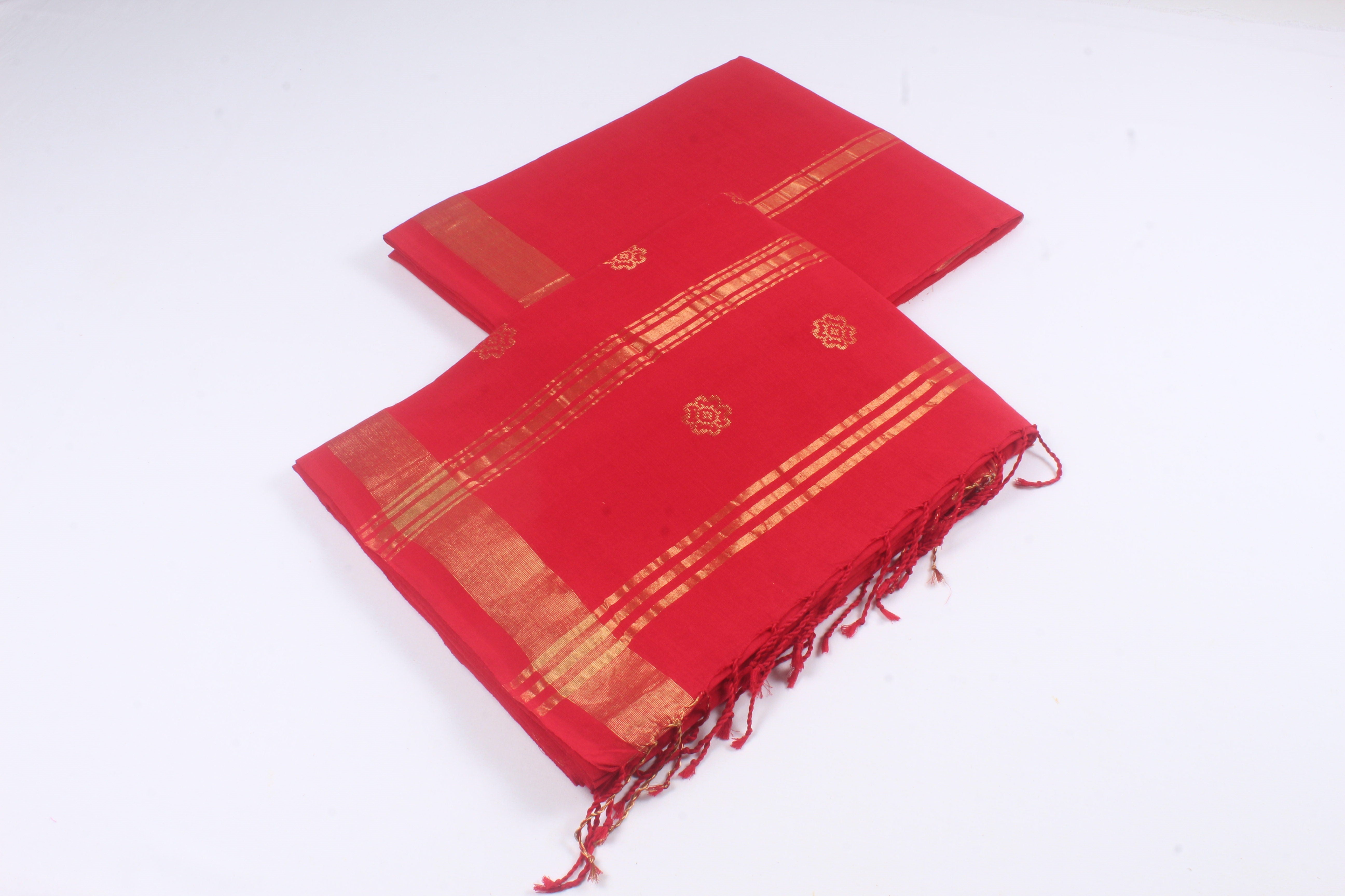 Traditional Handloom Joda Set in Red with Butis and Goldan Zari Border