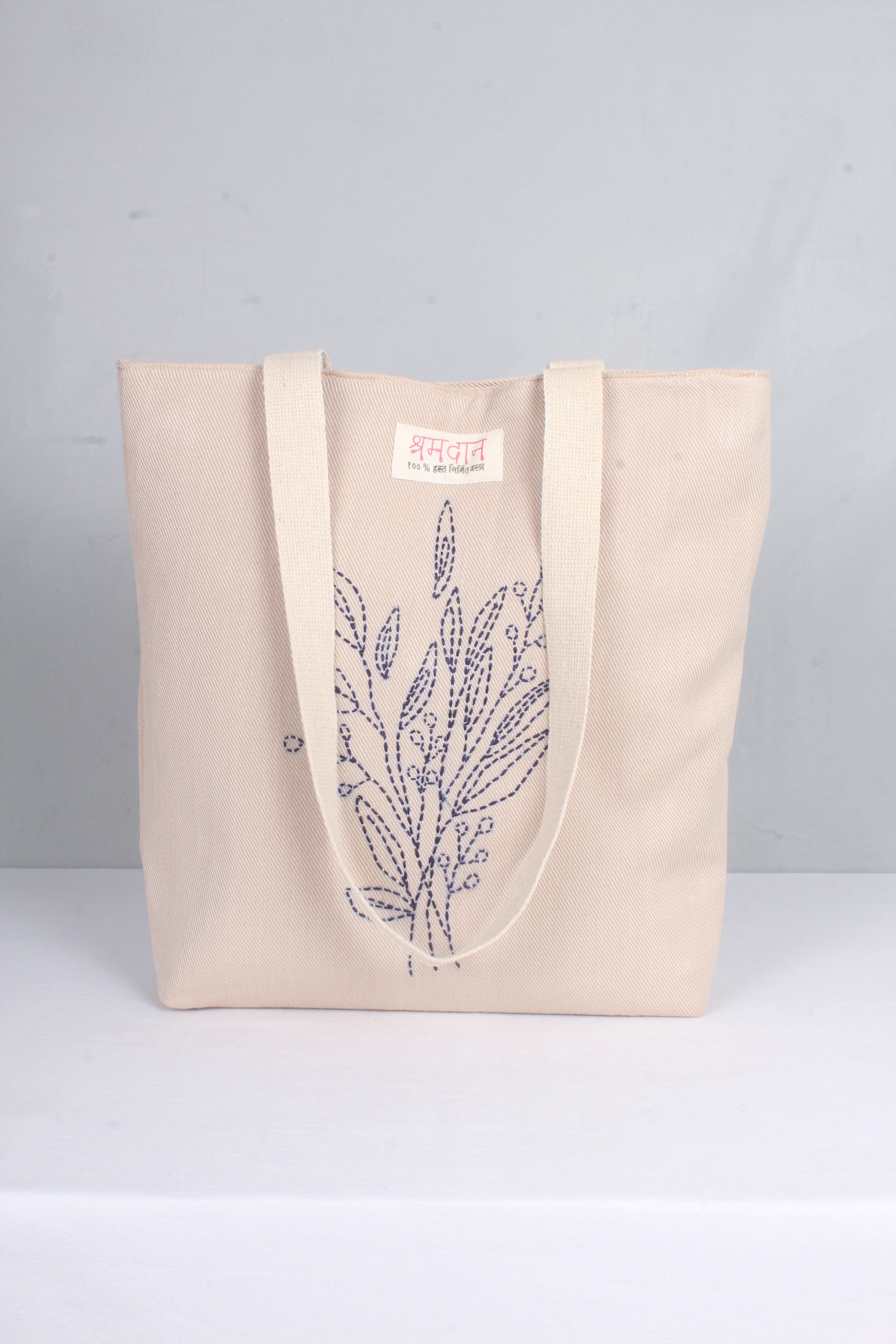 Pink Hand Embroidery Tote Bag