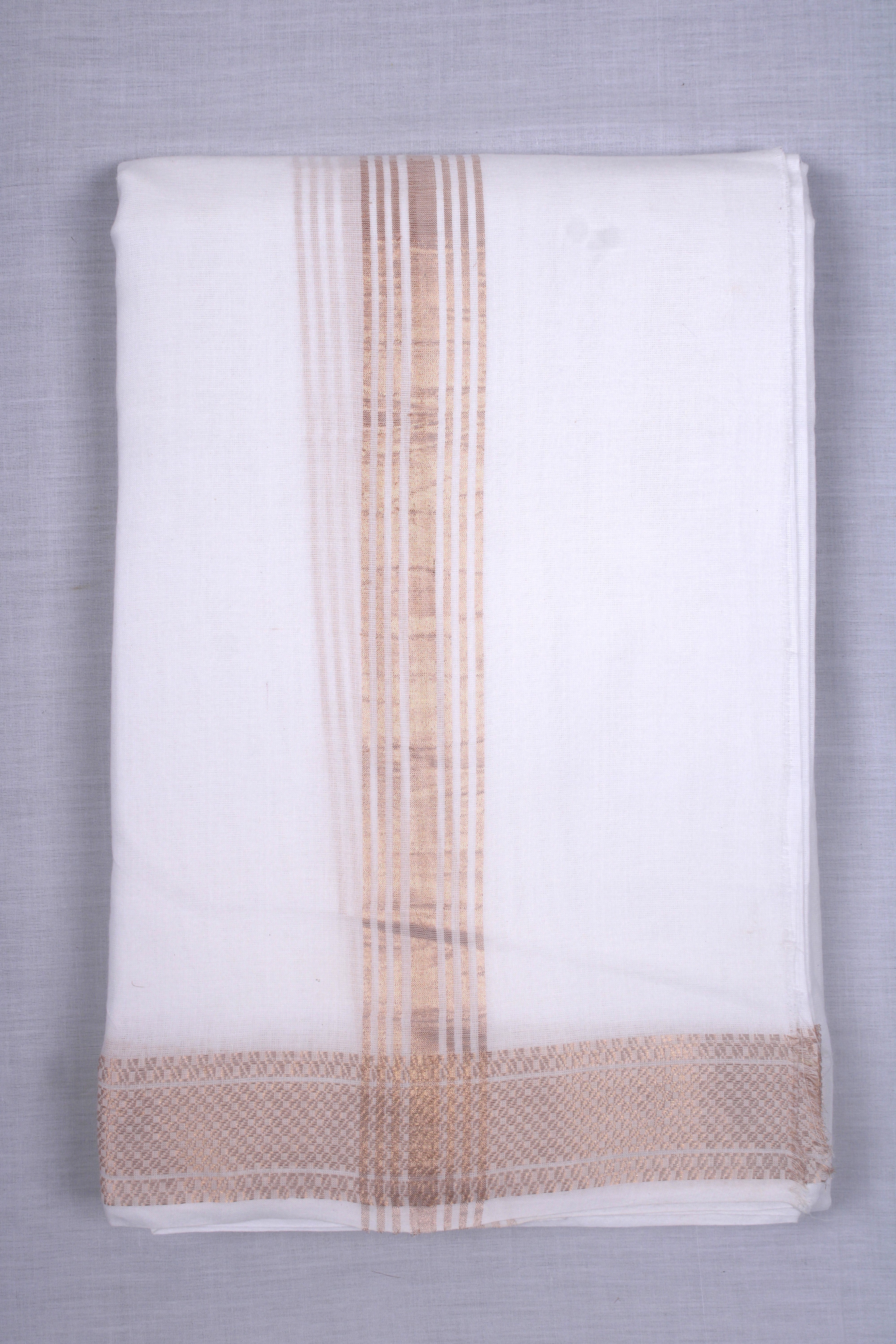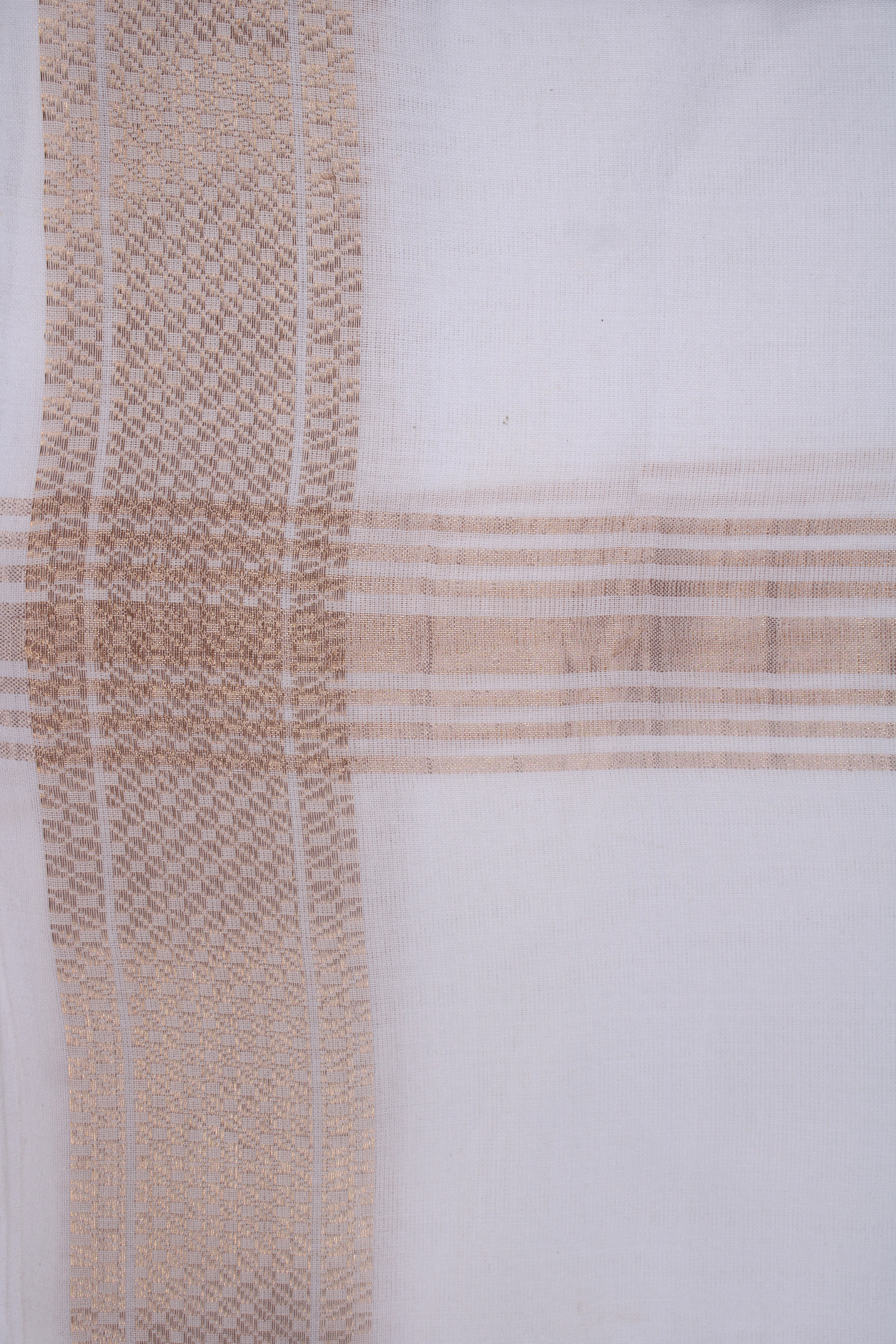 White Dobby Dhoti Dupatta with Golden Zari Border