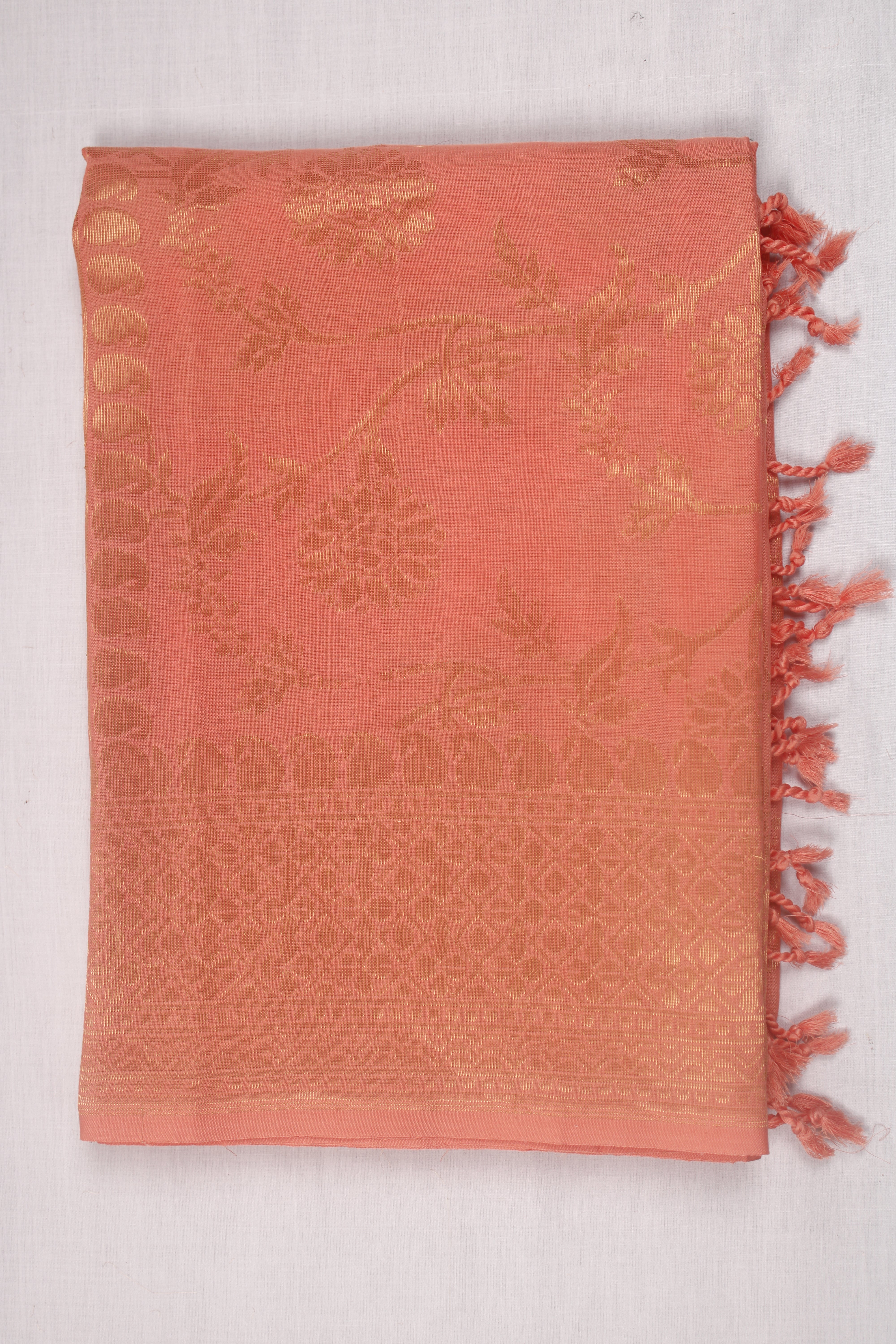 Peach and Golden Zari Jacquard Dhoti Dupatta