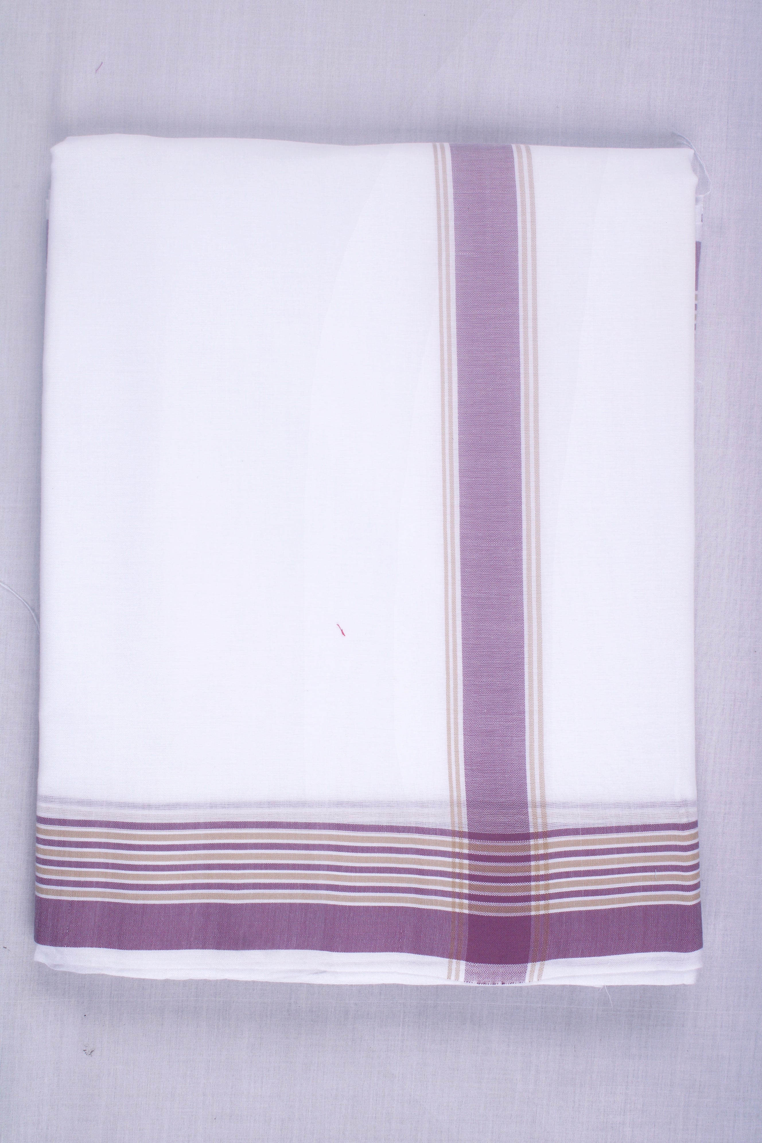 White Dhoti Dupatta with Beige and Purple Border