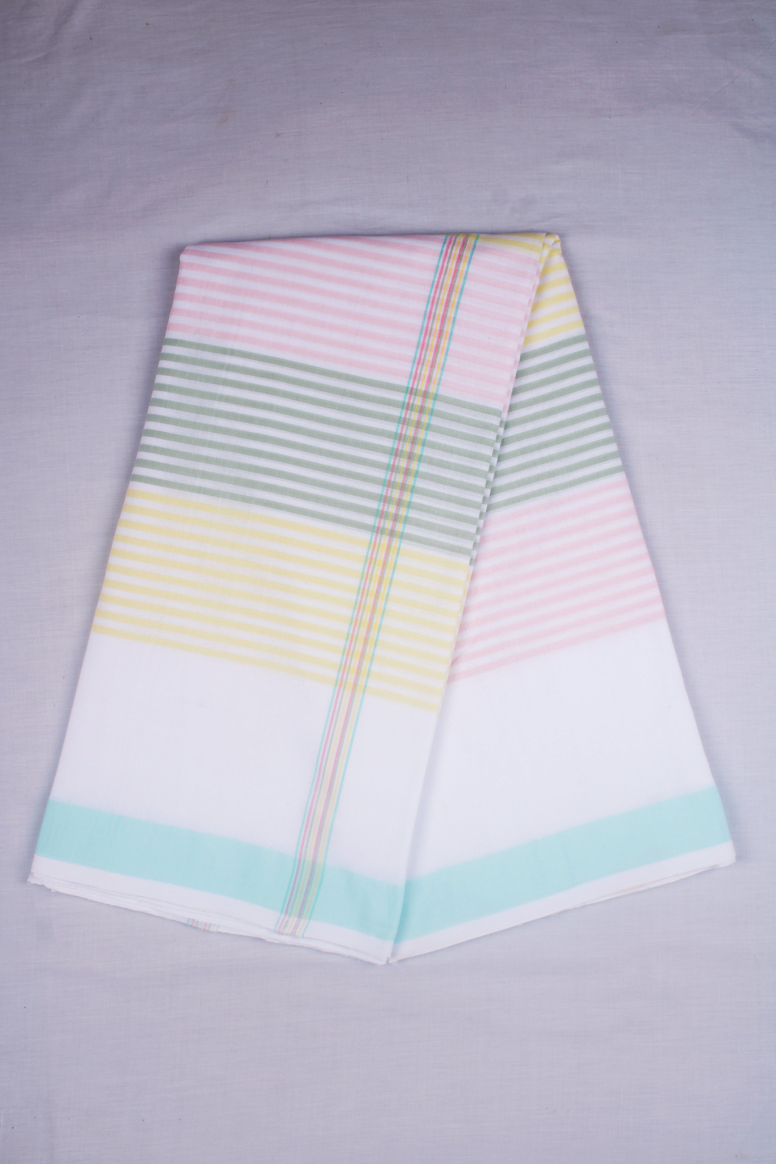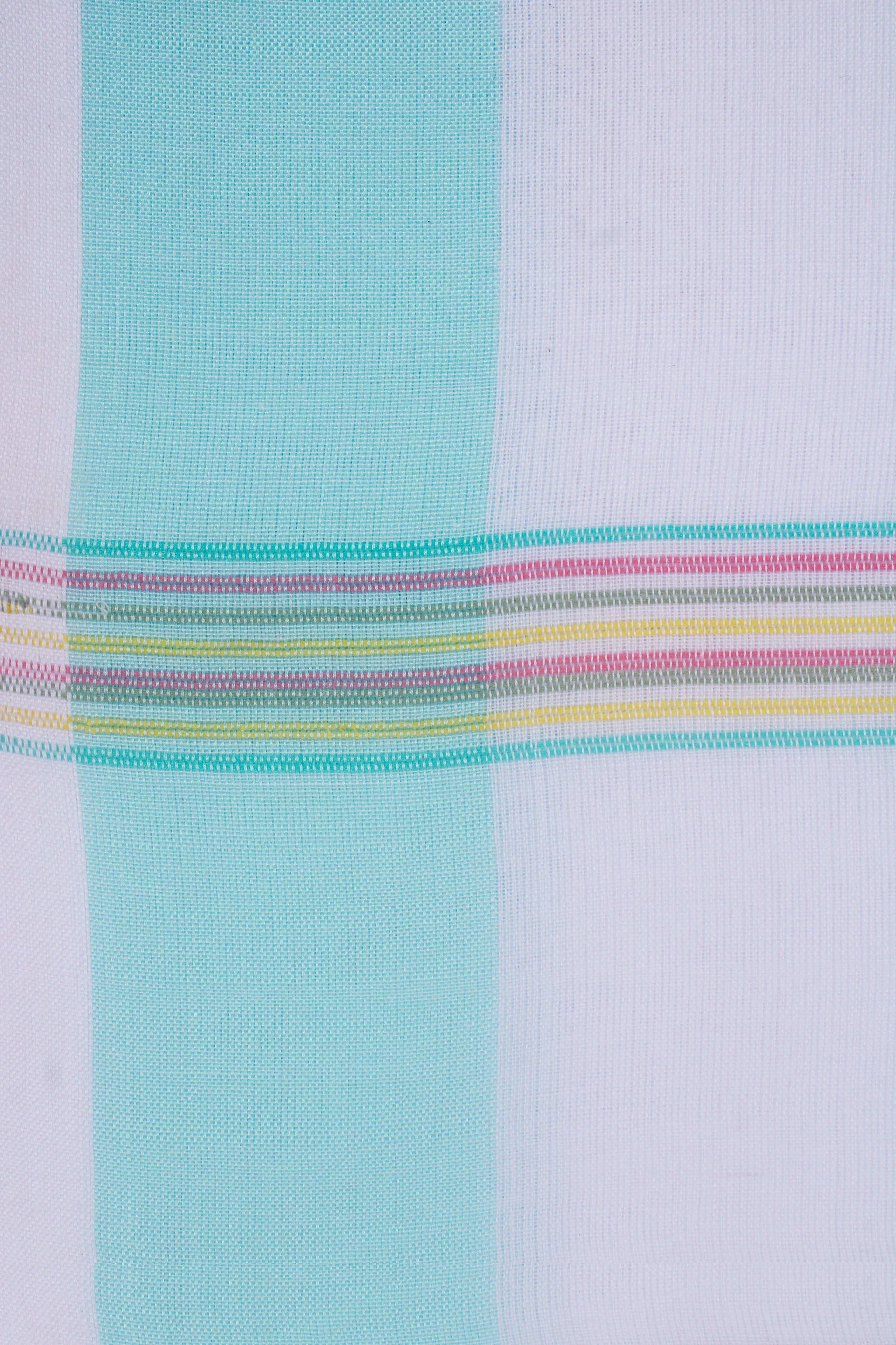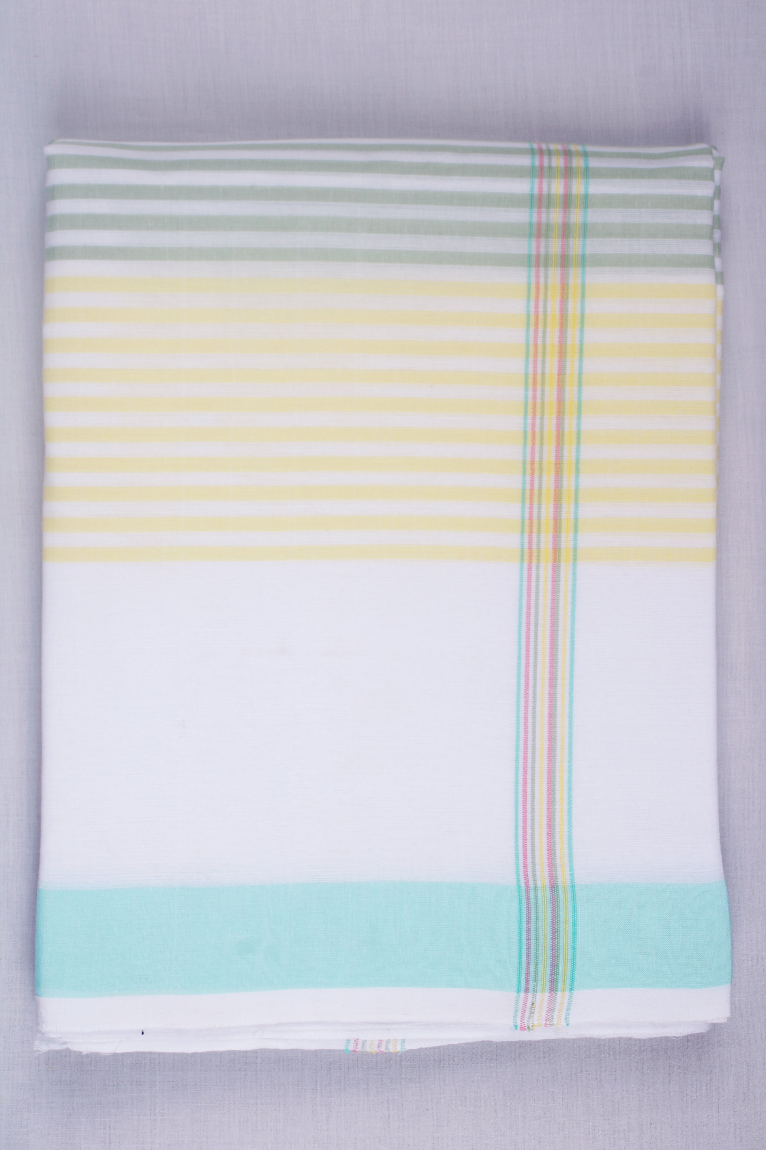 White Dhoti Dupatta with Cyan Border and Multi Colour Stripes