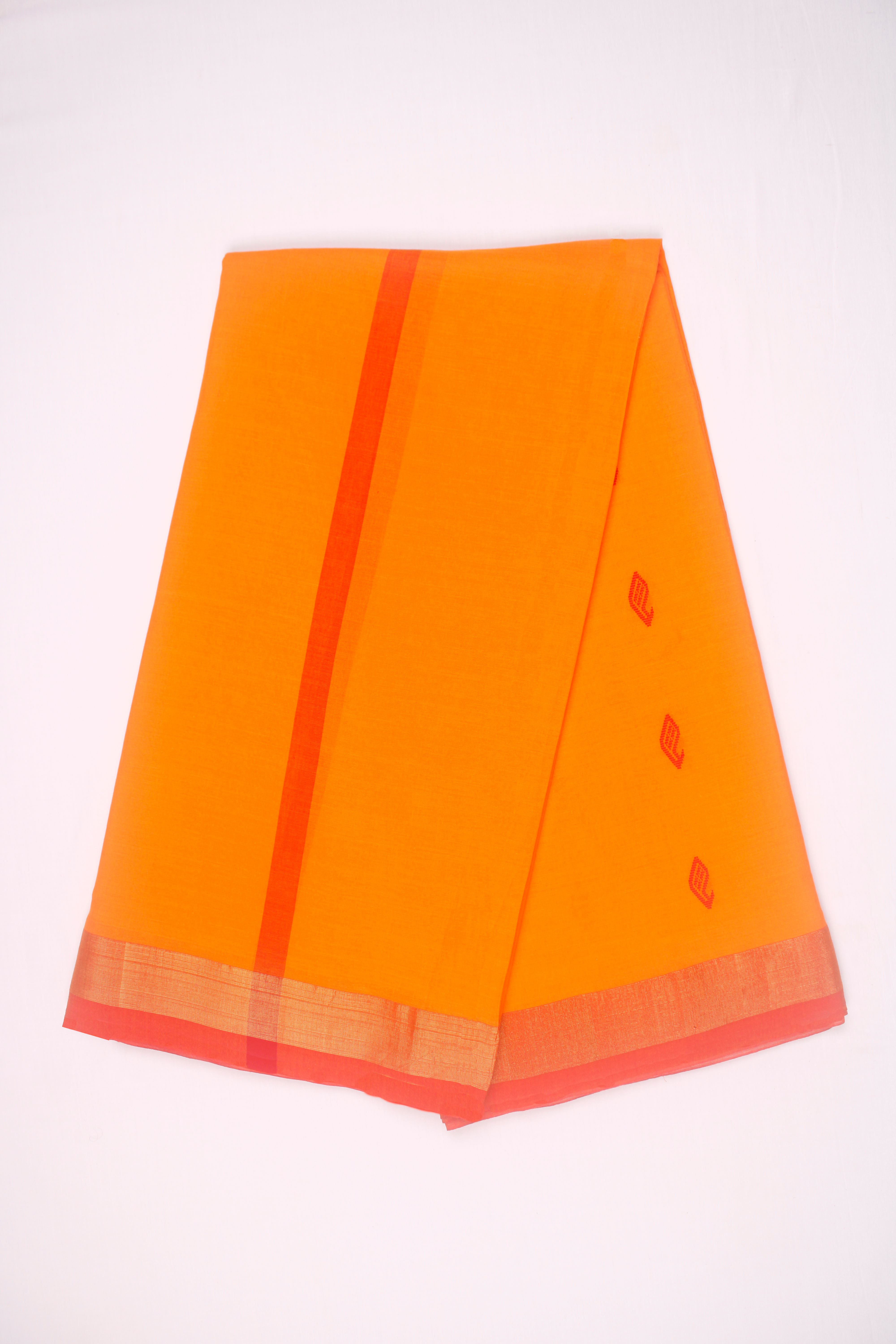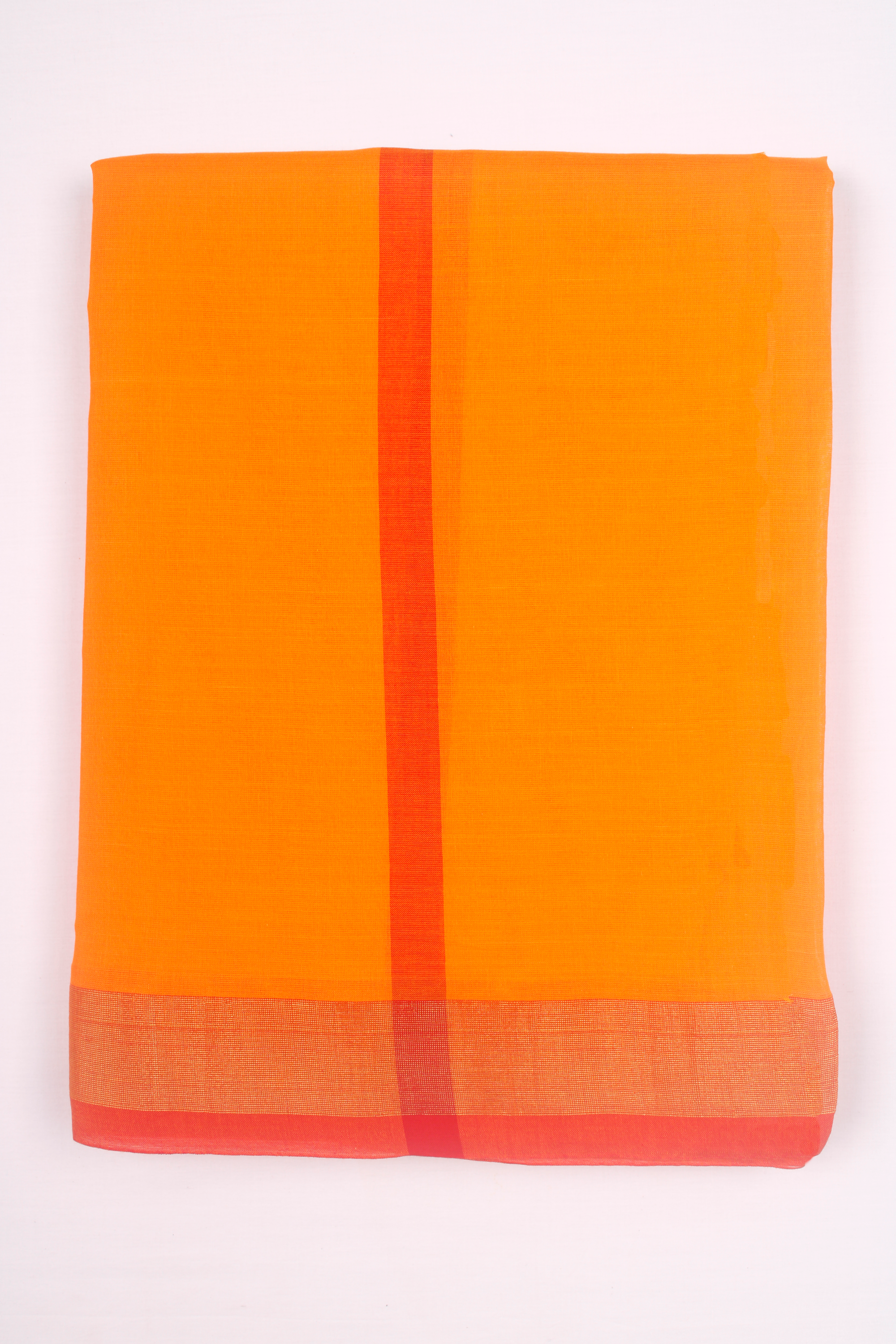 Orange Dhoti Dupatta with Golden Zari and Red Border and Butis