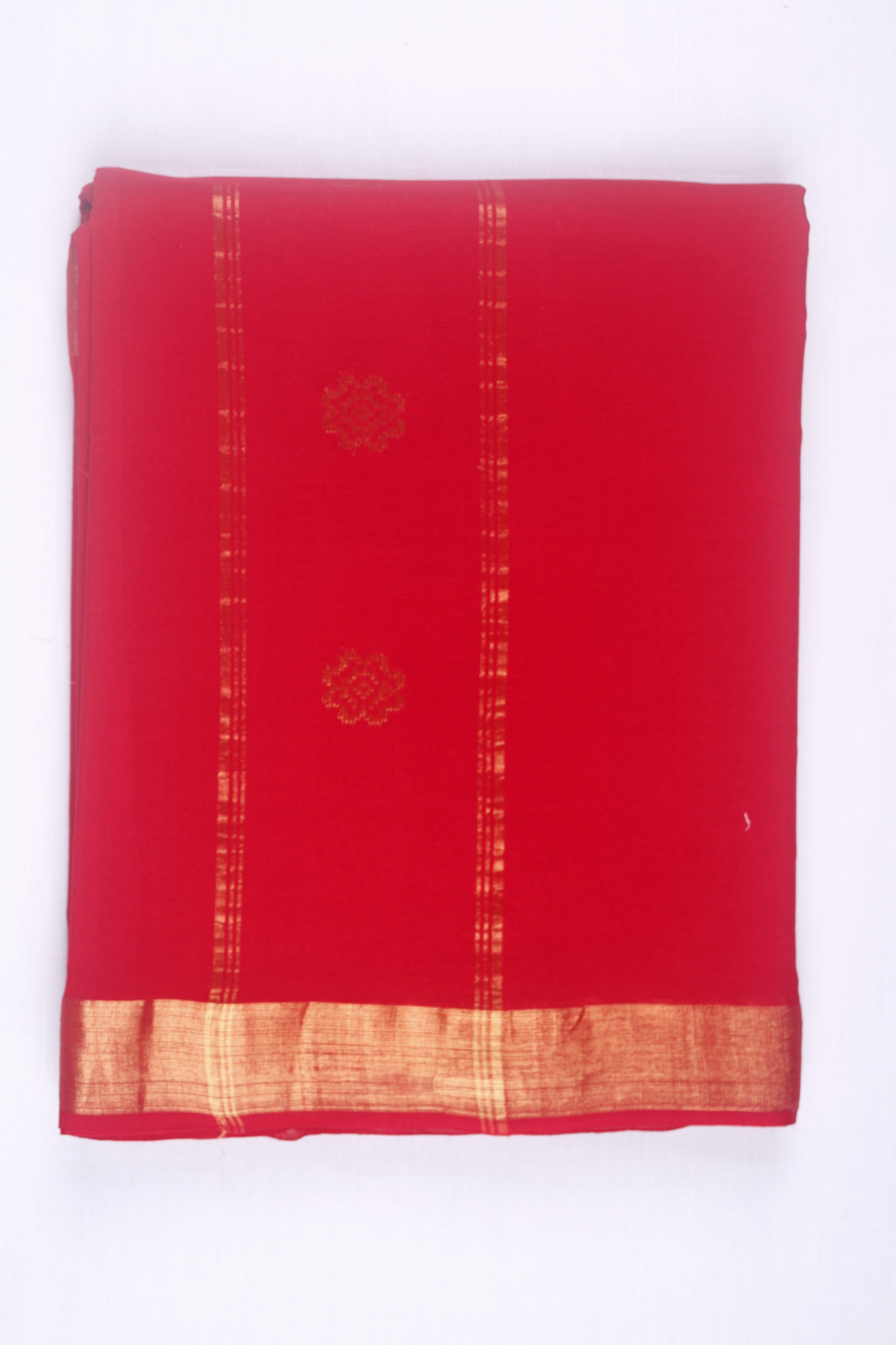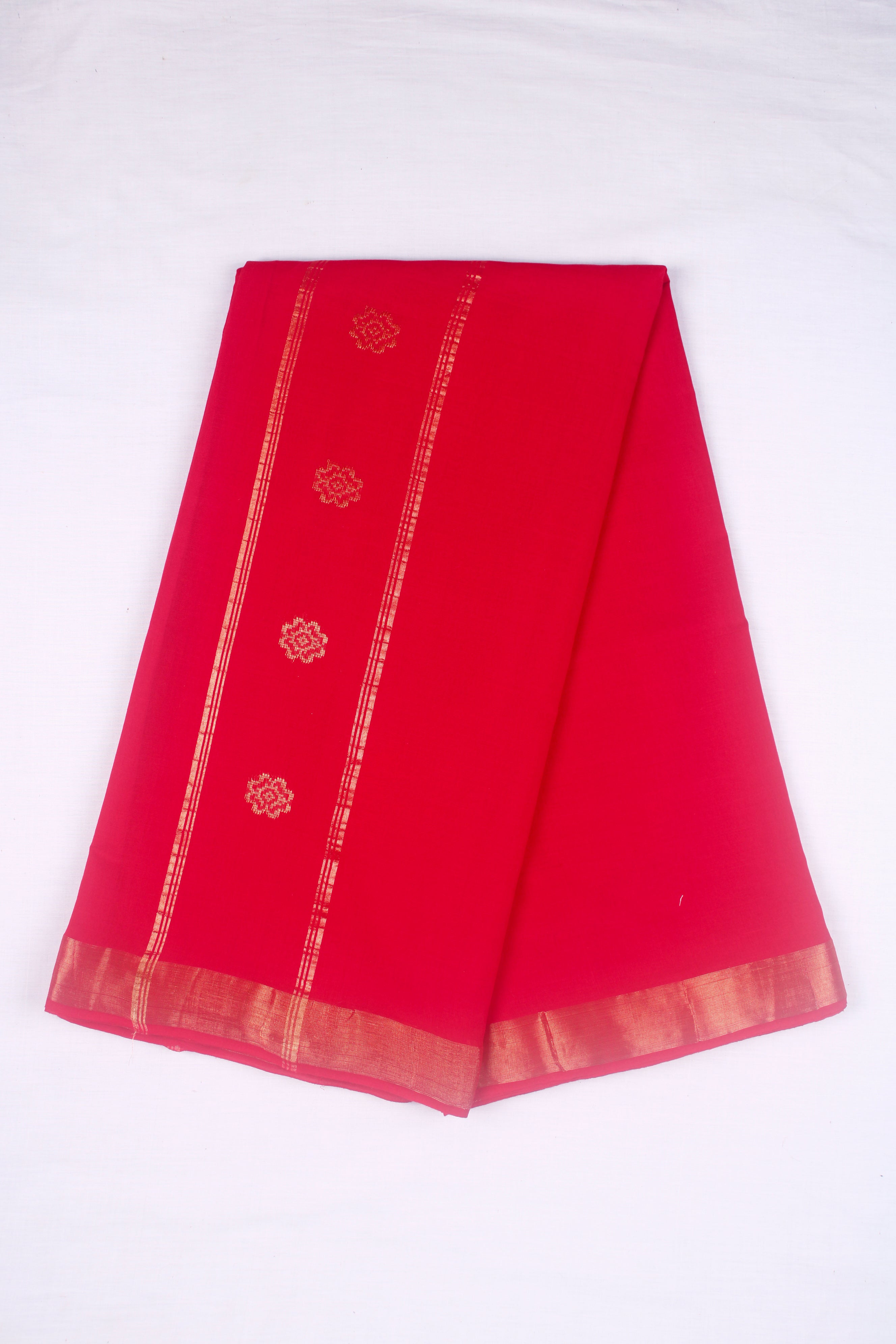 Red Dhoti Dupatta with Golden Zari Border and Butis